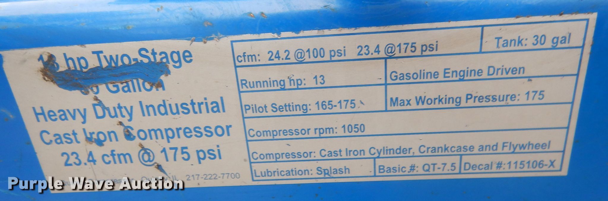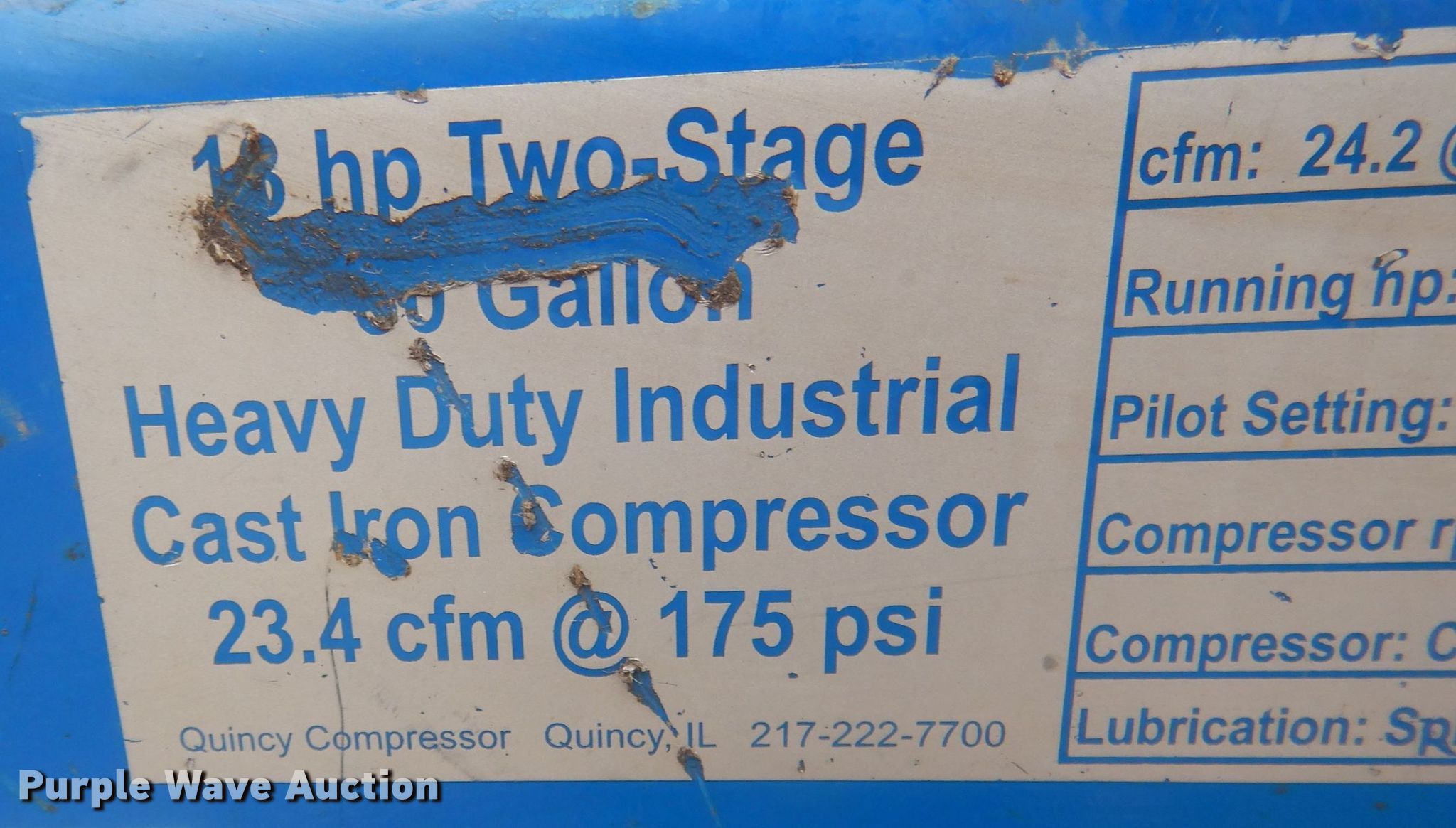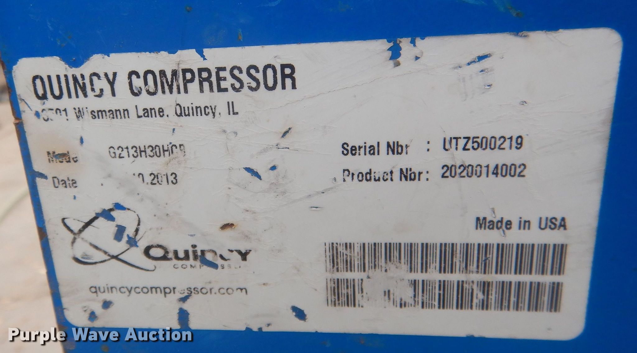 Purple Wave is selling a used Air Compressor in Nebraska. This item is a Quincy air compressor with the following: Serial: UTZ500219
