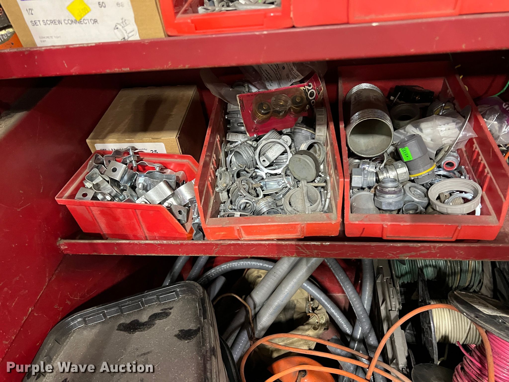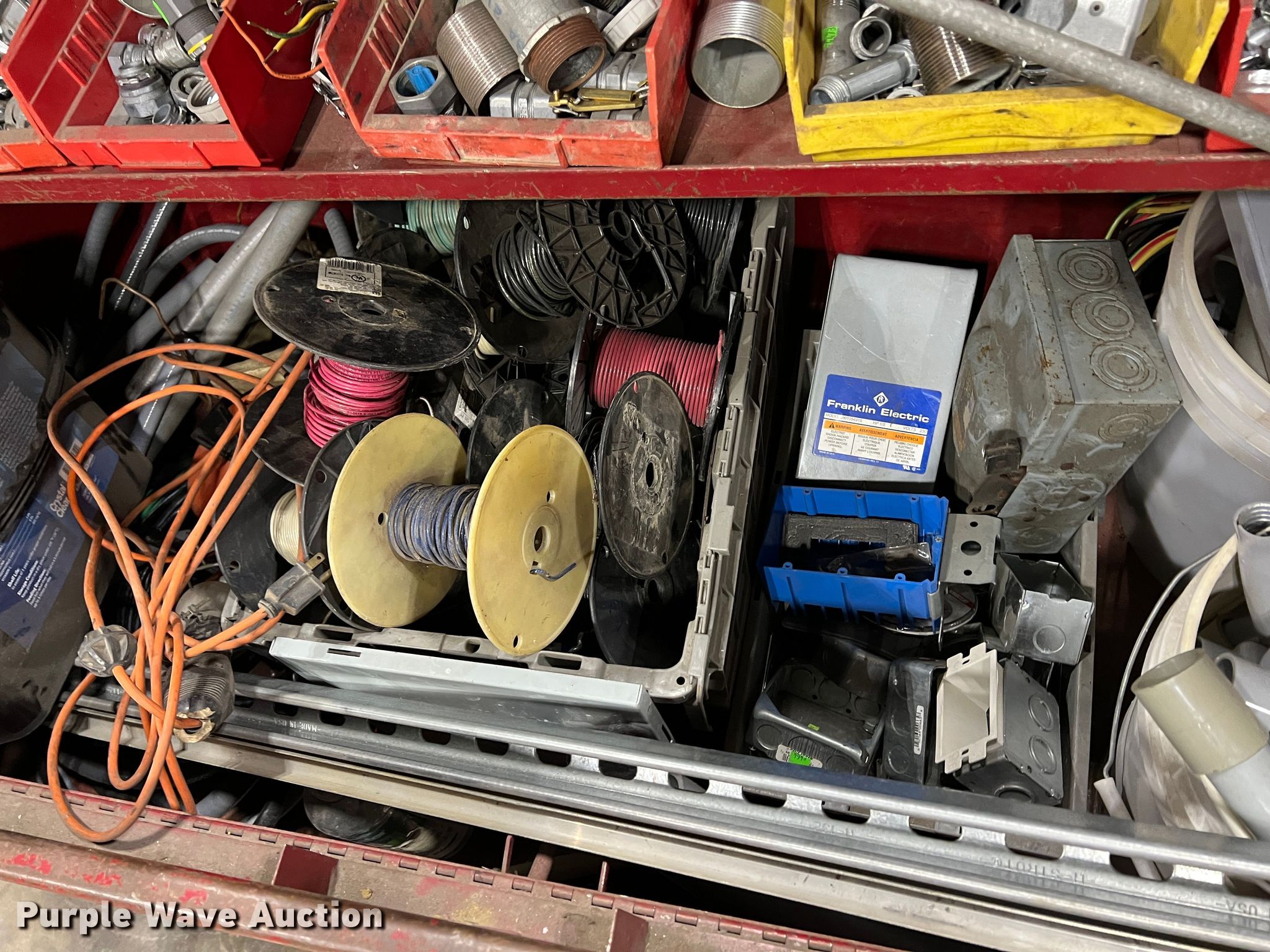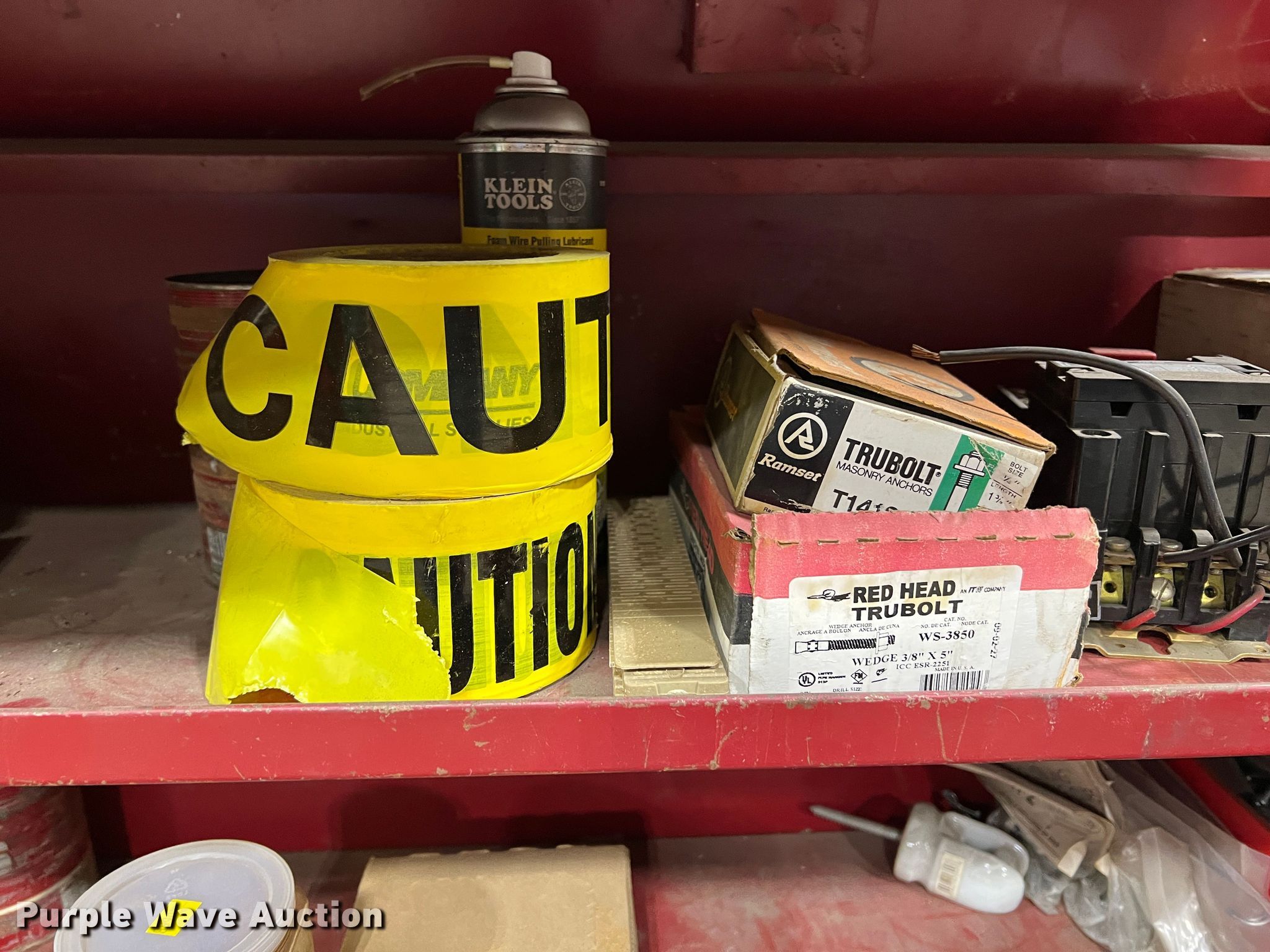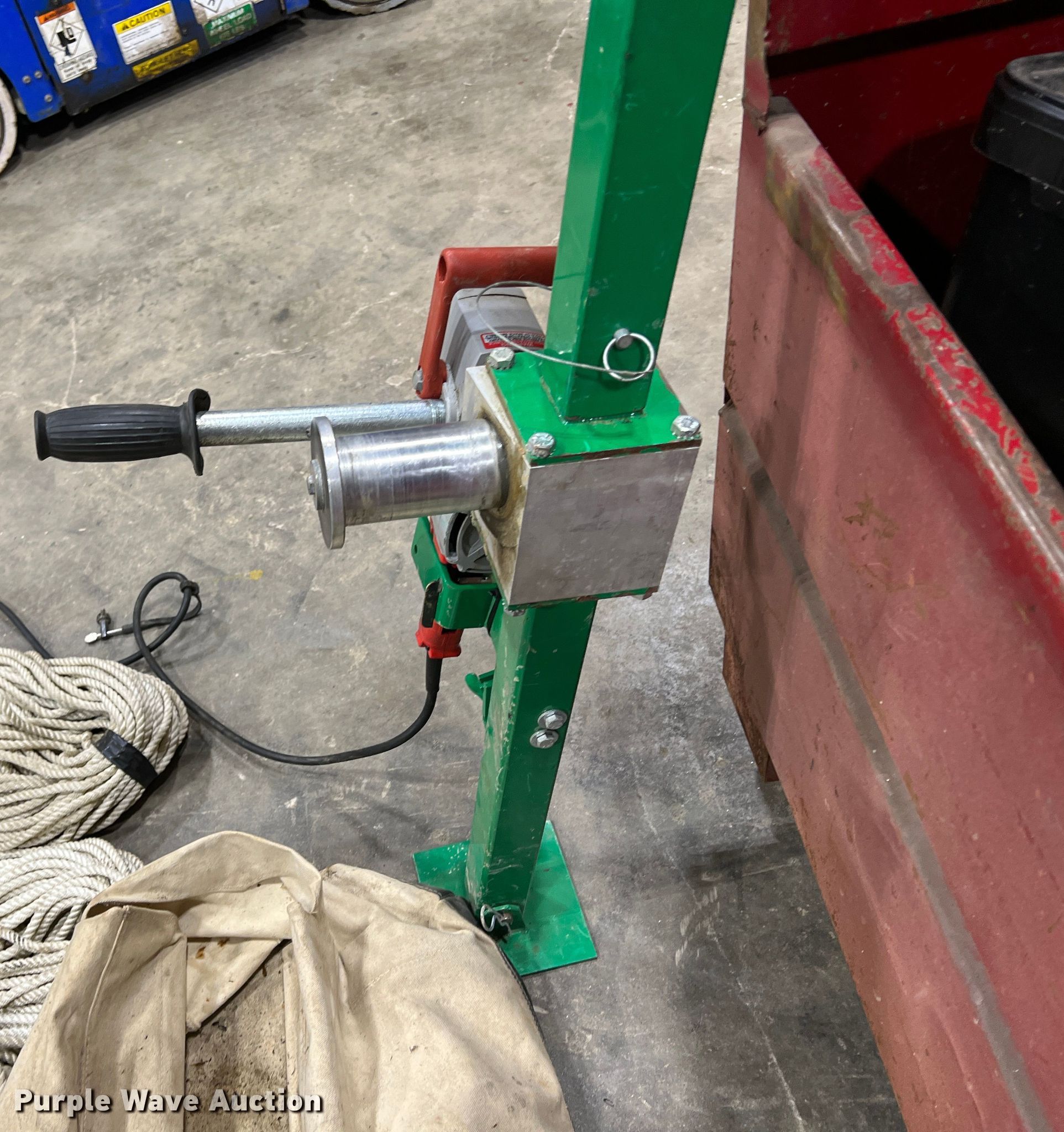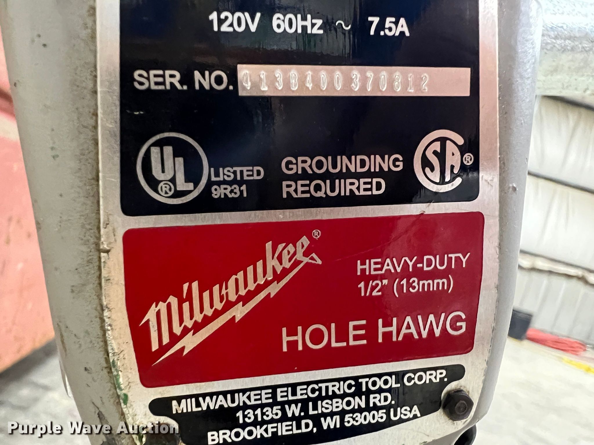 Purple Wave is selling a used Tools in Oklahoma. This item is a Dayton Tradesman toolbox with the following: Milwaukee Hole Hawg drill, 1/2", 120V, Electrical supplies, Rope tug with rope, Contents included