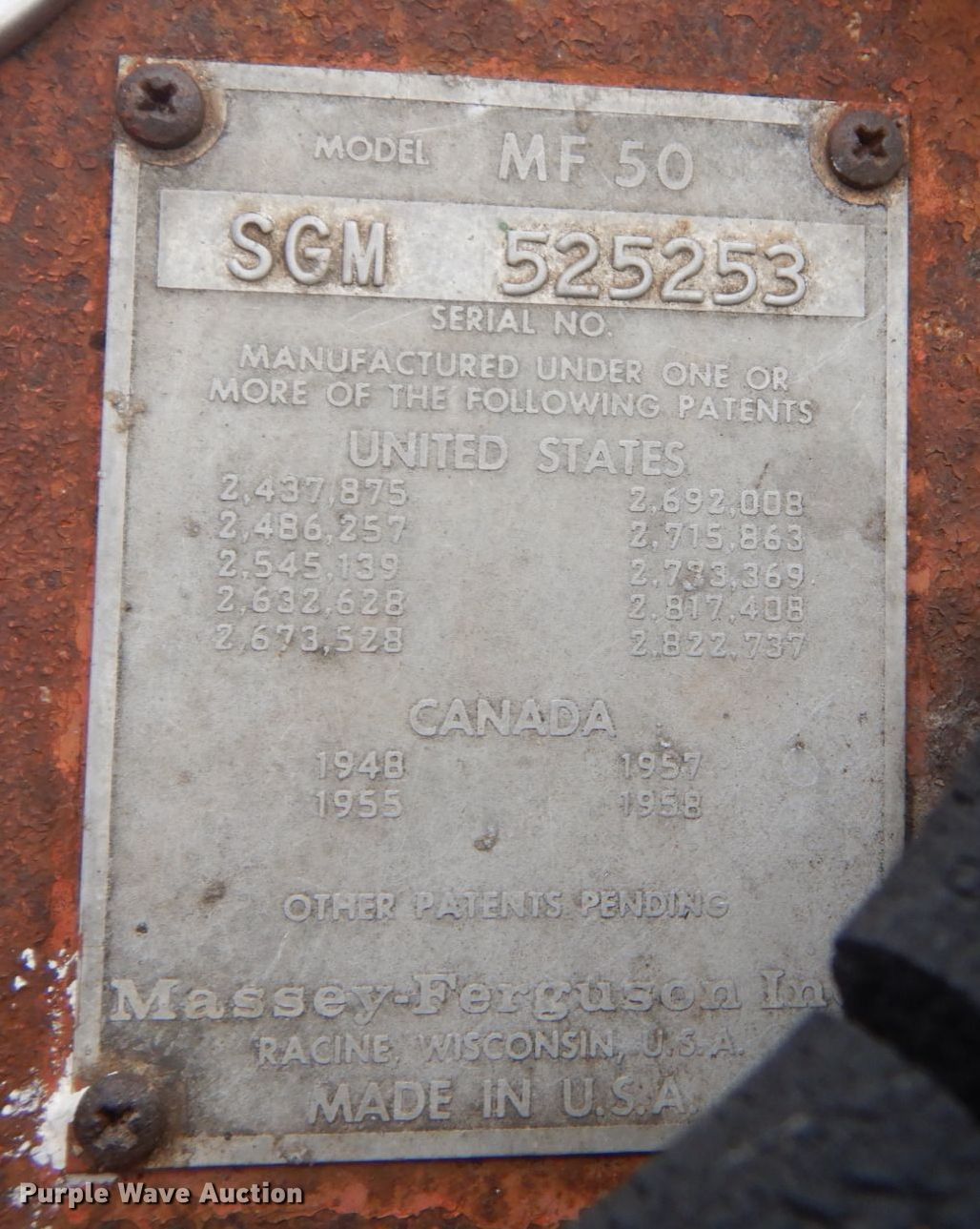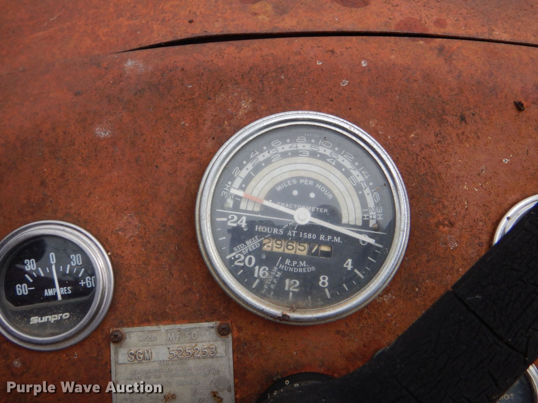 Purple Wave is selling a used Tractor in Texas. This item is a 1959 Massey Ferguson 50 tractor with the following: Hours: 2,966 on meter, Serial: SGM 525253