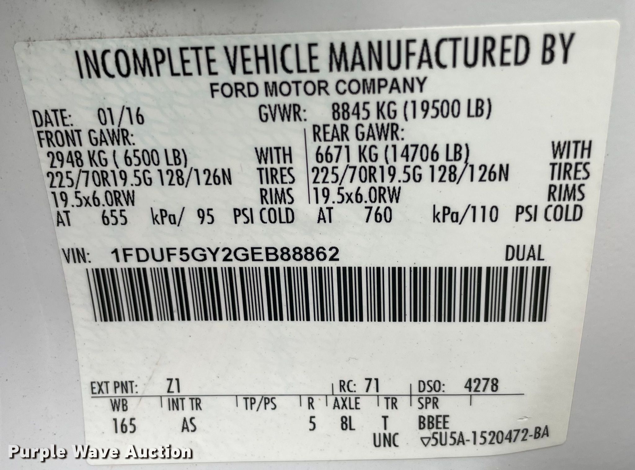 - VIN: 1FDUF5GY2GEB88862
