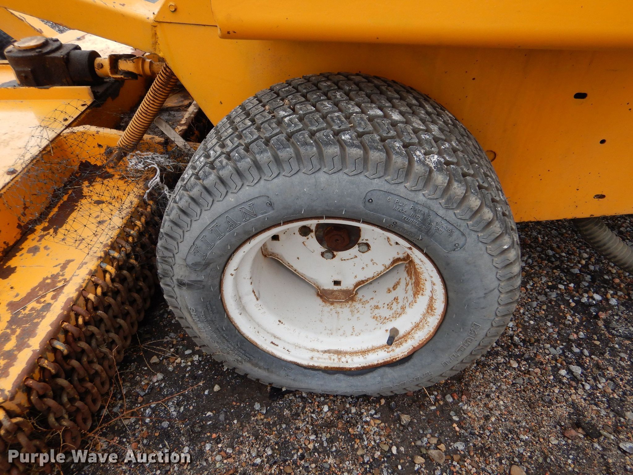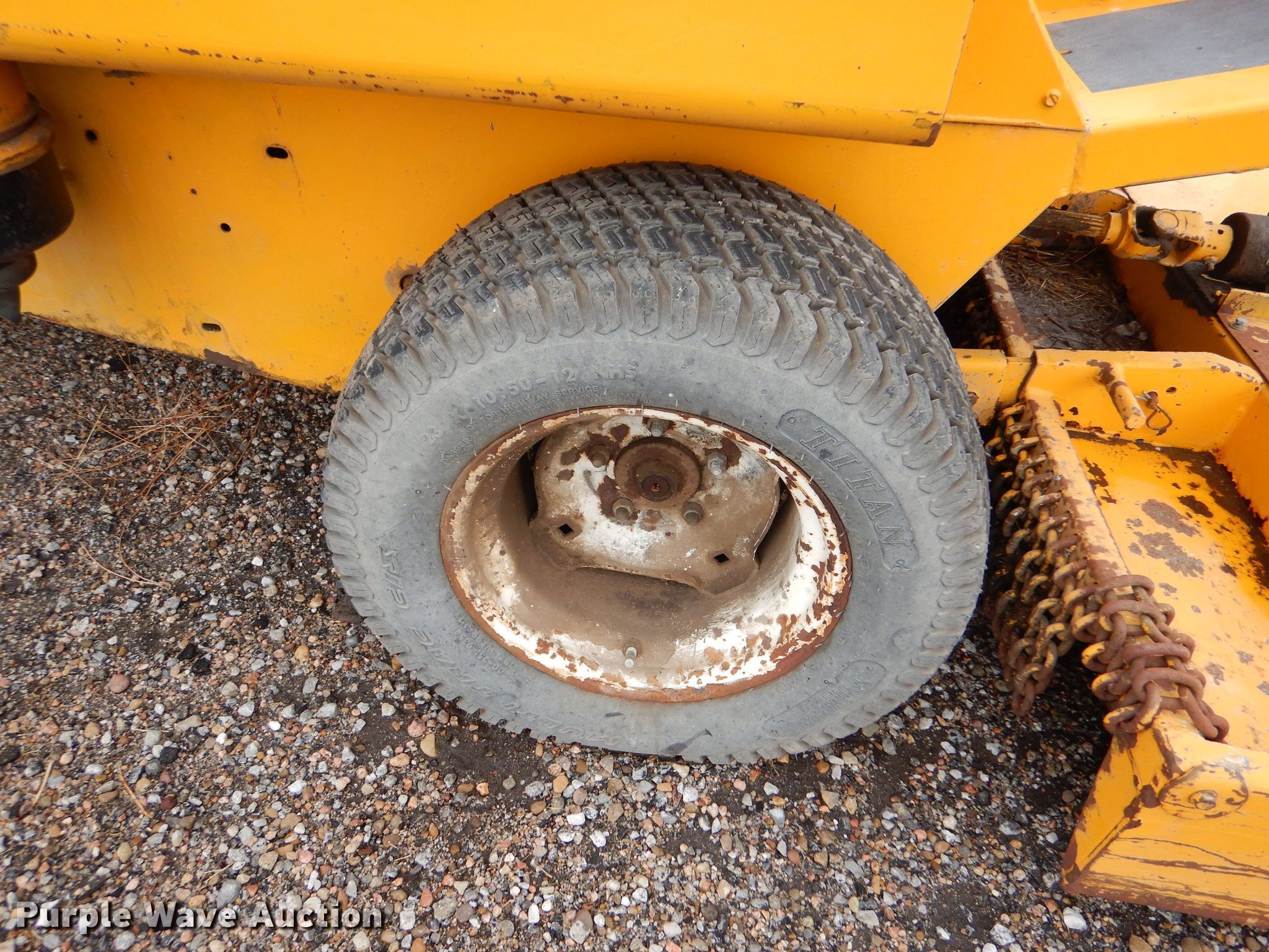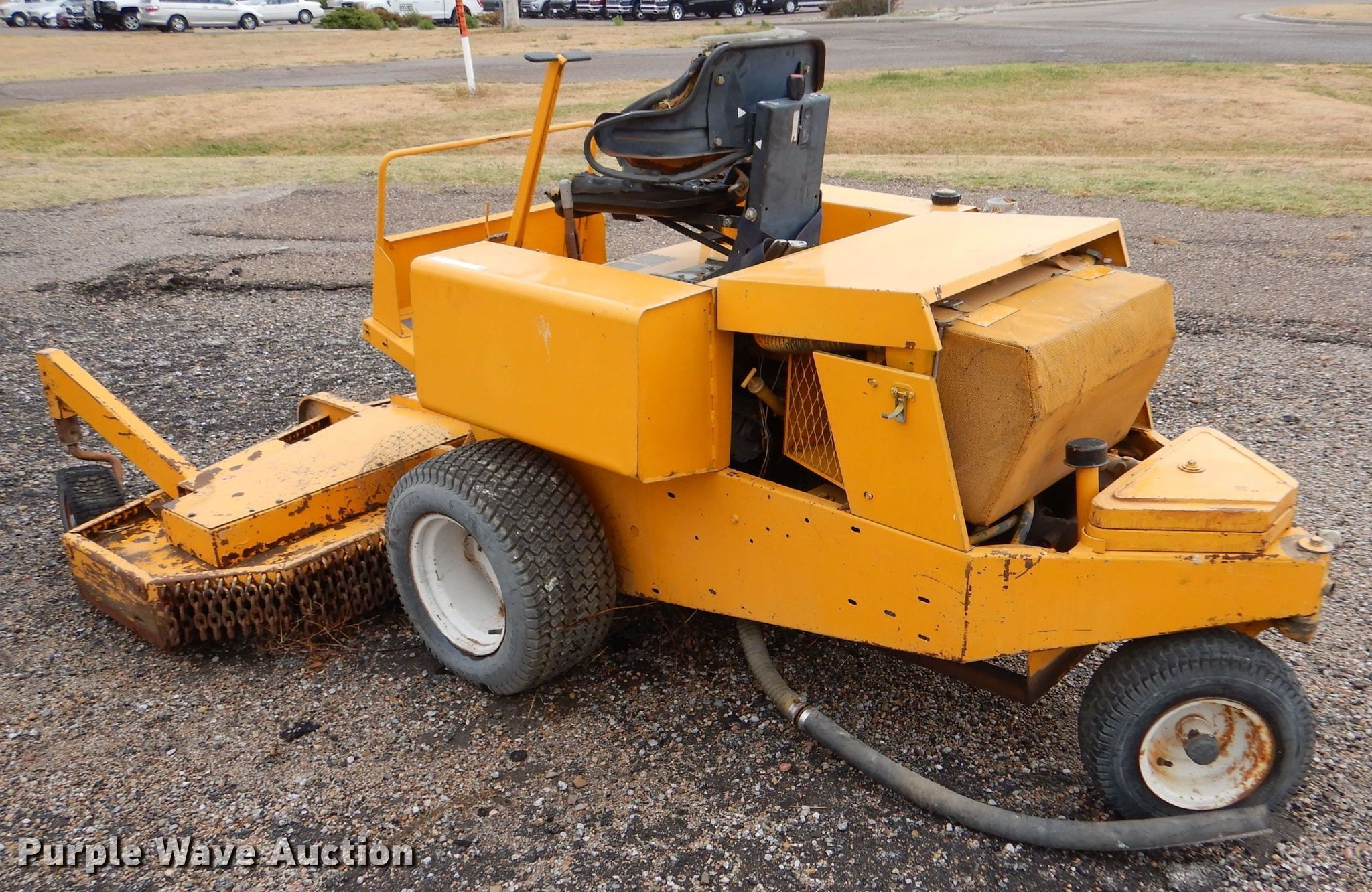 Hustler ZTR lawn mower. Hours: 1,078 on meter, Cutting width: 72". Engine Cylinders: 2, Fuel type: Gas. Transmission Hydrostatic. Features Counter weights. Tires Front: 23x10.50-12, Rear: 16x6.50-8. Notes Battery missing, Non-operational unit. Crotts Aircraft Service. 102 Airport Road. Dodge City, KS 67801