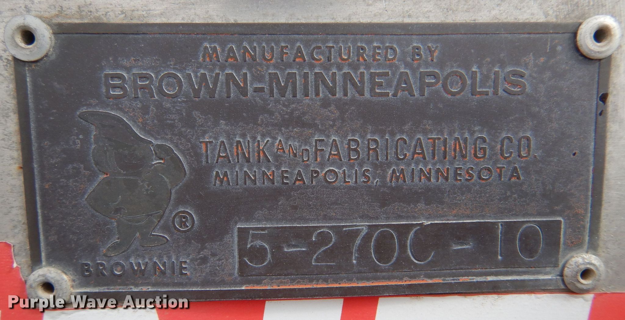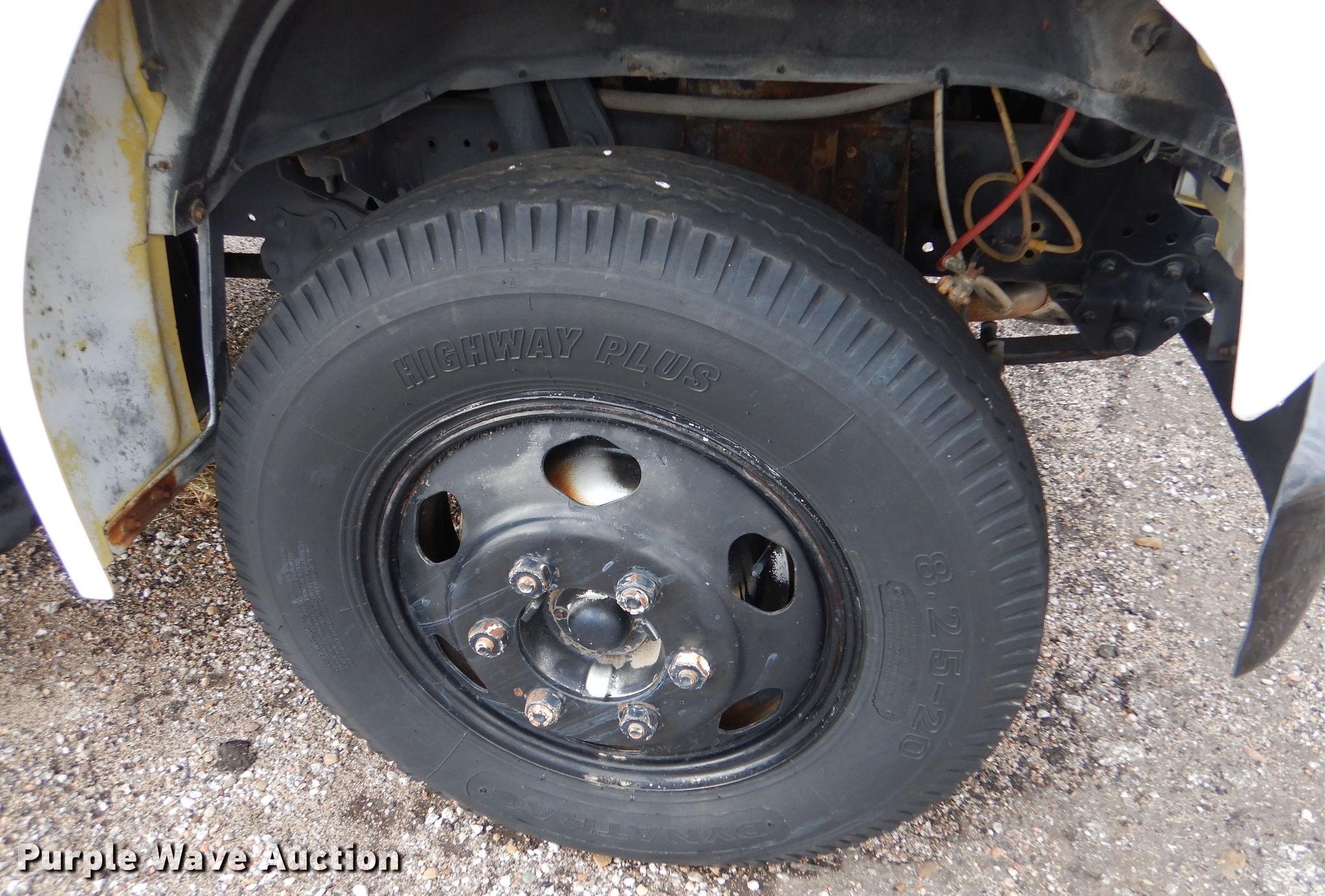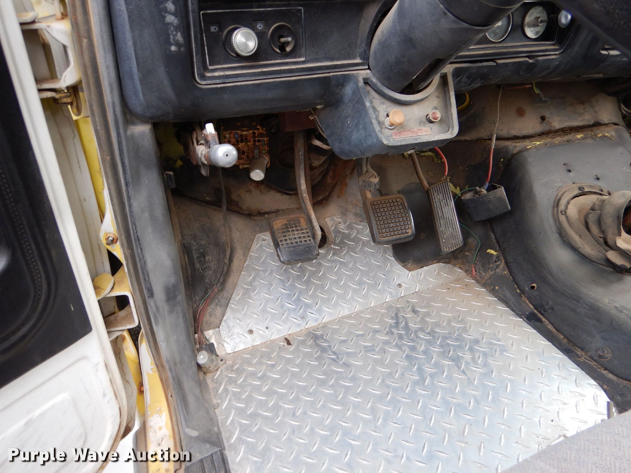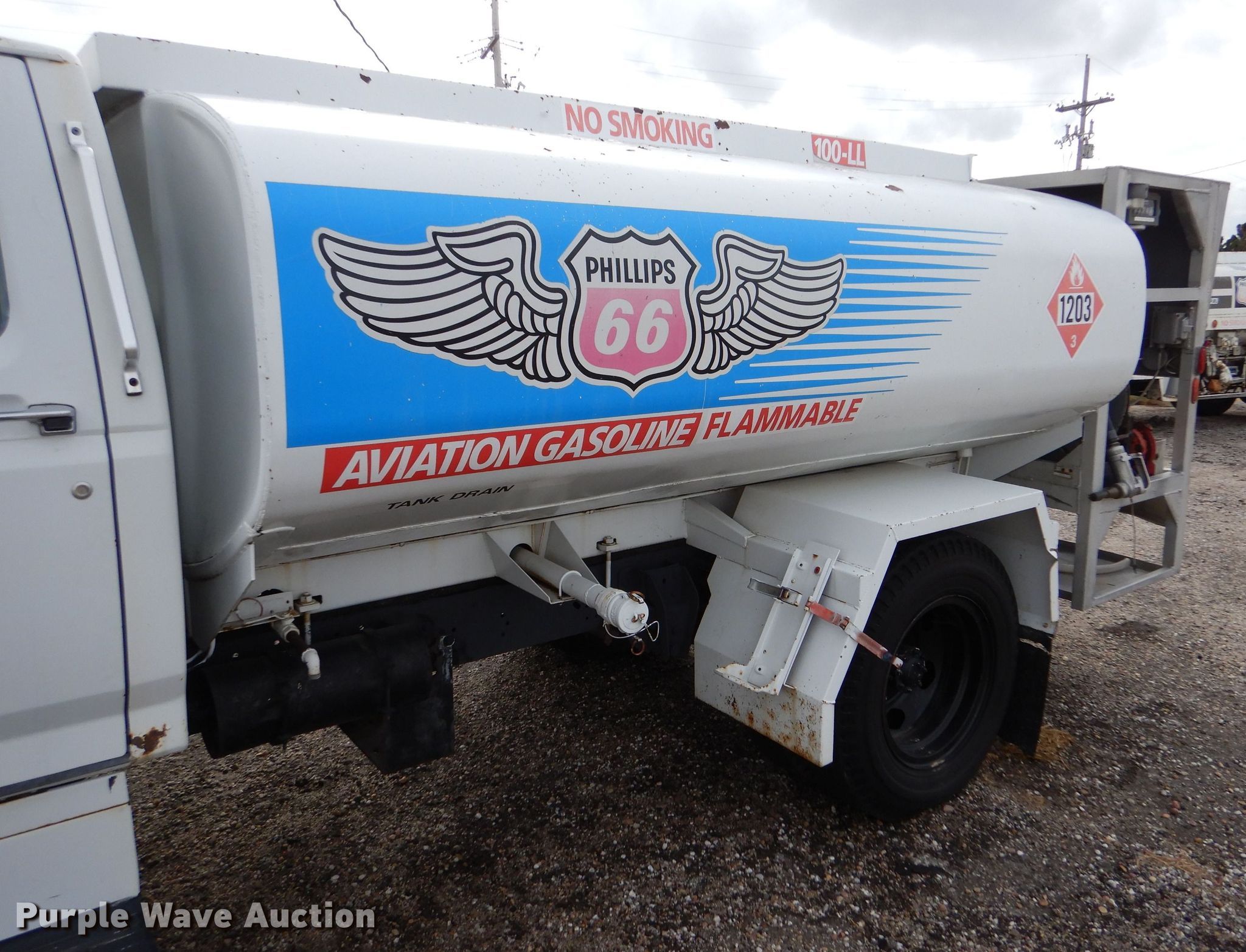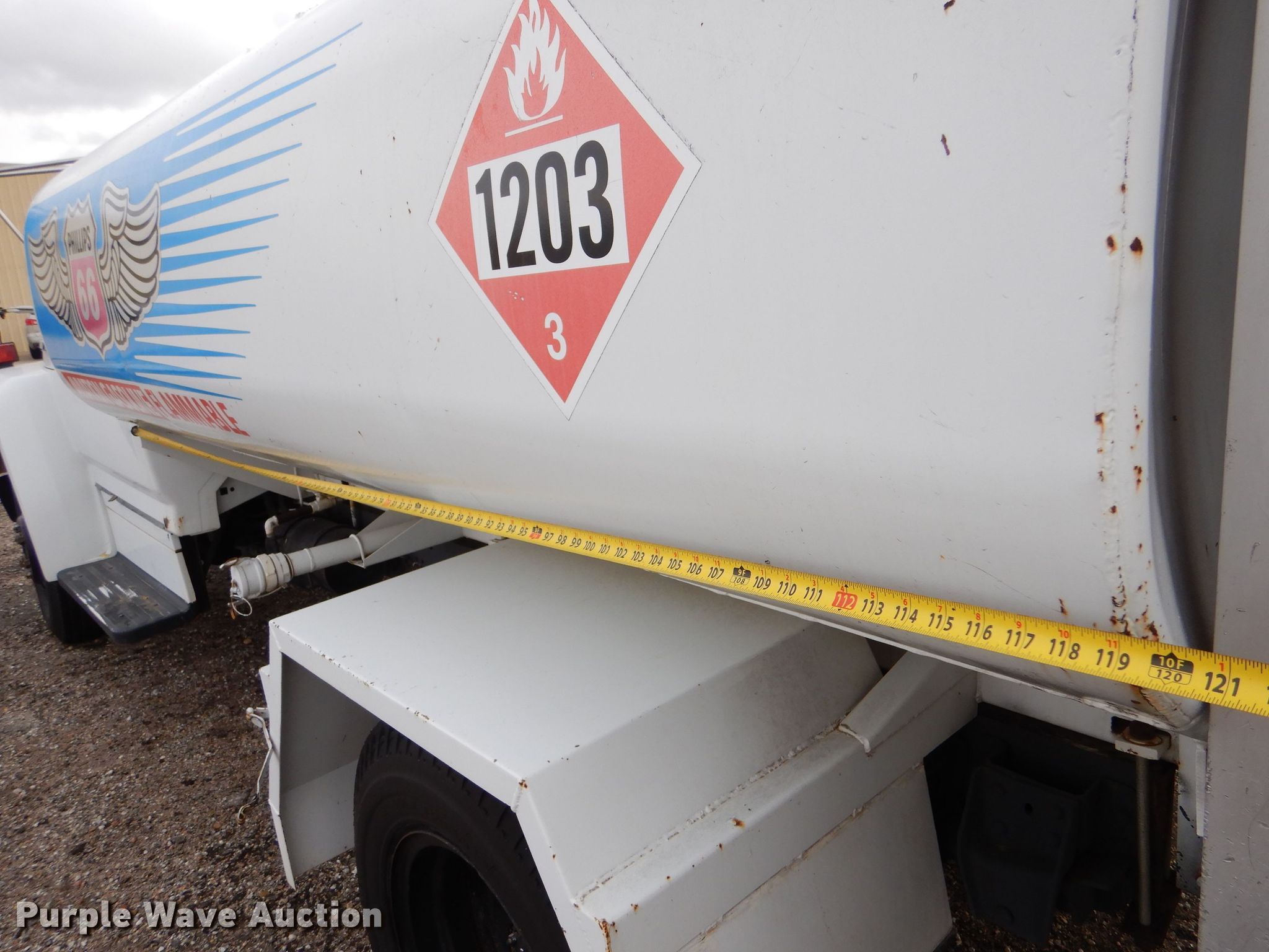 1983 Ford F600 fuel truck. Miles: 111,305 on odometer, VIN: 1FDMF60H7DVA21697. Engine Displacement: 6.1L, Cylinders: 8, Fuel type: Gas. Transmission Manual, Speed: 4. Chassis Axles: Single, Suspension: Spring, Brakes: Hydraulic, PTO, GVWR: 16,500 lbs, Wheelbase: 183". Interior Heat. Features Bed / tank Brown-Minneapolis 5?2700?10, 9' 10" L x 88" W, Fuel Compartments: 1, Hose reels: 1, Nozzles, Metered pumps: 1 Make: Liquid Controls.. Tires Size: 8.25-20. Notes Engine issues, Non-operational unit. Kansas non highway title. Crotts Aircraft Service. 102 Airport Road. Dodge City, KS 67801