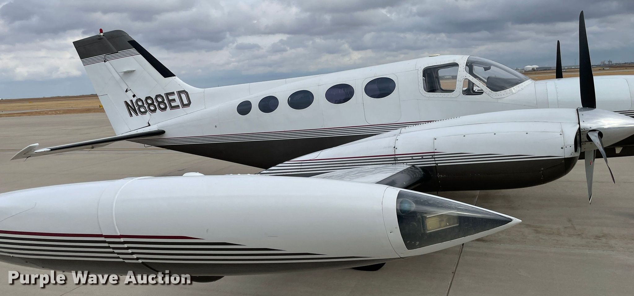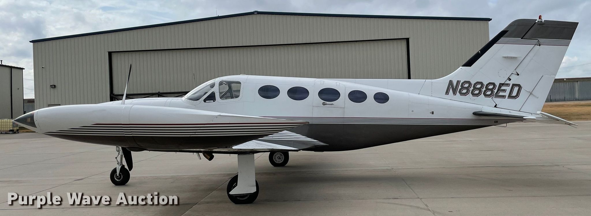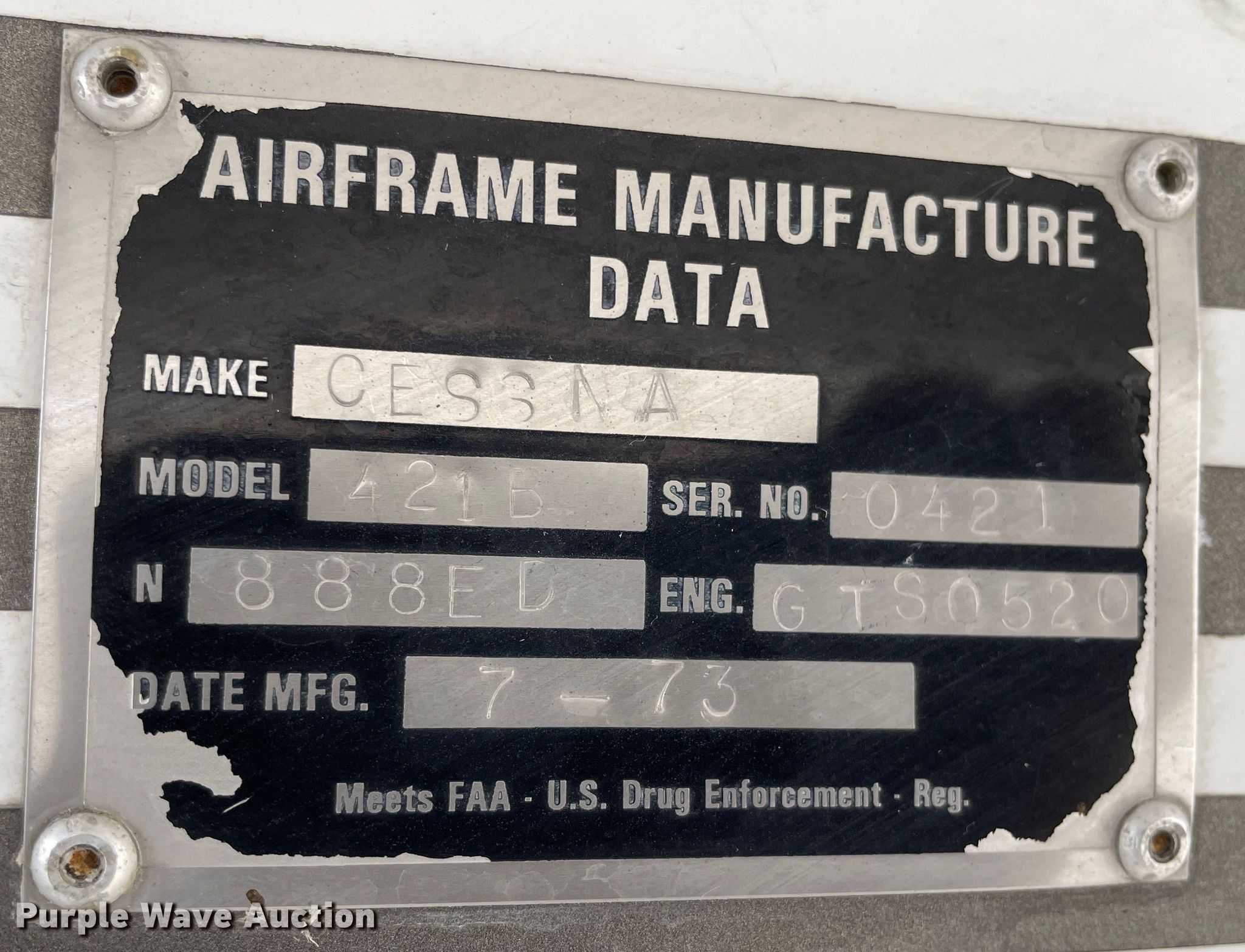 Purple Wave is selling a used Aircraft in Kansas. This item is a 1973 Cessna 421B airplane with the following: Total air frame hours: 5,834 hours, Hours: 3,735 on meter, Serial: 421B0421, Registration number: N888ED