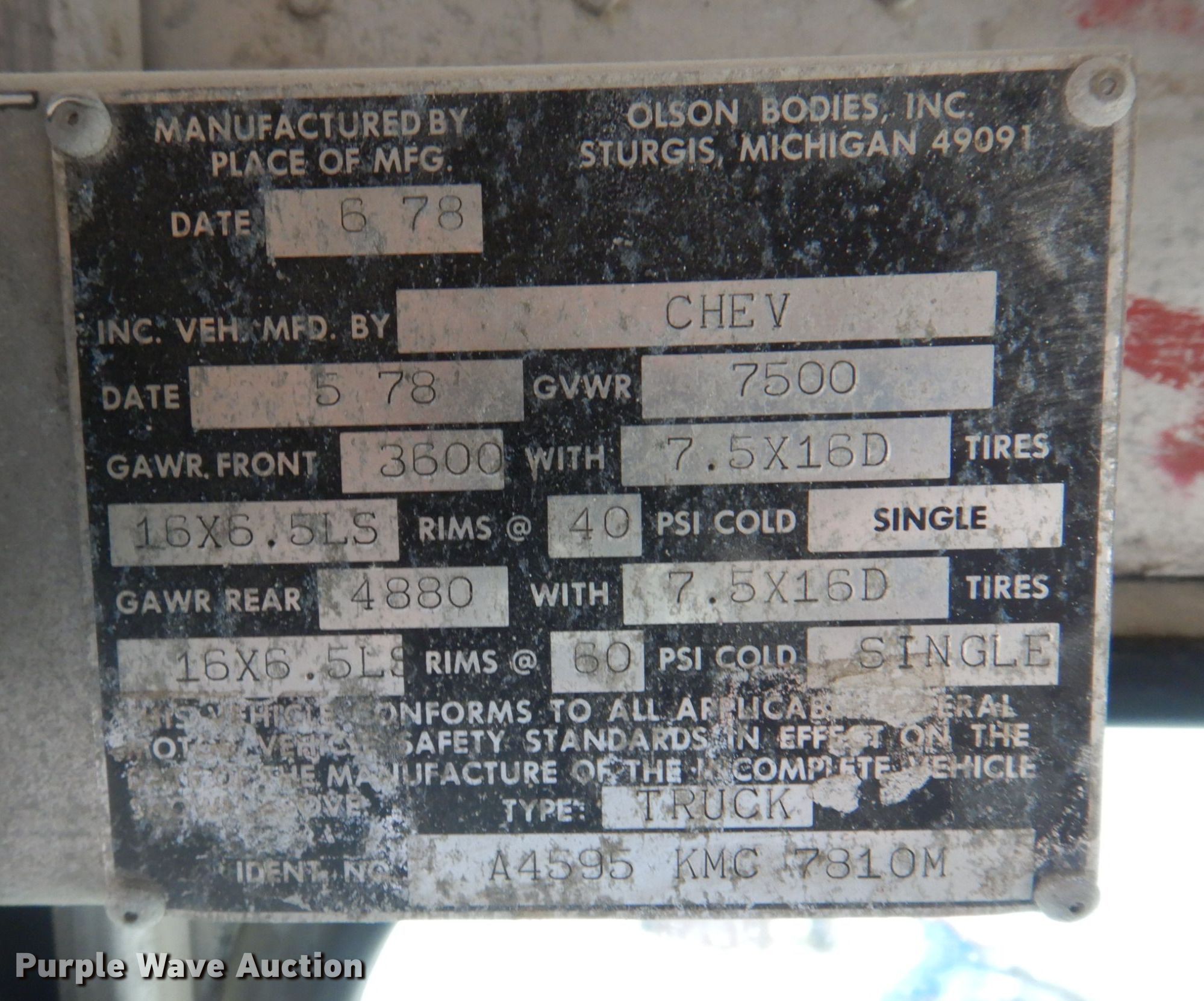 Purple Wave is selling a used Delivery Truck or Van in Missouri. This item is a 1978 Chevrolet delivery truck with the following: Miles: 20,569 on odometer, Actual miles unknown, VIN: CPL2283319337