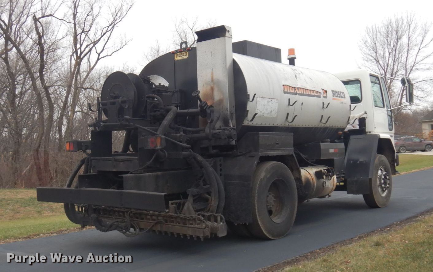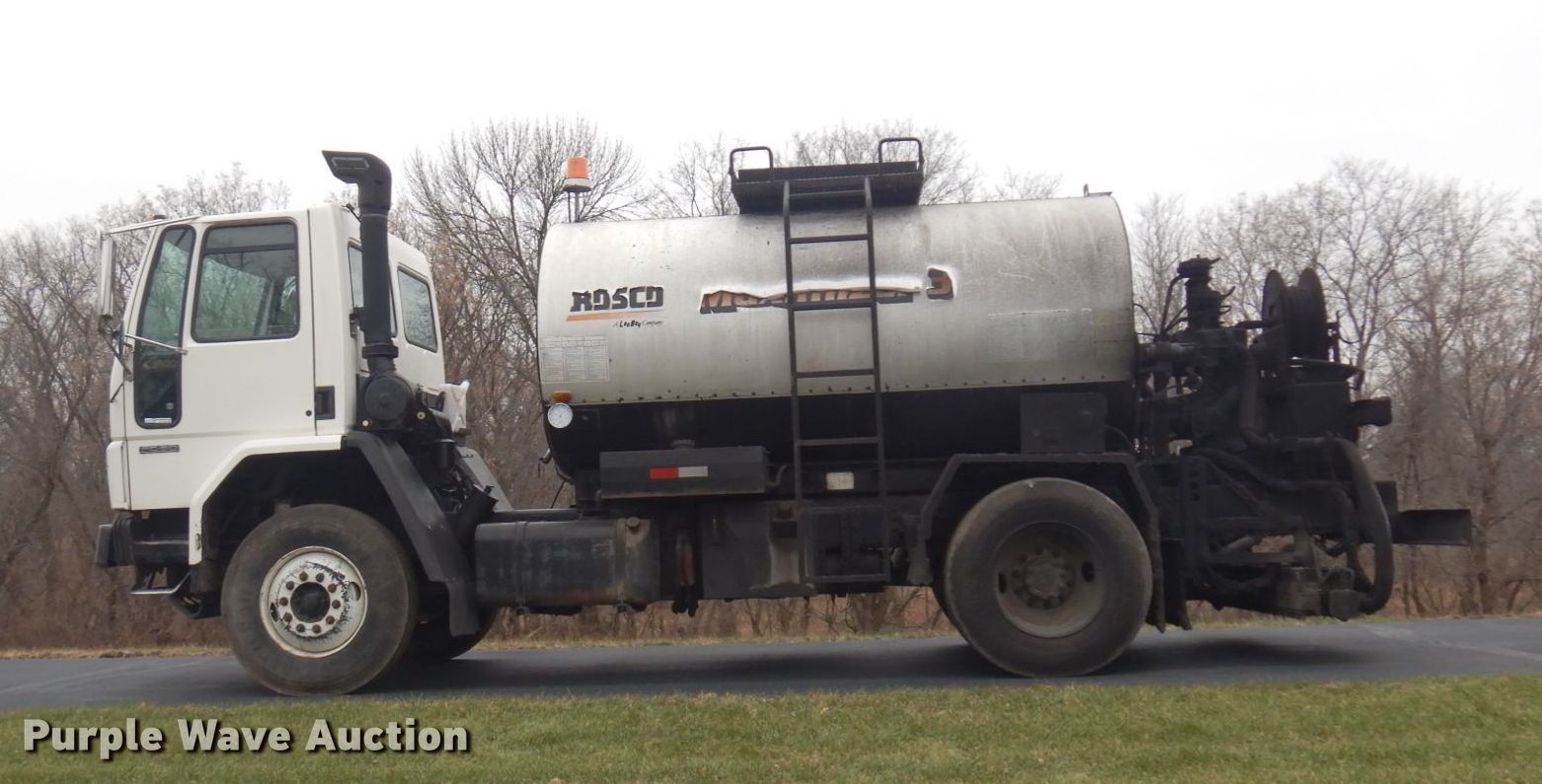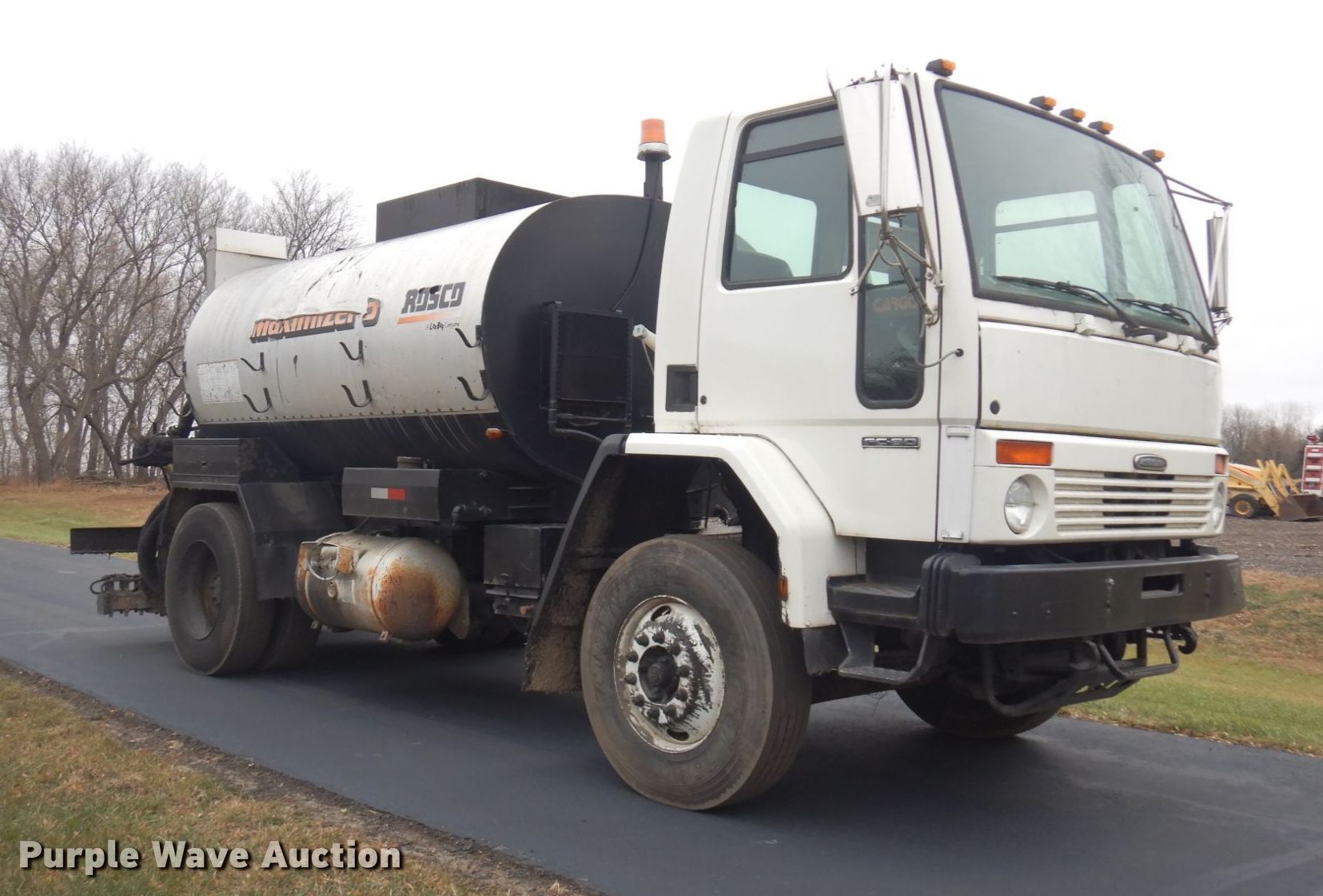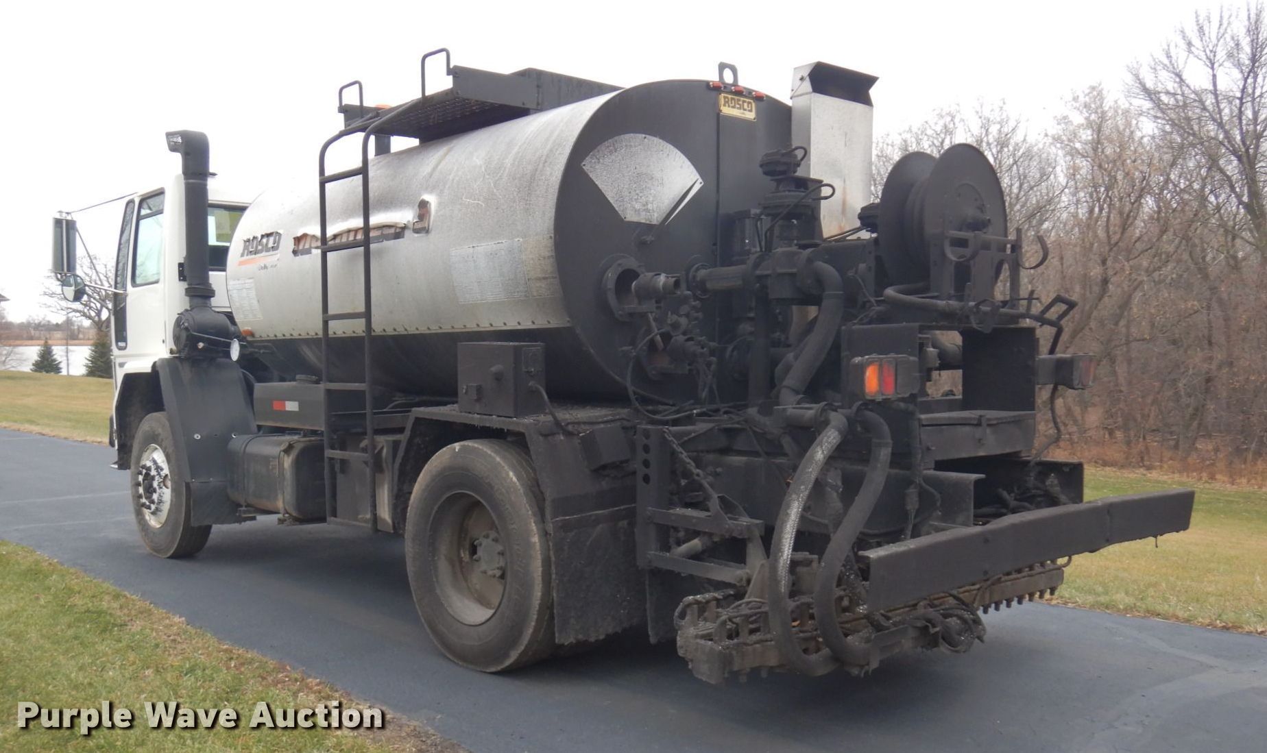 2005 Freightliner FC80 oil distributor truck. Miles: 92,734 on odometer, VIN: 1FVAB6BV85DU90573. Engine Cummins, Displacement: 5.9L, Cylinders: 6, Fuel type: Diesel. Transmission Automatic. Chassis Axles: Single, Suspension: Spring, Brakes: Air, PTO, GVWR: 33,000 lbs. Interior AC, Heat, Heated mirrors, Cruise control. Features Bed / tank Rosco Maximizer, Capacity: 1,750 gallons, 14' 8" L x 8' W, Water tank Spray bar: Rear, Hose reel, Top fill, Rear drain: 4", Rear outlet: 4", Oil distributor Burner: LPG, In-cab controls, Spray wand, Spray boom Width: 8', Nozzles: 48.. Tires Size: 11R22.5. Notes Dash warning indicator: ABS, Unknown operating condition of bed. Minnesota title. Title distribution may be delayed up to 14 days from verification of funds. Hutchinson, MN 55350