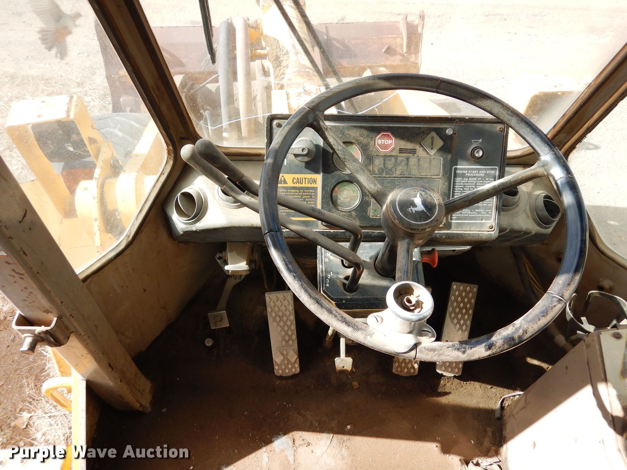 1989 John Deere 644E wheel loader. Hours: 25,729 on meter, Serial: DW644EB523407. Engine John Deere, Cylinders: 6, Fuel type: Diesel. Transmission Powershift, 4F - 4R. Operators station Enclosed cab, Heat, Bucket controls: Joystick. Features Quick coupler: Manual, Bucket JRB, Width: 109", Cutting edge: Bolt-on. Tires Size: 23.5R25. Notes Glass cracked, Non-operational transmission, Non-operational unit. Trax Construction. 5575 East Bijou Street. Colorado Springs, CO 80916