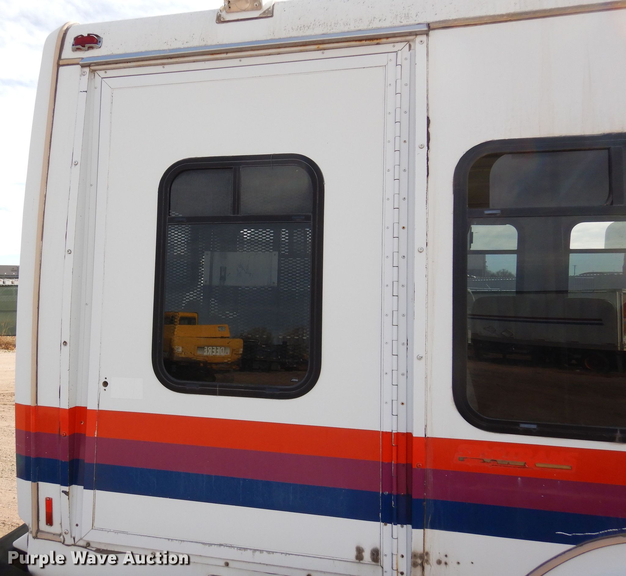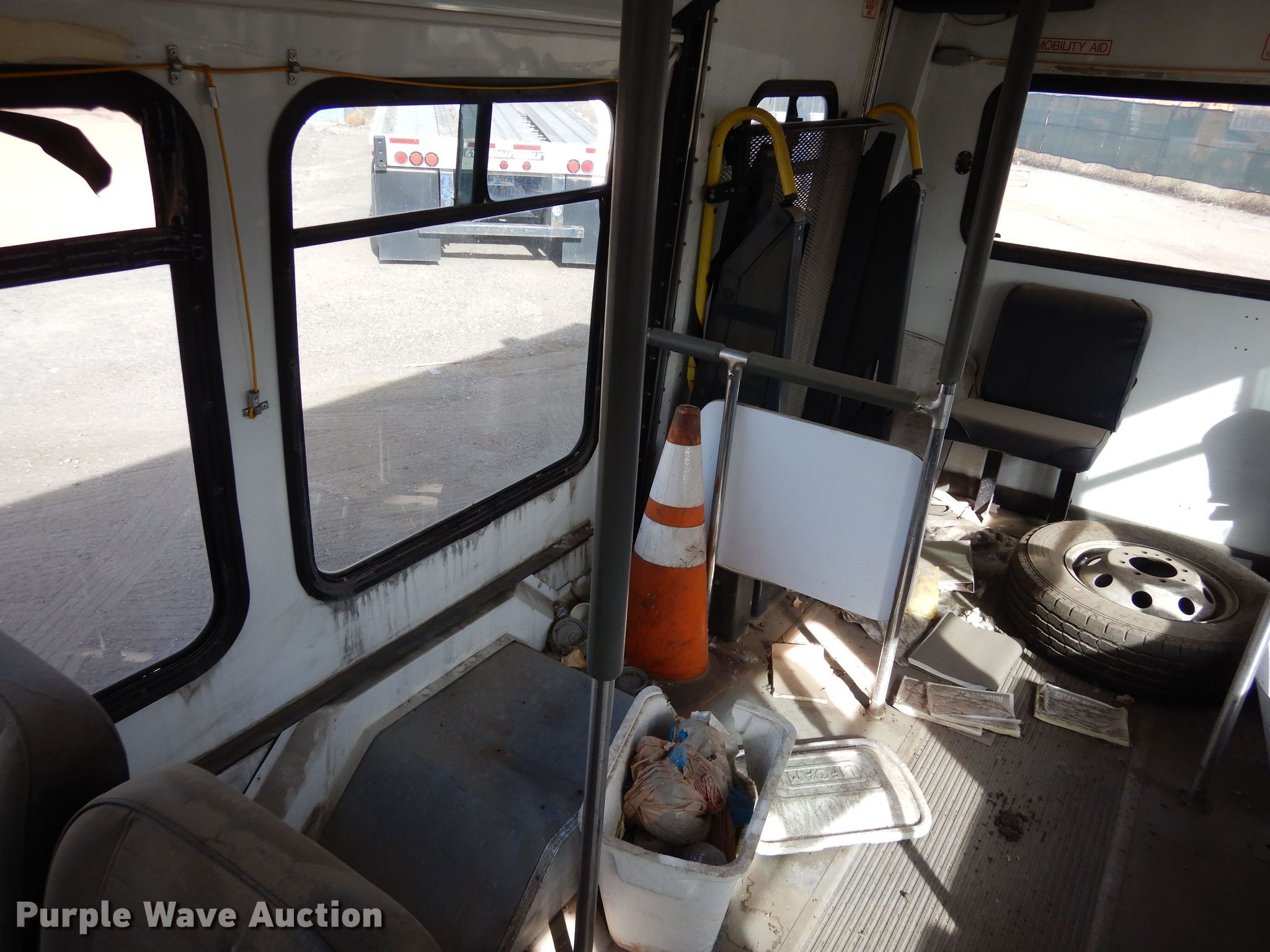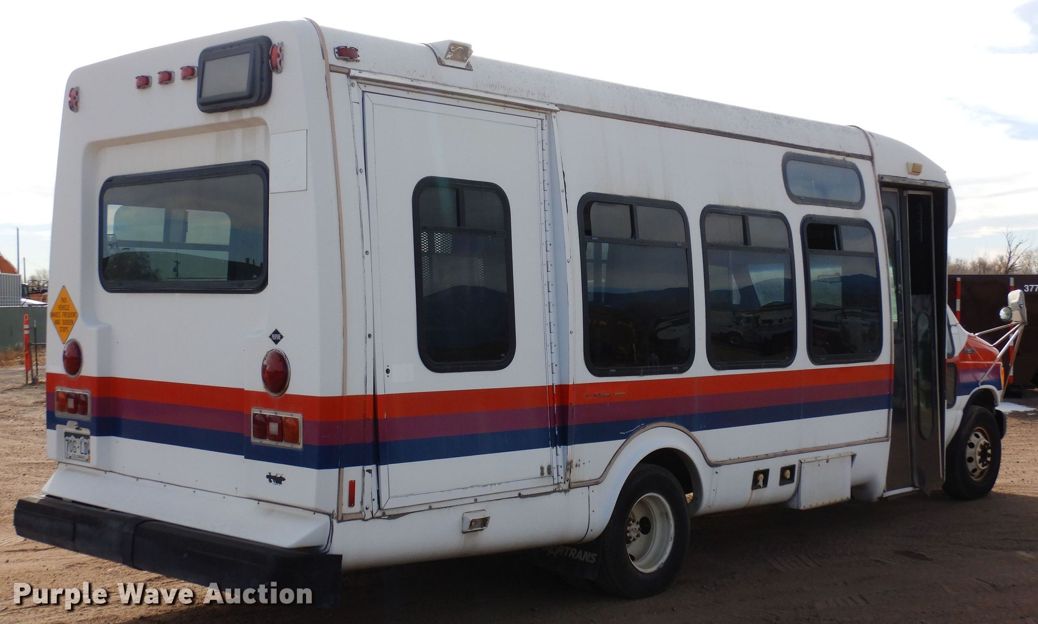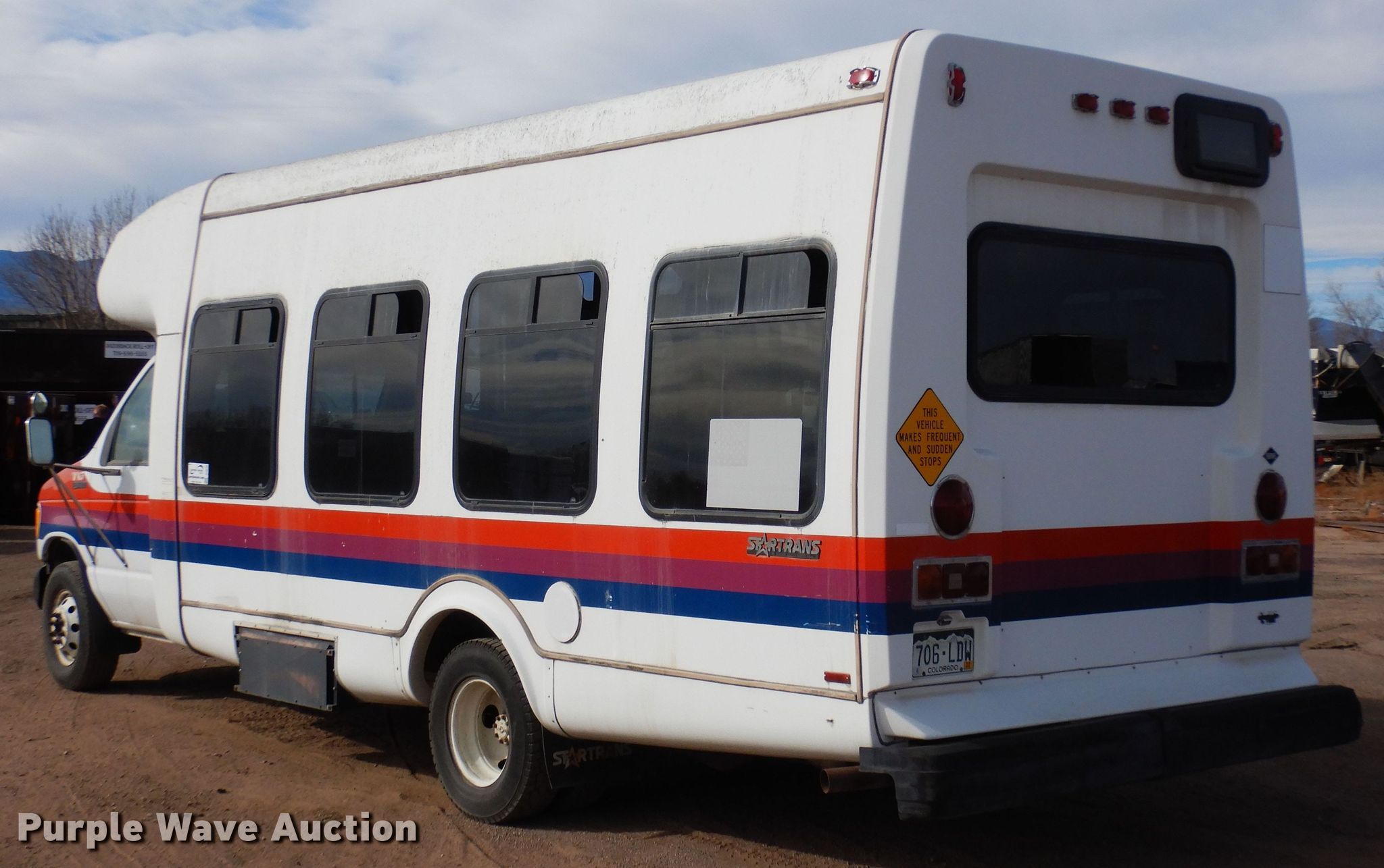 1994 Ford E350 shuttle bus. Miles: 215,160 on odometer, VIN: 1FDKE30G2RHB83775. Engine Ford, Displacement: 7.5L V8 OHV, Cylinders: 8, Fuel type: LPG. Transmission Automatic. Chassis Axles: Single, Suspension: Spring, Brakes: Hydraulic. Interior AC, Heat, Cruise control, Auxiliary controls, Passengers: 14, Wheelchair lift. Tires Front: LT245/75R16, Rear: LT225/75R16. Notes Glass missing. Colorado title. Title distribution may be delayed up to 14 days from verification of funds. Trax Construction. 5575 East Bijou Street. Colorado Springs, CO 80916