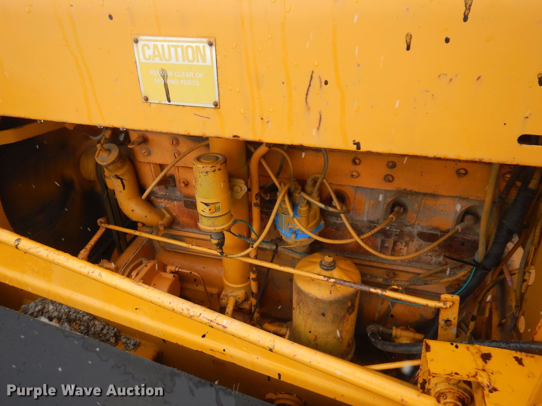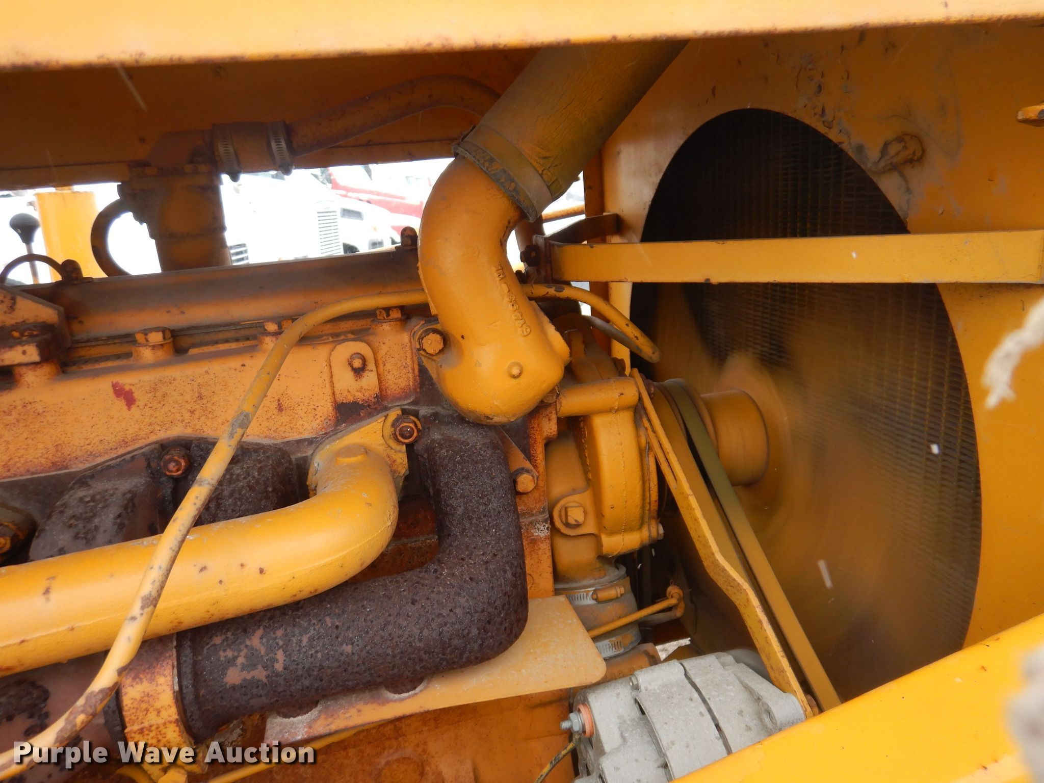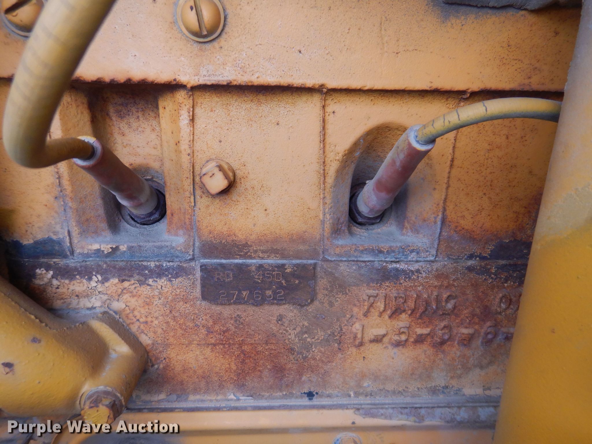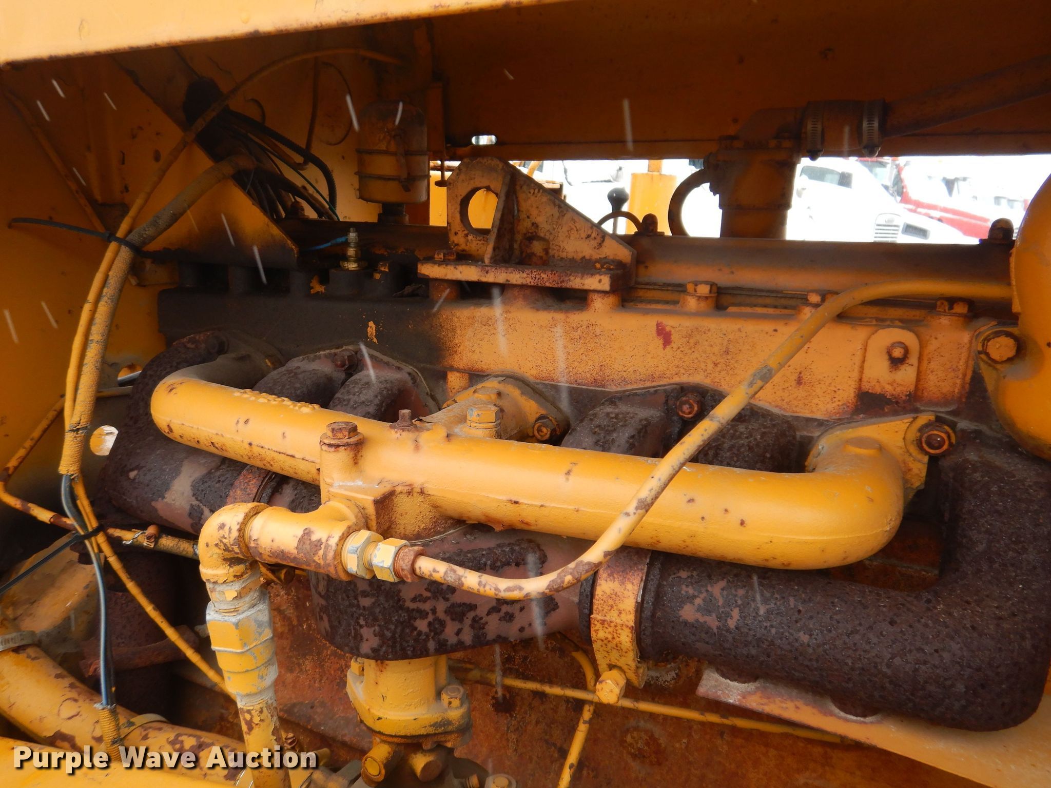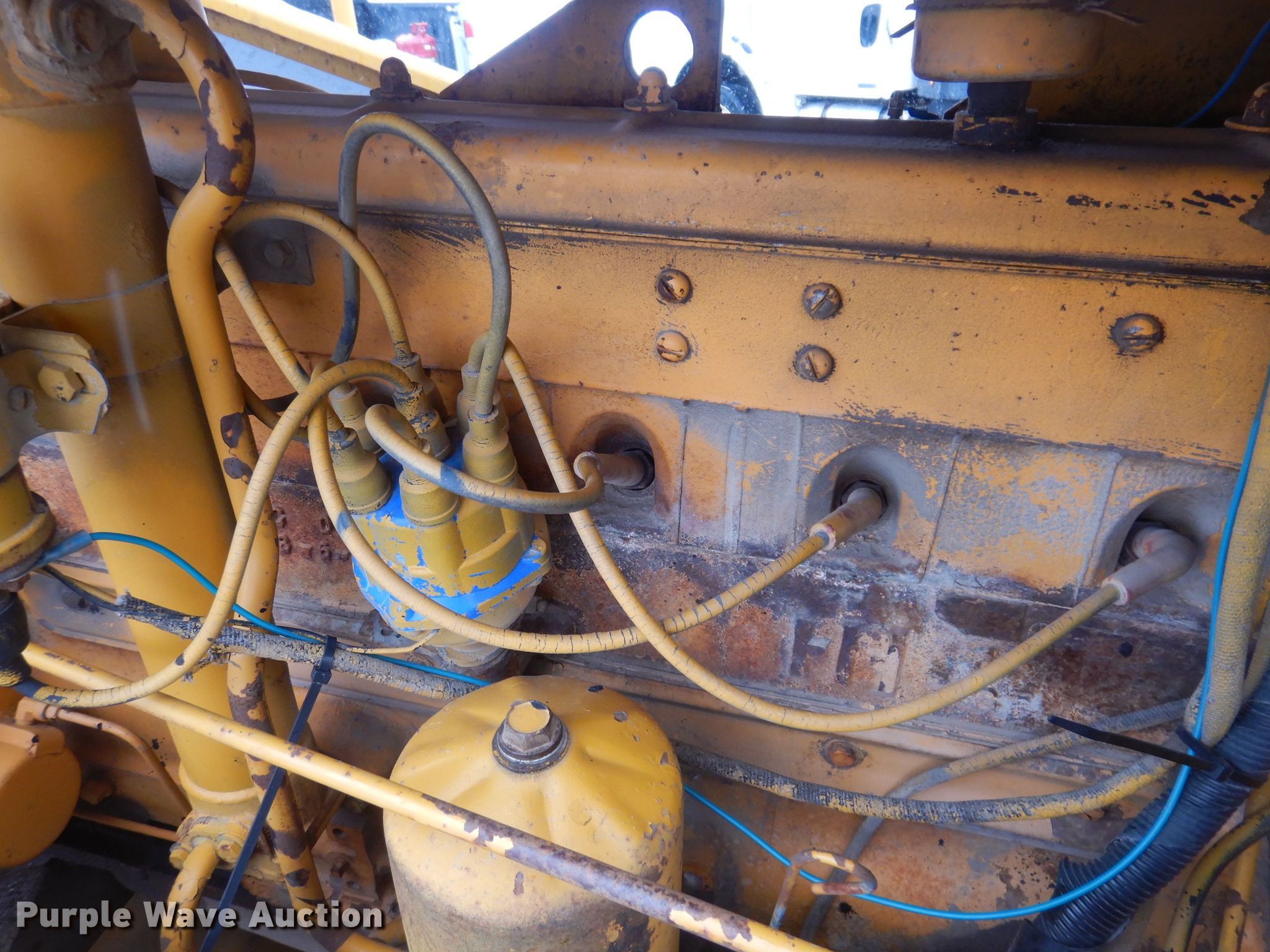 Entyre chip spreader. Hours: Unknown, Serial: K3977. Engine International RD450, Serial: 277652, Cylinders: 6, Fuel type: Gas. Transmission 4F - 4R. Features Front spread hopper width: 13', Material conveyor Width: 20". Tires Size: 10-20. Denco Highway Construction. 416 East Main Street. Mingo, IA 50168