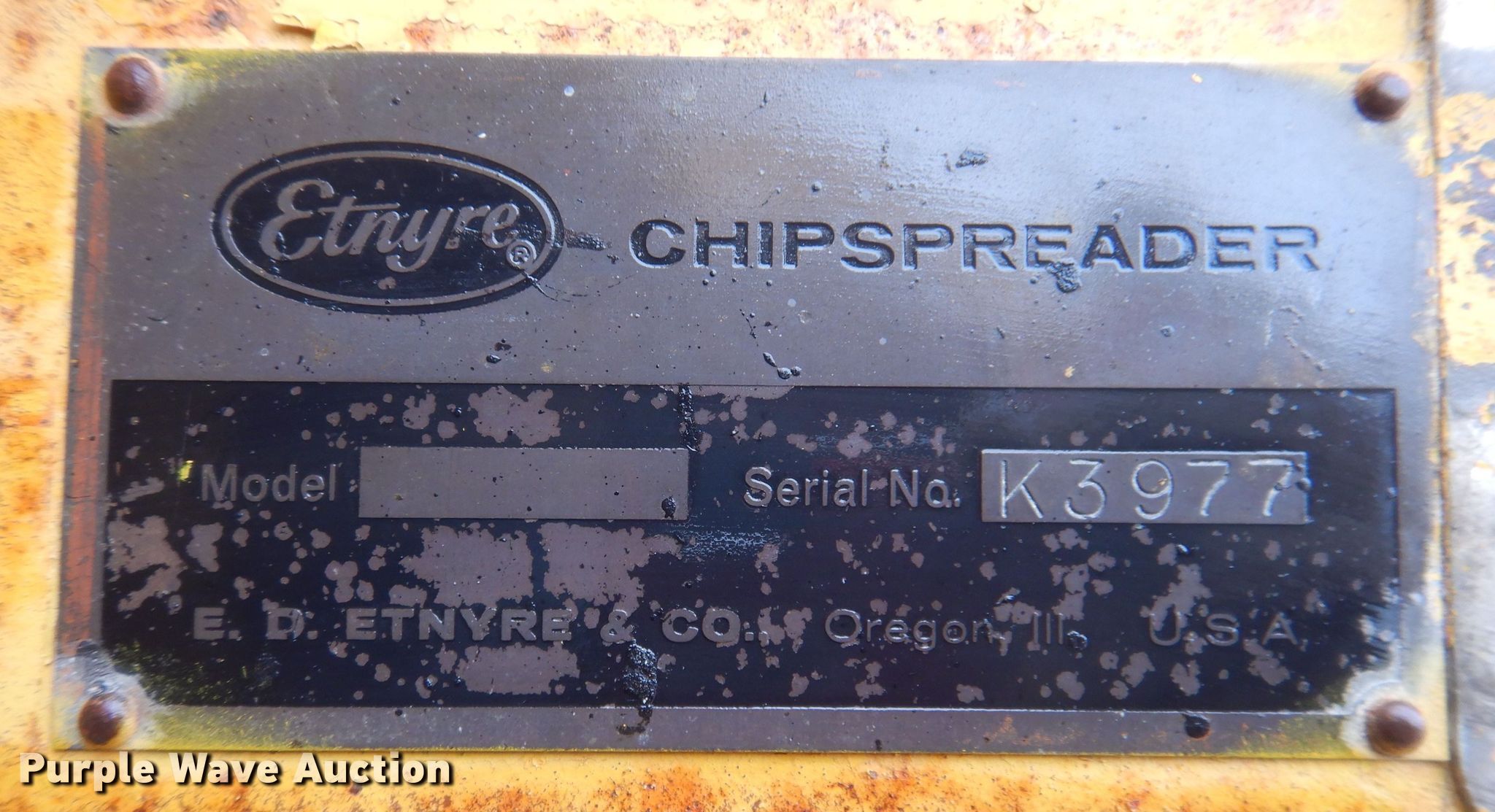 Purple Wave is selling a used Chip Spreader in Iowa. This item is a Entyre chip spreader with the following: Hours: Unknown, Serial: K3977