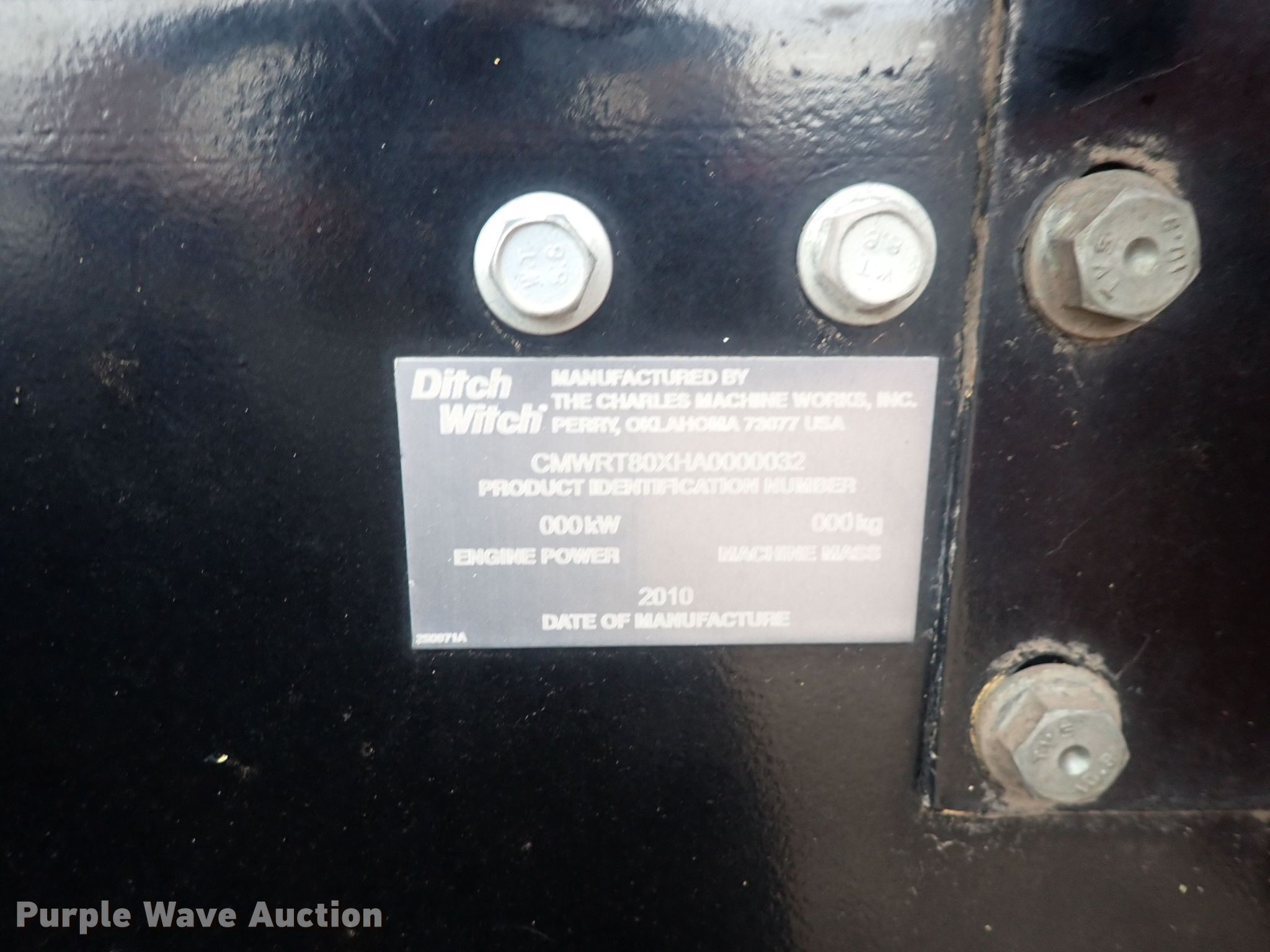 Purple Wave is selling a used Trencher or Rock Saw in Kansas. This item is a 2010 Ditch Witch RT80 trencher with the following: Hours: 1,691 on meter, Serial: CMWRT80XHA0000032, Unit #: 6