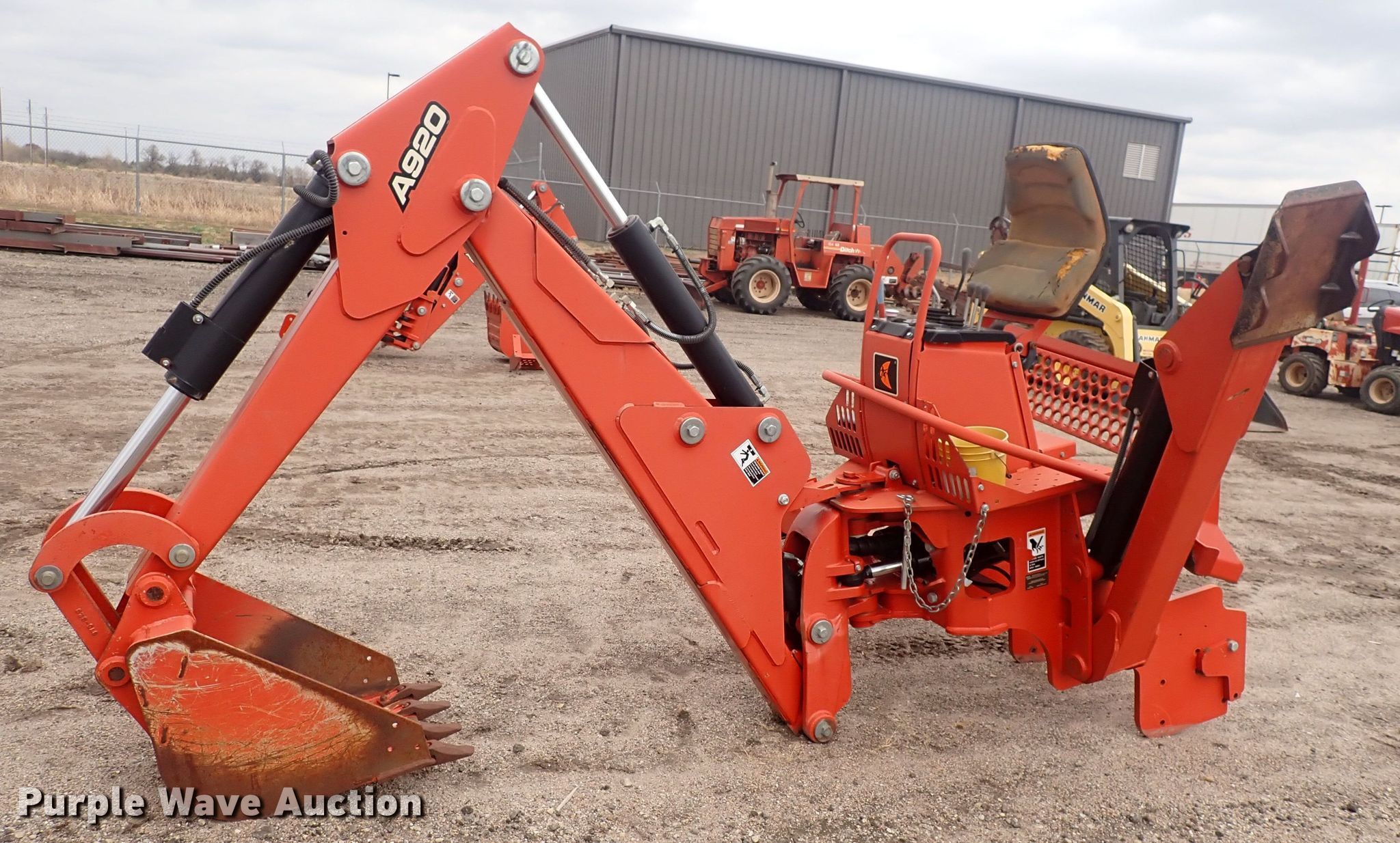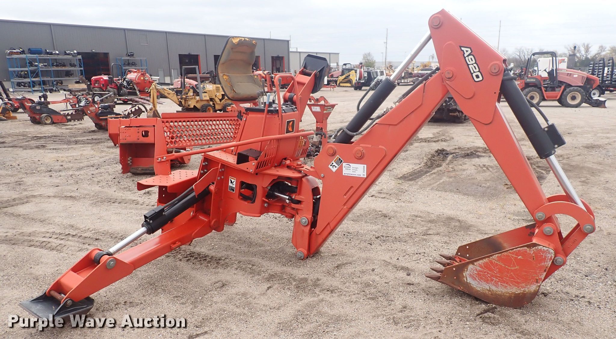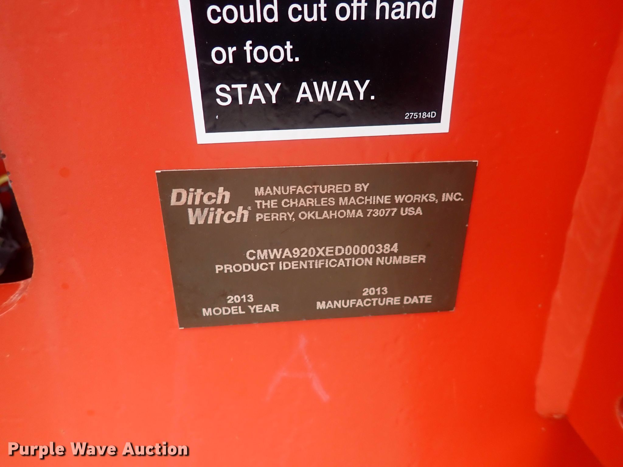 Purple Wave is selling a used Trencher Attach. in Kansas. This item is a 2013 Ditch Witch A920 backhoe with the following: Bucket, Width: 18", Teeth: 4, Controls: Two-stick, Outriggers, Serial: CMWA920XED0000384, Unit #: 13