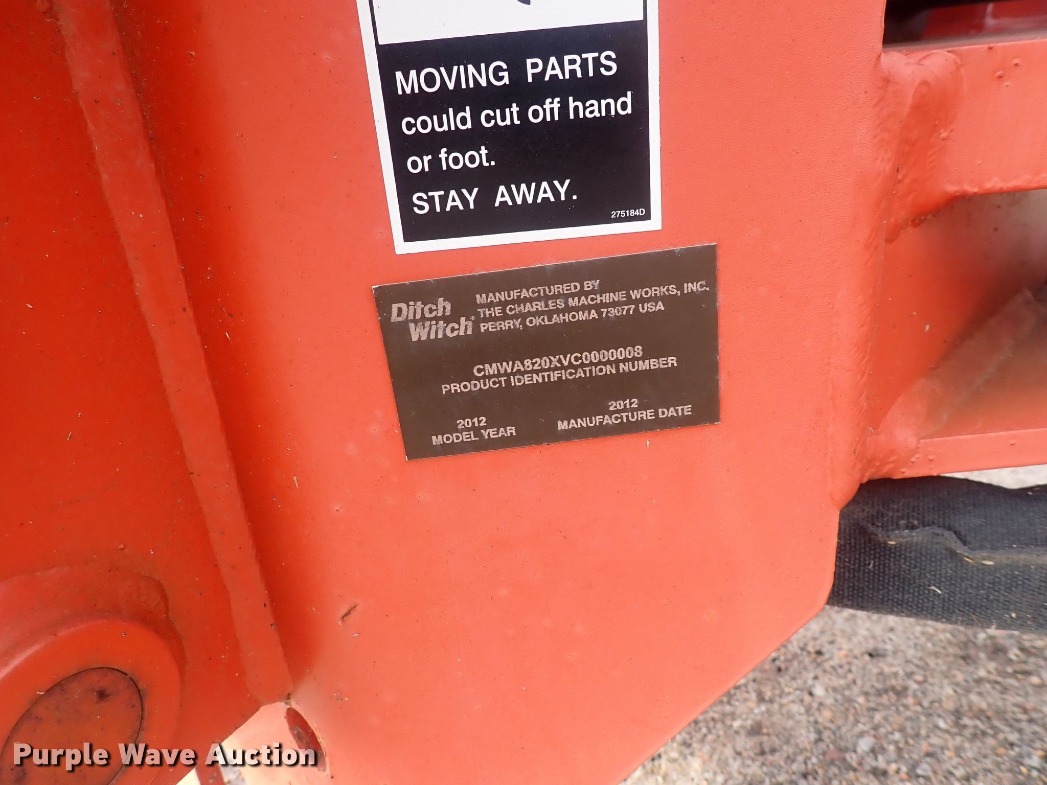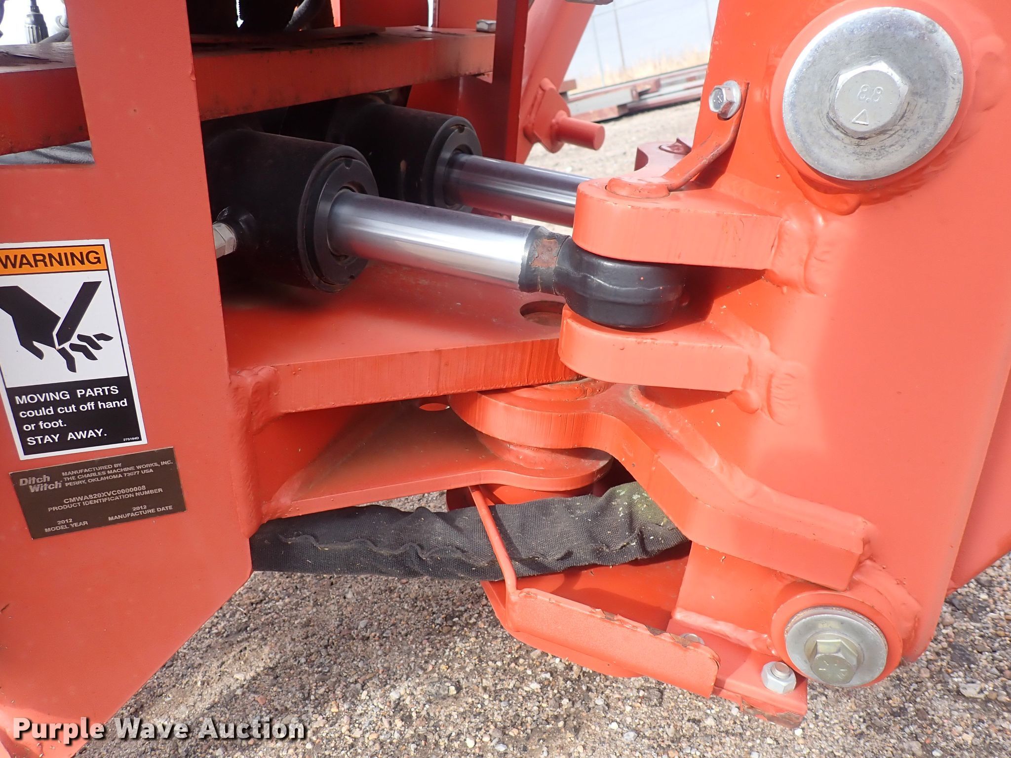 Purple Wave is selling a used Trencher Attach. in Kansas. This item is a 2012 Ditch Witch A820 backhoe with the following: Bucket, Width: 18", Teeth: 4, Controls: Two-stick, Outriggers, Serial: CMWA820XVC0000008, Unit #: 12