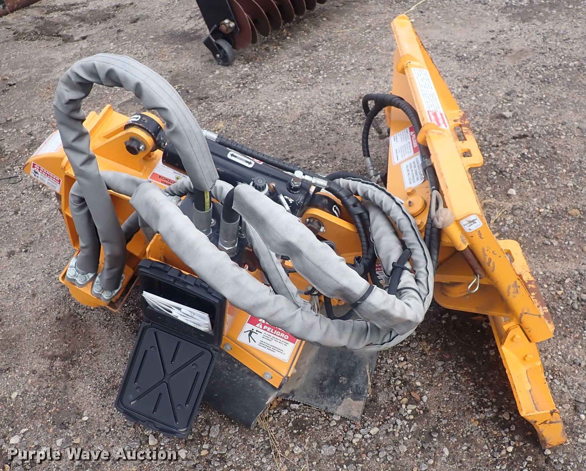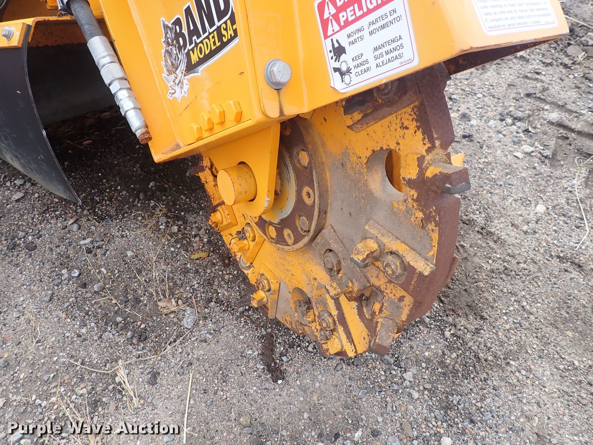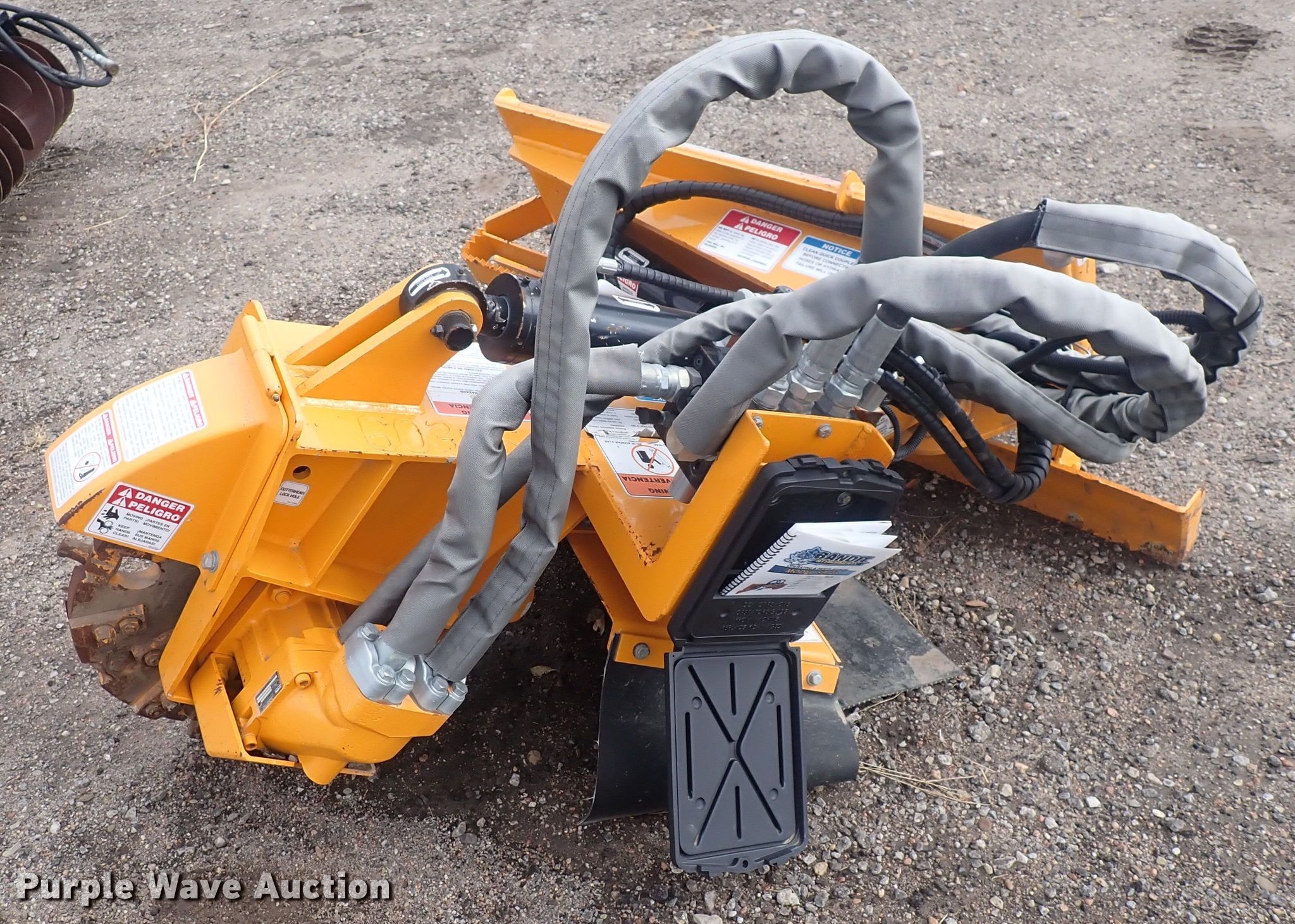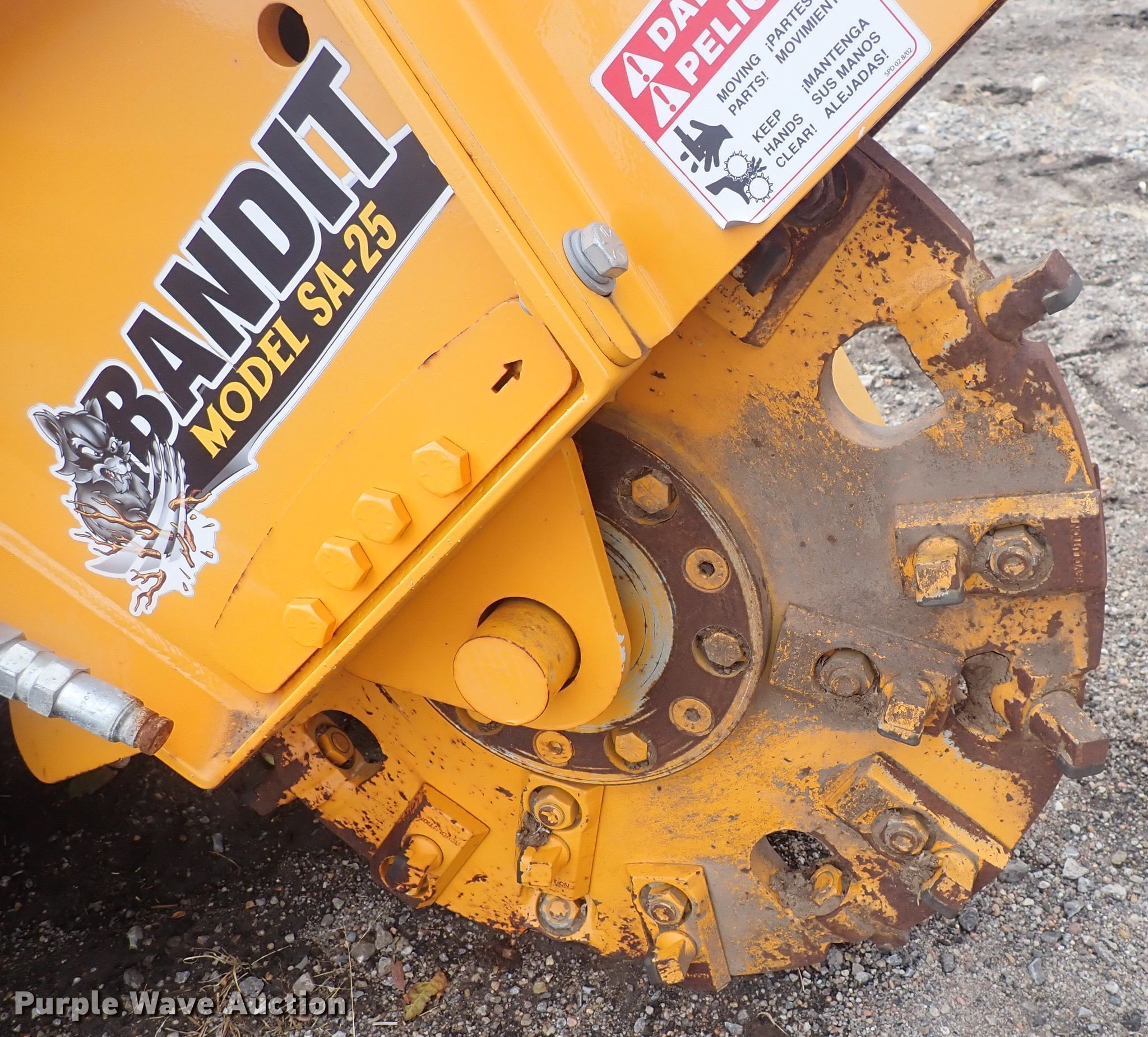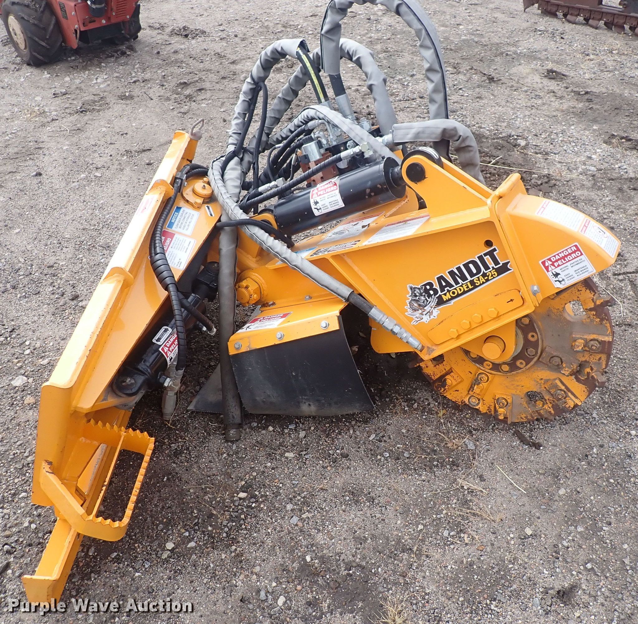 Purple Wave is selling a used Skid Steer Attach. in Kansas. This item is a Bandit SA-25 skid steer stump grinder with the following: Wheel diameter: 24.5", Cutting depth: 21", Serial: 50491