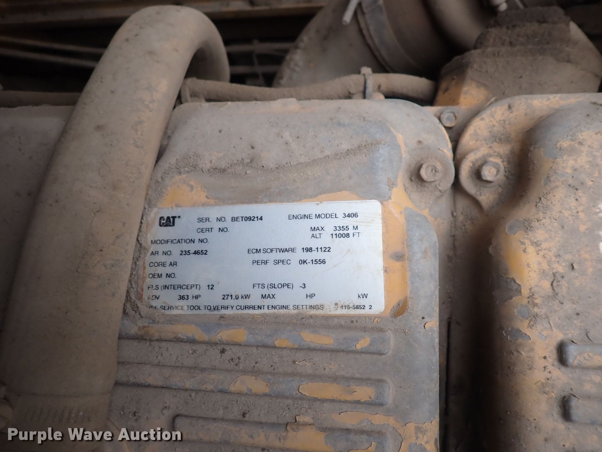 2001 Caterpillar 623G elevating scraper. Hours: 19,668 on meter, Hours: 19,598 on second meter, Serial: ARW00125. Engine Caterpillar 3406, Serial: BET00376, Displacement: 14.6L, Cylinders: 6, Fuel type: Diesel, HP: 363. Transmission Powershift, 8F - 1R. Chassis Brakes: Air. Operators station Enclosed cab, AC, Heat. Features Bowl capacity: 23.1 cu.yd., Cushion hitch, Elevator reverse, Hydraulic lift, Scraper controls: Joystick. Tires Size: 33.25R29. Allied Equipment. Wichita, KS 67217