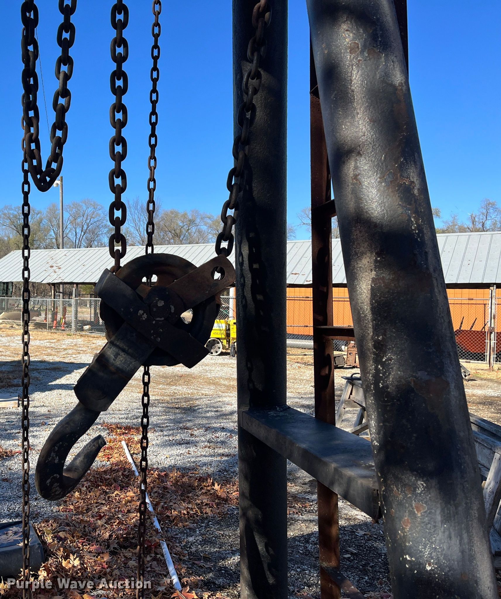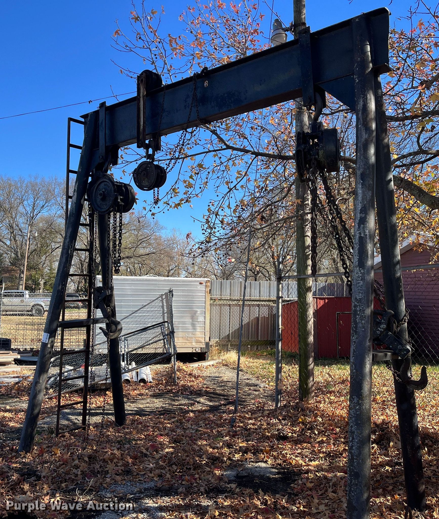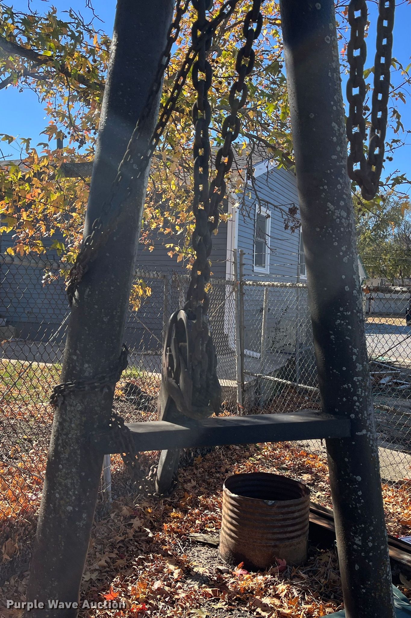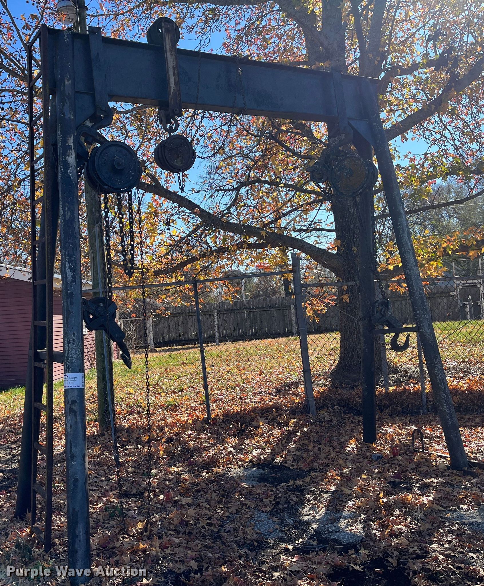 Purple Wave is selling a used Tools in Kansas. This item is a A-frame hoist with the following: 12'6" H x 12'8" W