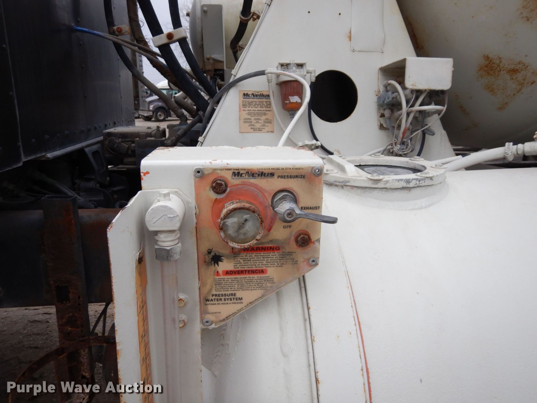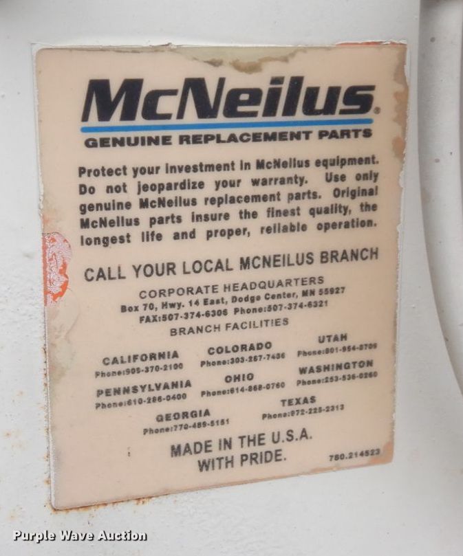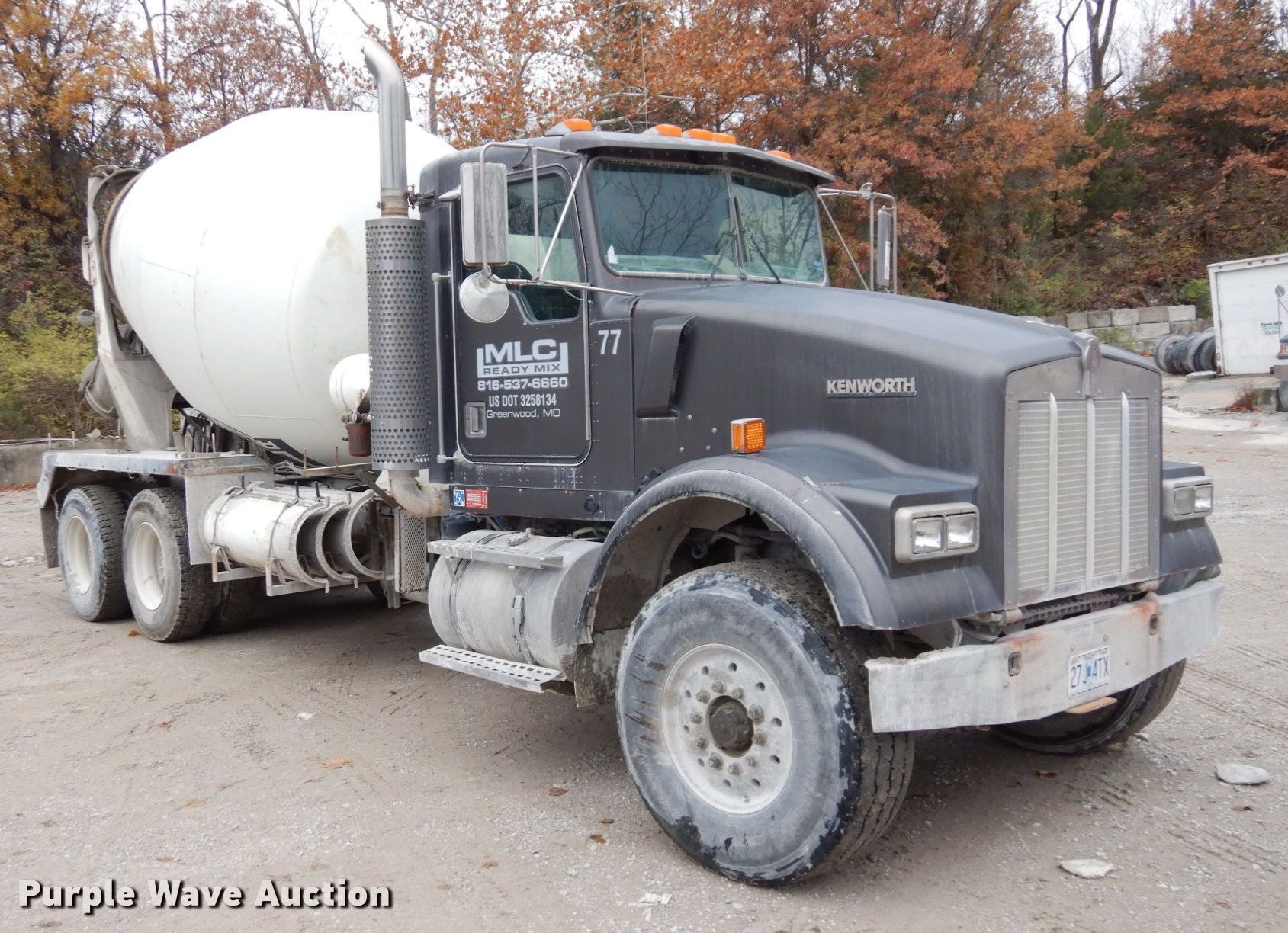 2002 Kenworth ready mix truck. Miles: 54,863 on odometer, VIN: 1NKWL00X12J892320, Unit #: 77. Engine Cummins, Cylinders: 6, Fuel type: Diesel. Transmission Eaton Fuller, Manual, Speed: 10. Chassis Double frame, Axles: Tandem, Differential lock: Full, Suspension: Spring over walking beam, GVWR: 64,540 lbs FAWR: 18,540 lbs, IAWR: 23,000 lbs, RAWR: 23,000 lbs. Interior AC, Heat, Heated mirrors, Power windows, Cruise control, Auxiliary controls. Features Mixer McNeilus, Discharge: Rear, In-cab controls, Rear drum controls, Chute Extensions: 3, Chute type: Steel.. Tires Front: 425/65R22.5, Rear: 11R22.5. Missouri title. MLC Ready Mix, Inc. 15721 Airport Rd.. Greenwood, MO 64034
