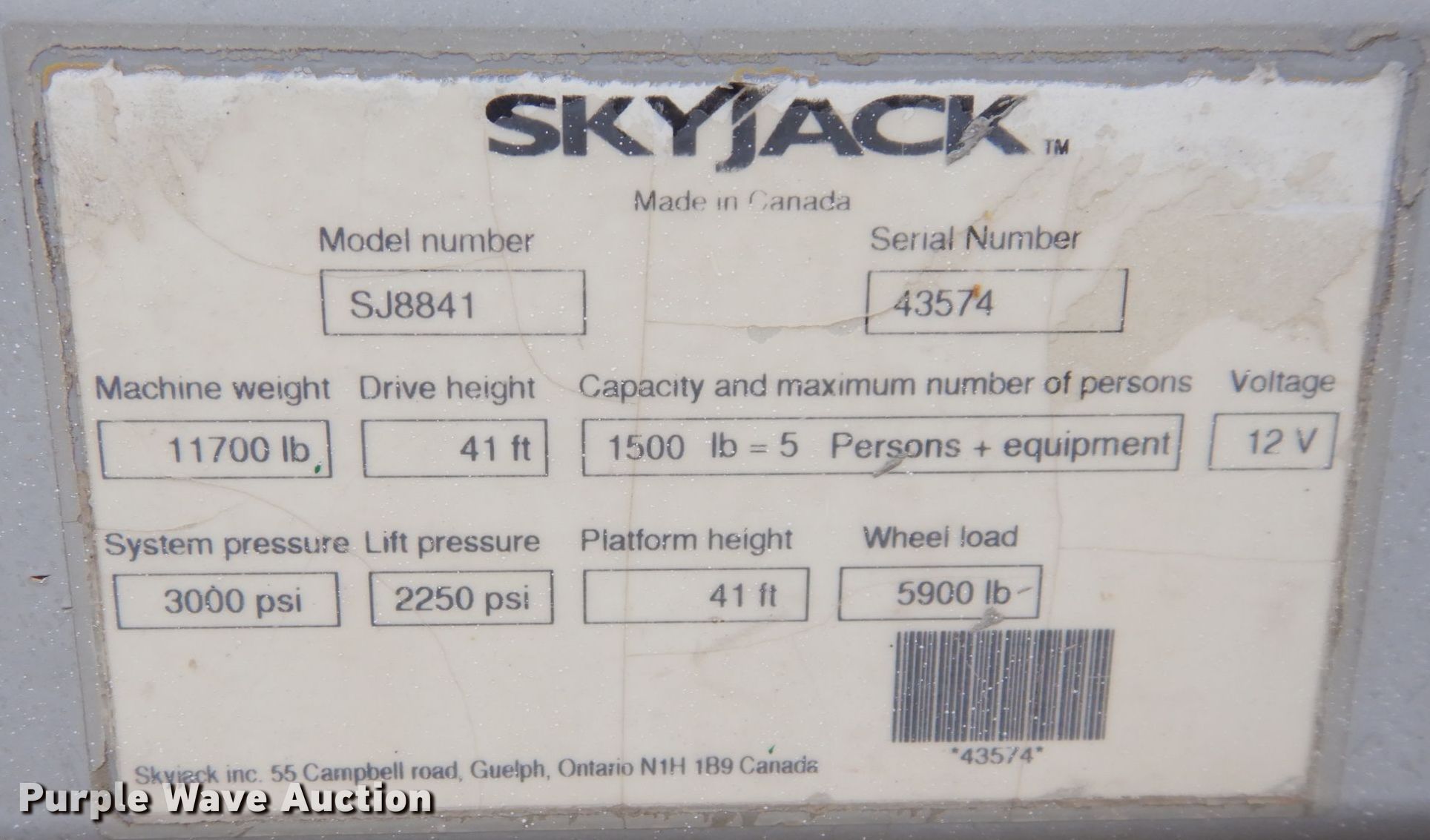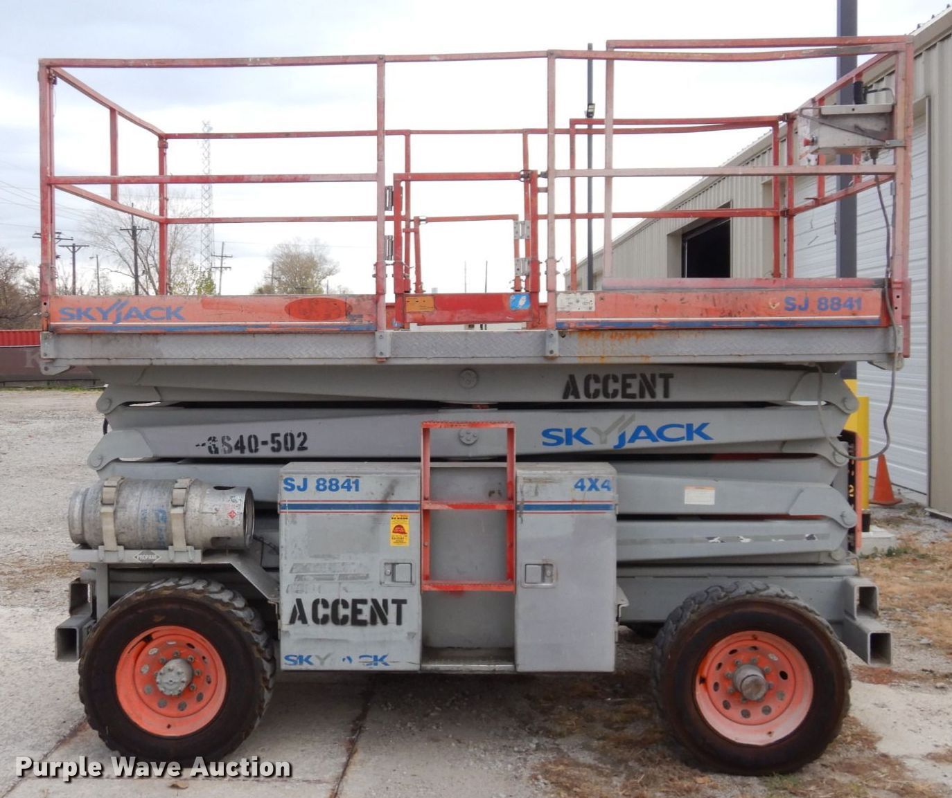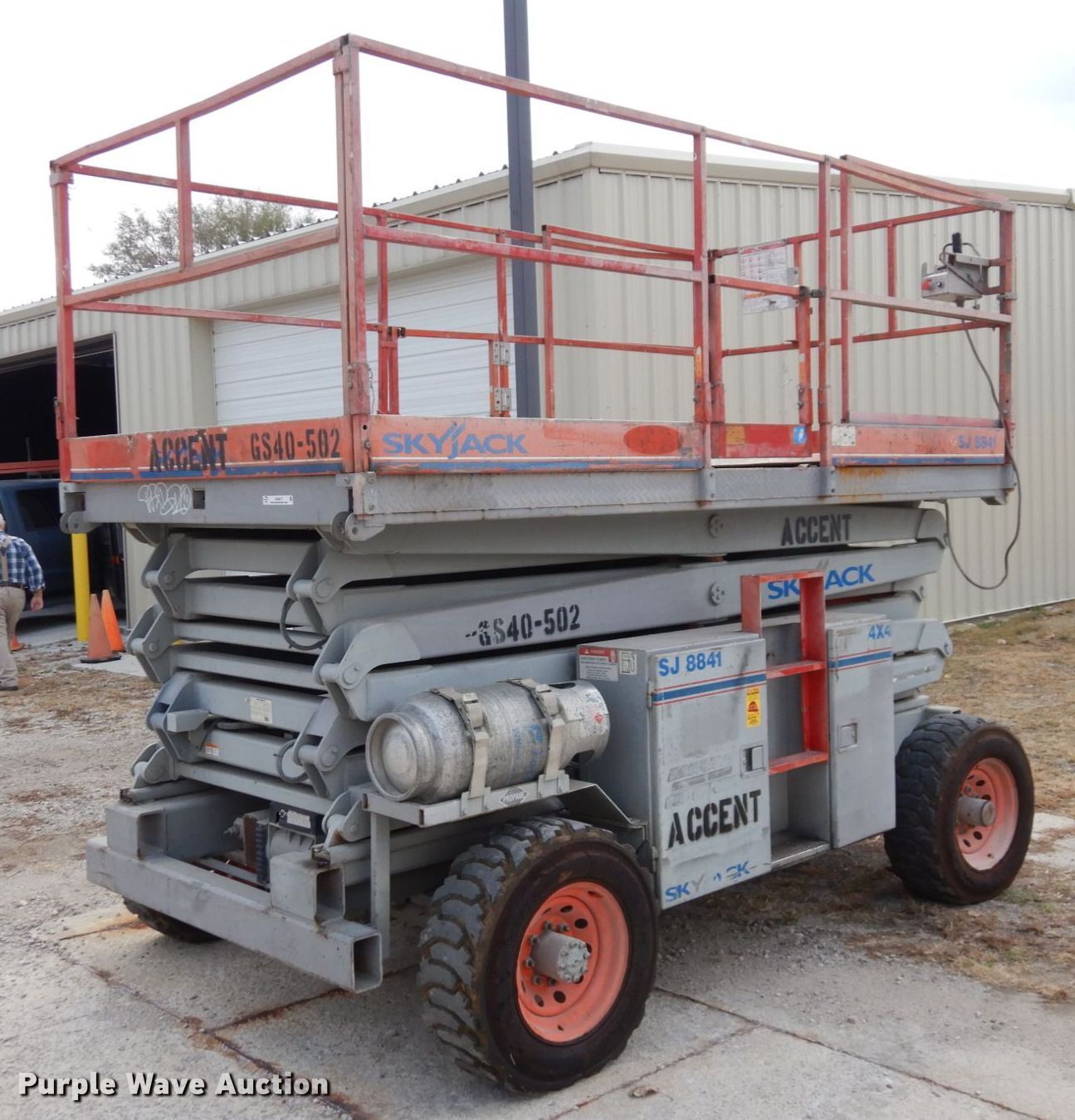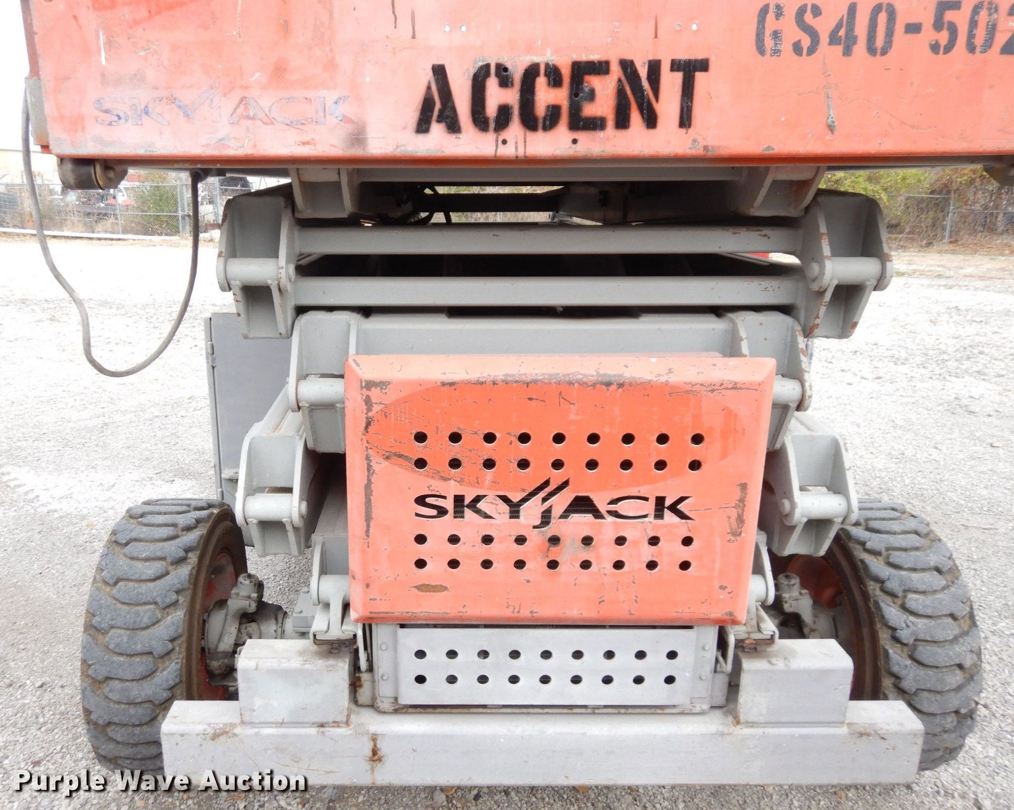 Purple Wave is selling a used Scissor or Vertical Lift in Kansas. This item is a Skyjack SJ8841 scissor lift with the following: Hours: 3,165 on meter, Serial: 43574