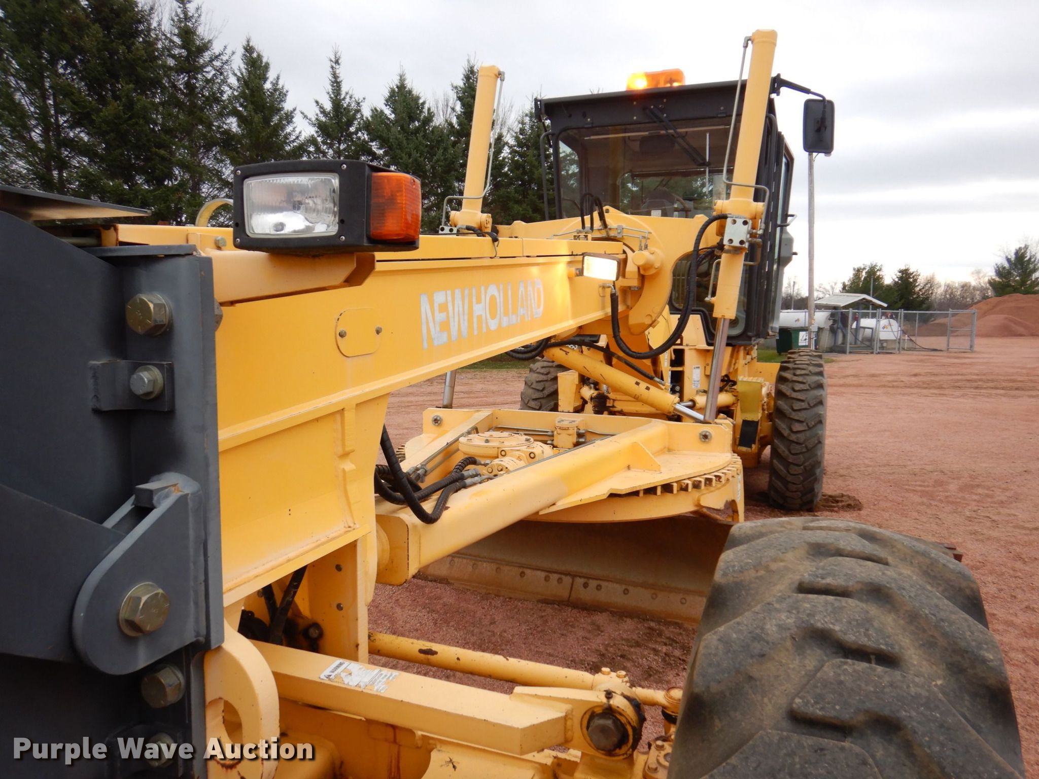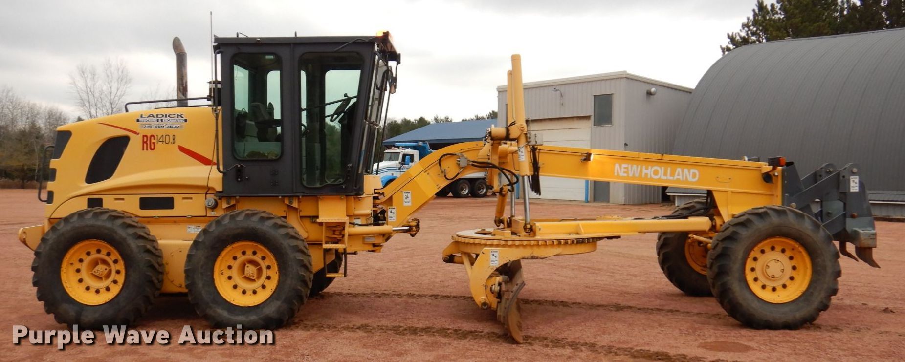 Purple Wave is selling a used Motor Grader in Wisconsin. This item is a 2005 New Holland RG140B motor grader with the following: Hours: 7,002 on meter, Serial: N5AF00063