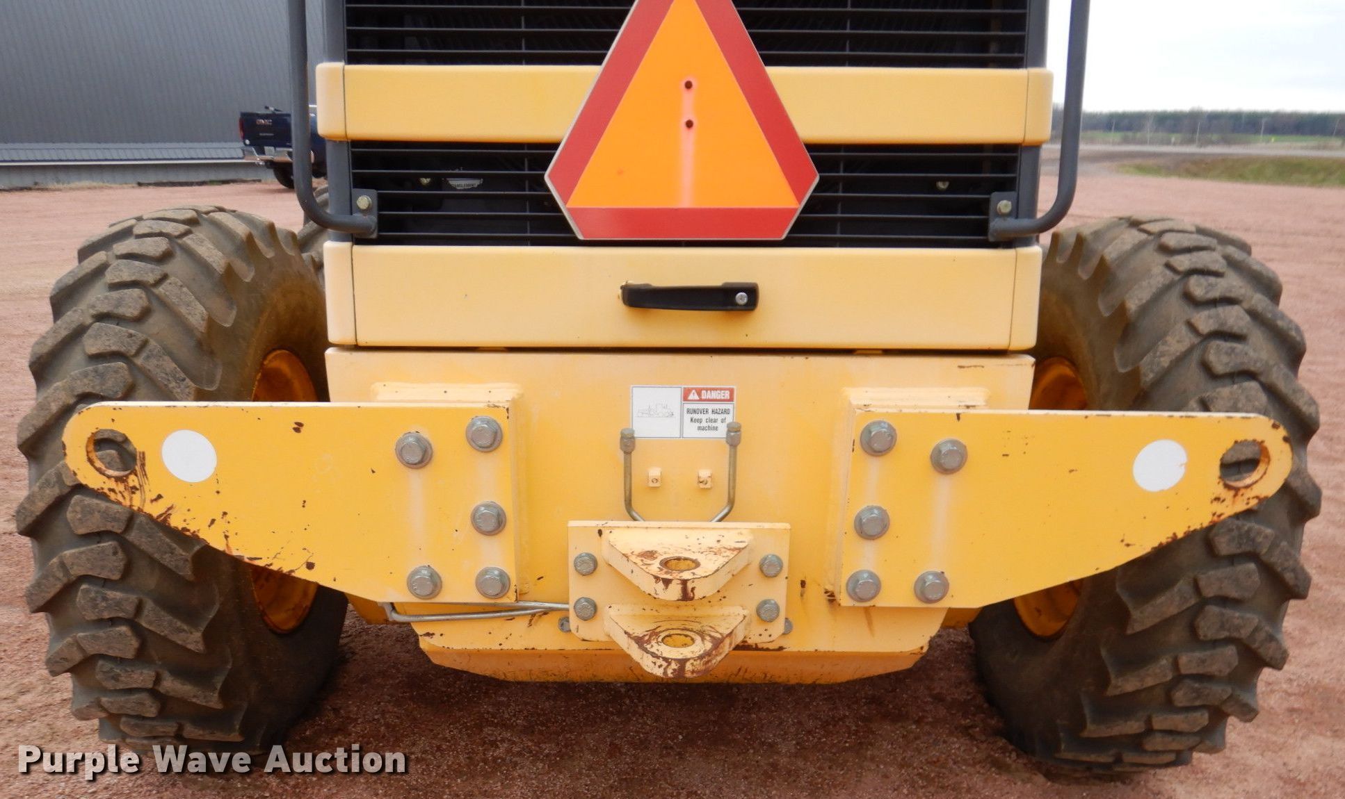 2005 New Holland RG140B motor grader. Hours: 7,002 on meter, Serial: N5AF00063. Engine Cummins B5.9, Cylinders: 6, Fuel type: Diesel. Transmission Powershift, 8F - 4R. Chassis Differential lock. Operators station Enclosed cab, AC, Heat, Hydraulic control valves: 9. Features Moldboard: Tip control, Side shift, Moldboard total length: 12', Circle slip clutch, Front-mounted lift group, Scarifier Scarifier type: Front-mounted Teeth: 5.. Tires Size: 14.00-24. 4520 County Road C. Vesper, WI 54489
