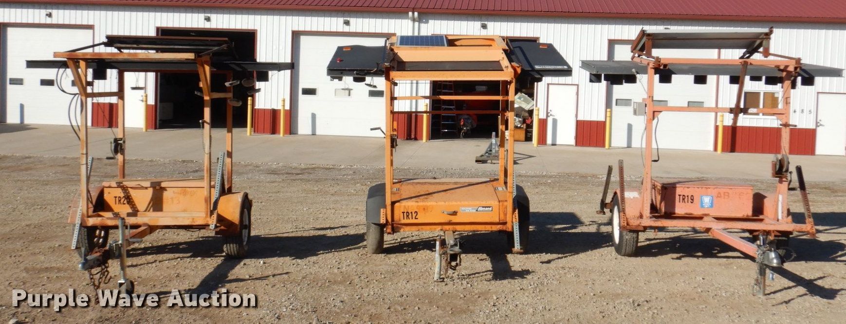 Purple Wave is selling a used Road Safety Equip. in Illinois. This item is a (3) arrow board trailers with the following: Manual lift, Stabilizers, Steel wheels, Tire size 205/75R15 tires, GVWR: 2,100 lbs, Lights may need to be replaced, Serial: 1W91S1014Y1249391, Unit #: TR19