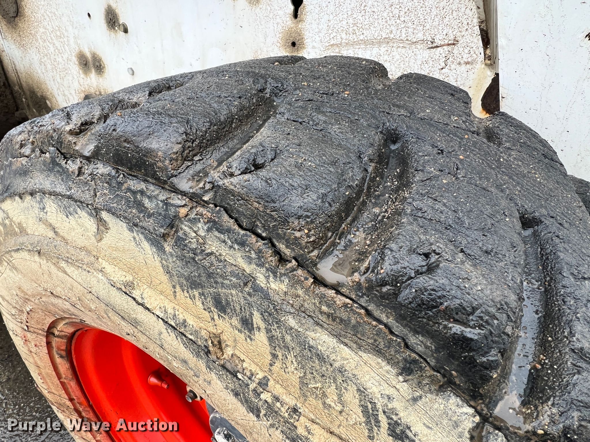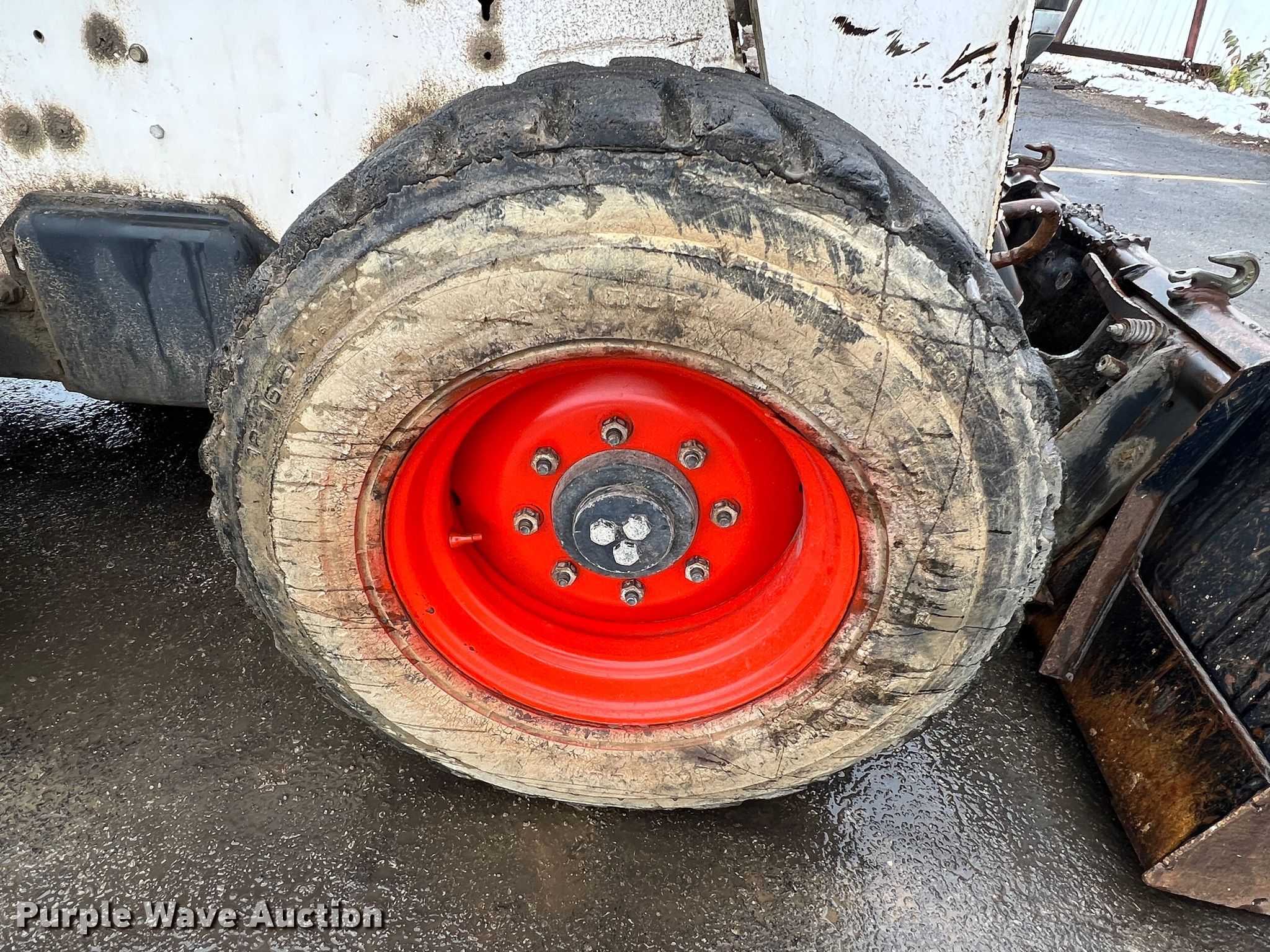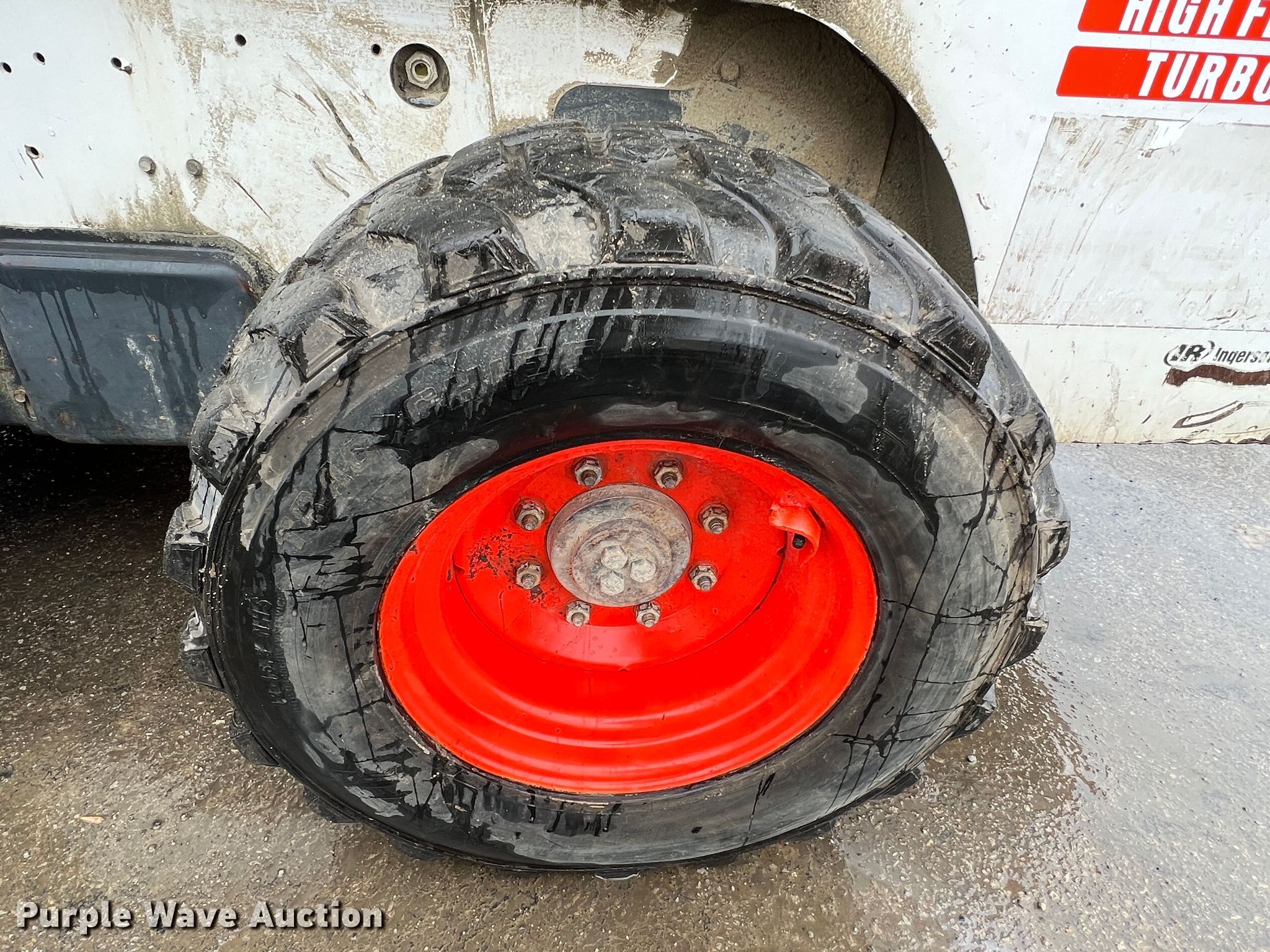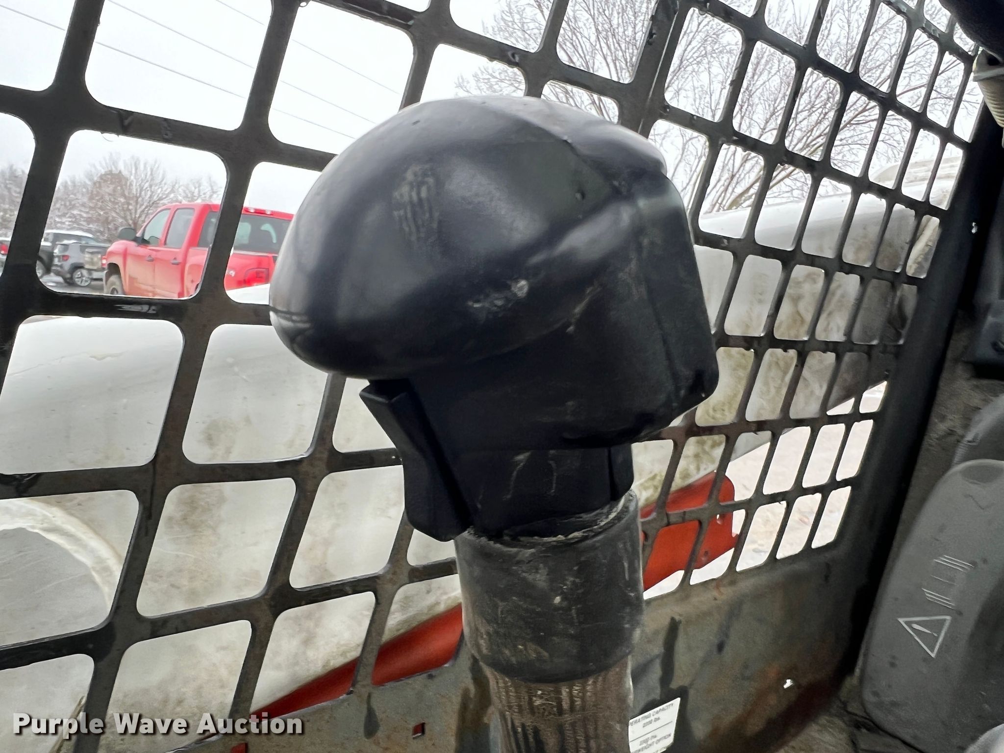 2003 Bobcat S220 skid steer loader. Hours: 4,427 on meter, Serial: 526211080. Engine Kubota, Cylinders: 4, Fuel type: Diesel, HP: 75. Transmission Hydrostatic. Operators station EROPS, Bucket control: Foot. Features Auxiliary hydraulics, Auxiliary electrical outlet, Quick coupler: Manual, Bucket John Deere T76, Width: 76", Cutting edge: Weld-on, Teeth: Bolt-on. Tires Size: 12-16.5. Notes Foam filled front tires. Higgins Asphalt. 35086 Higgins Rd. Tipton, MO 65081