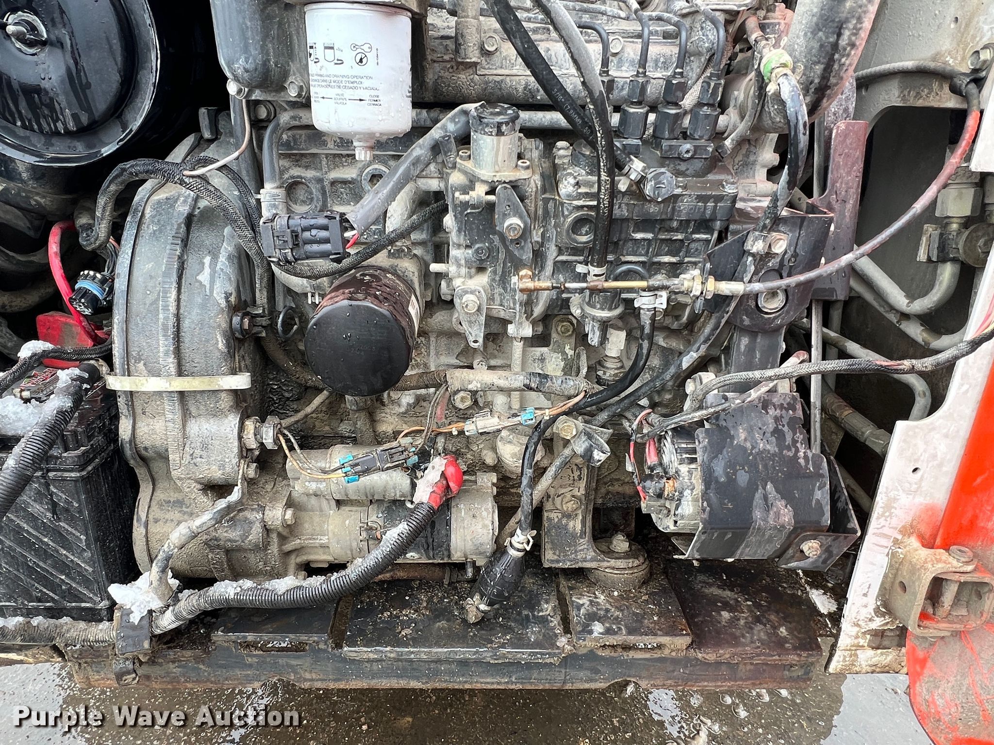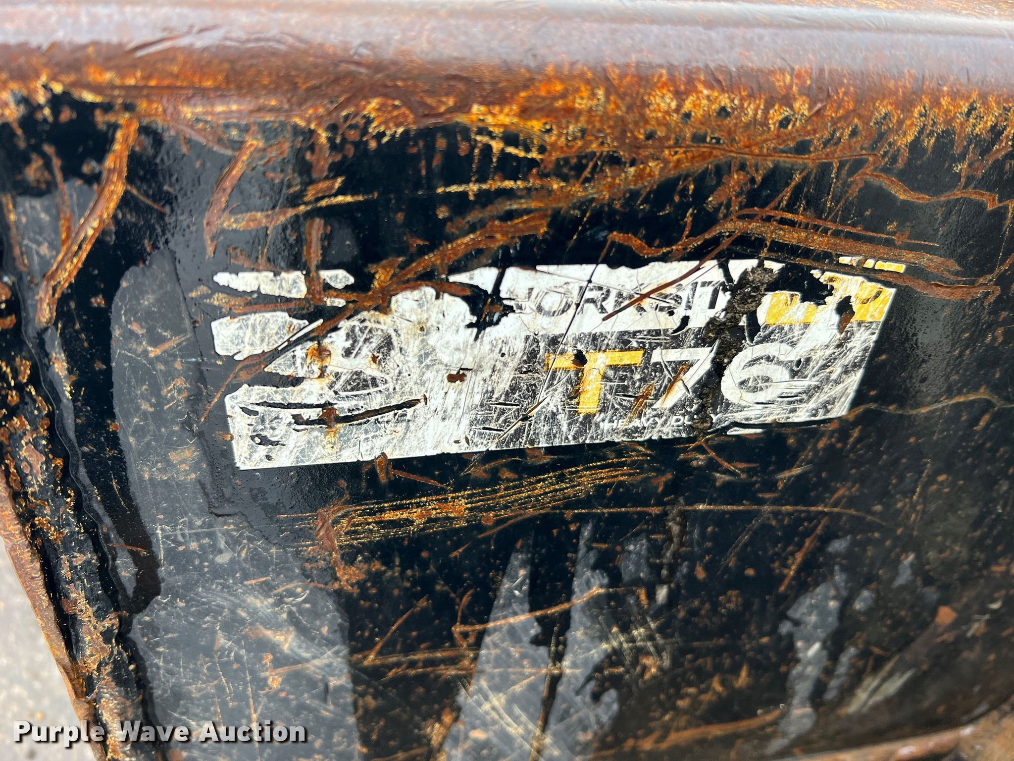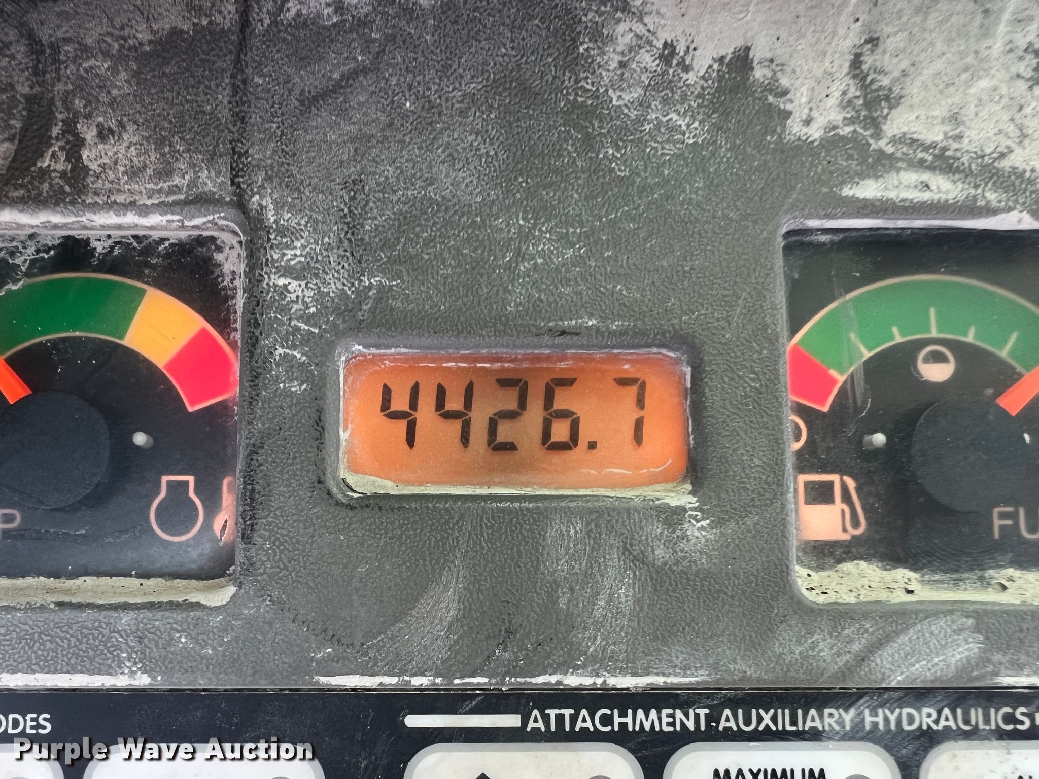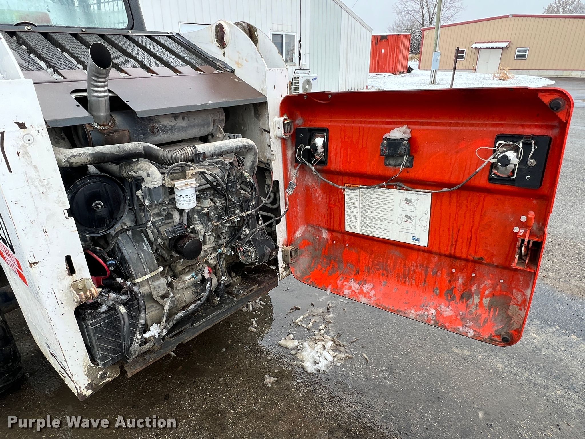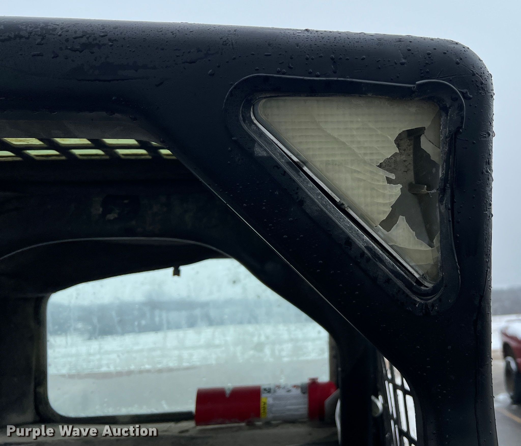 2003 Bobcat S220 skid steer loader. Hours: 4,427 on meter, Serial: 526211080. Engine Kubota, Cylinders: 4, Fuel type: Diesel, HP: 75. Transmission Hydrostatic. Operators station EROPS, Bucket control: Foot. Features Auxiliary hydraulics, Auxiliary electrical outlet, Quick coupler: Manual, Bucket John Deere T76, Width: 76", Cutting edge: Weld-on, Teeth: Bolt-on. Tires Size: 12-16.5. Notes Foam filled front tires. Higgins Asphalt. 35086 Higgins Rd. Tipton, MO 65081