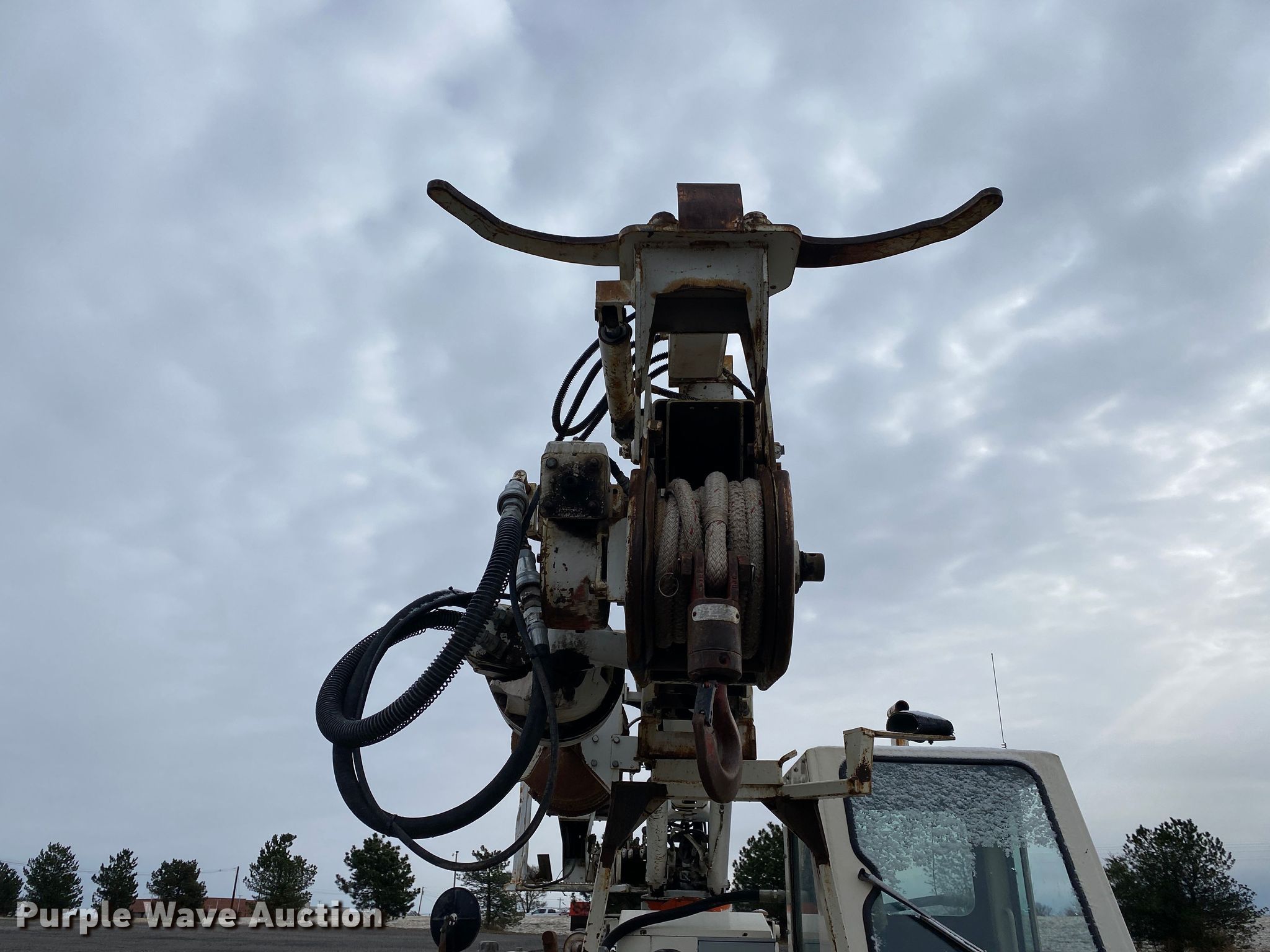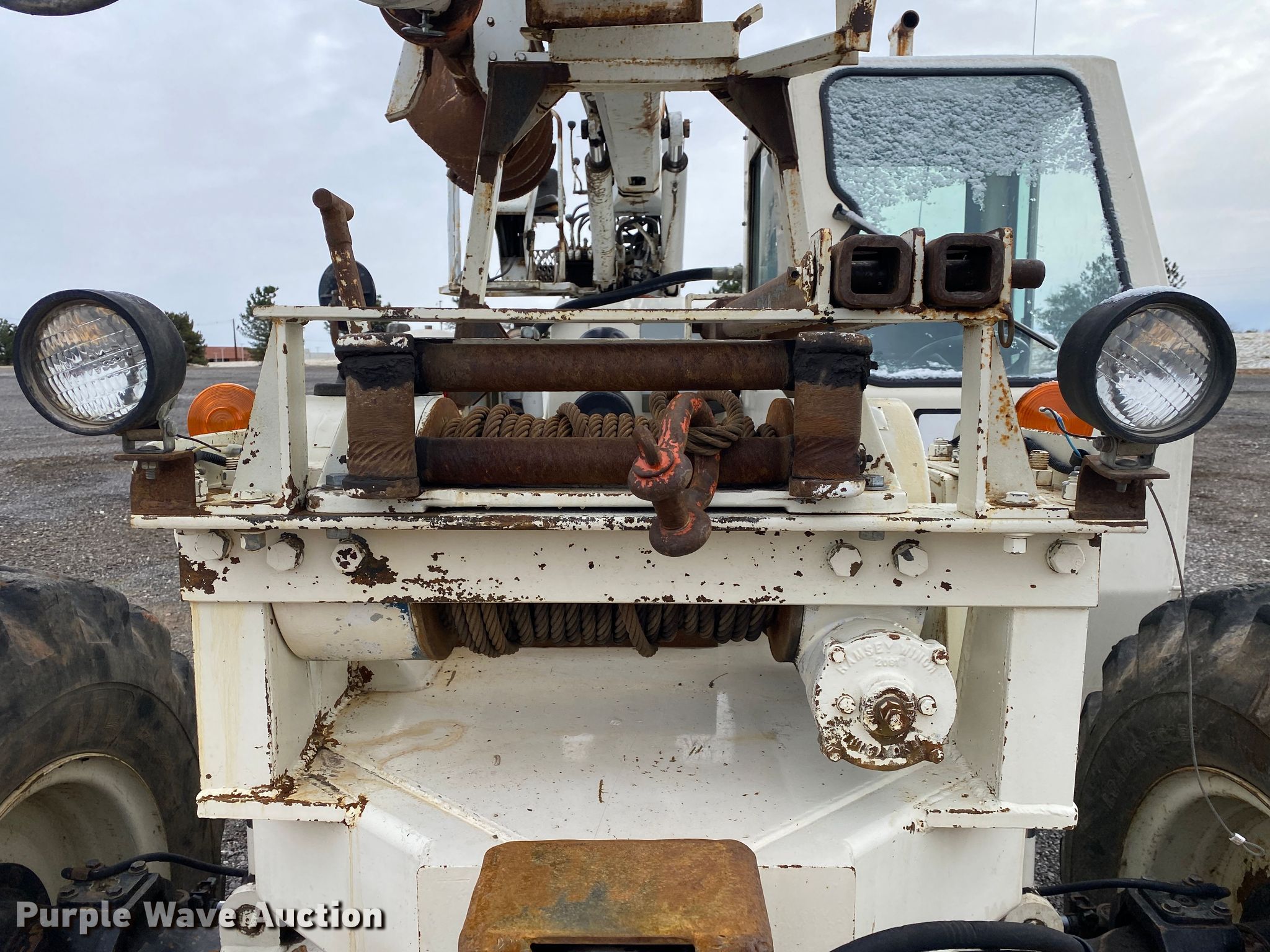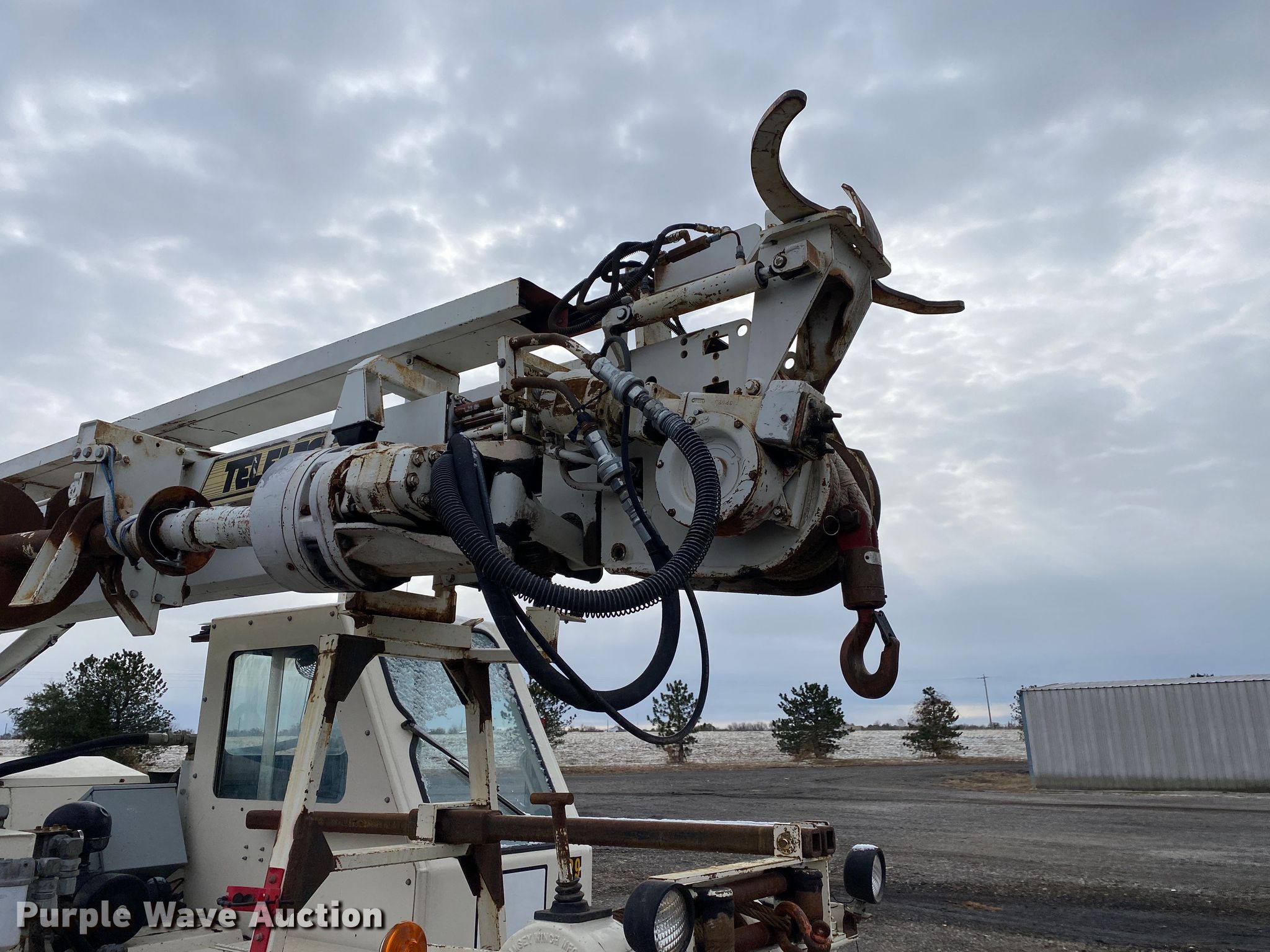 Terex SS1048 telehandler. Hours: 2,087 on meter, Serial: 0027672087. Engine John Deere, Cylinders: 4, Fuel type: Diesel. Transmission Powershift, 3F - 3R, Four wheel drive, Differential lock. Operators station OROPS, Steering: Crab, Four wheel. Features Maximum lift capacity: 13,450 lbs, Maximum lift height: 40', Tilt carriage, Hydraulic outriggers, Pole guide, Terex 20" diameter auger, Backfill blade. Tires Size: 17.5-25. 15600 North 145th East Avenue. Collinsville, OK 74021