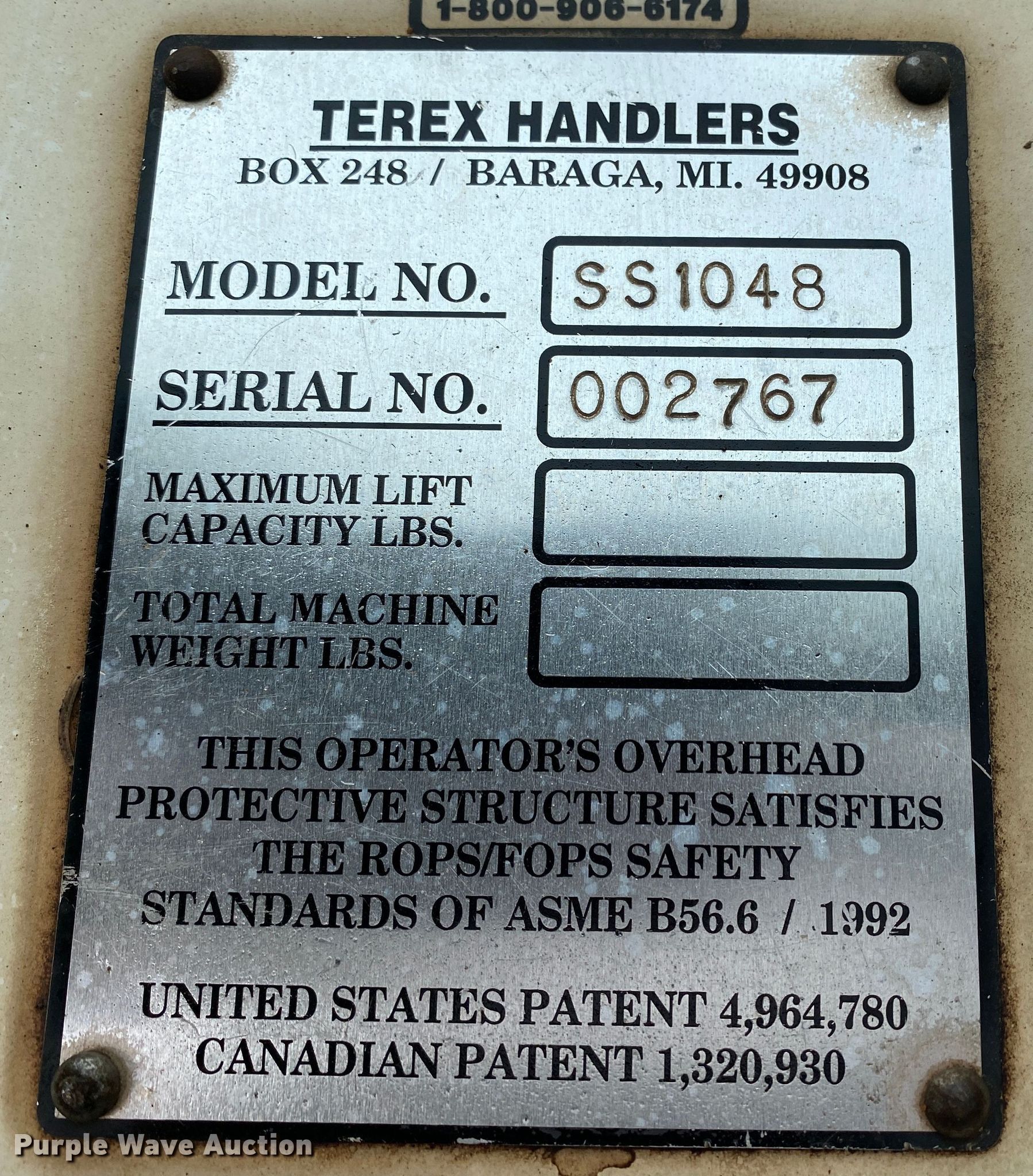 Purple Wave is selling a used Telehandler in Oklahoma. This item is a Terex SS1048 telehandler with the following: Hours: 2,087 on meter, Serial: 0027672087