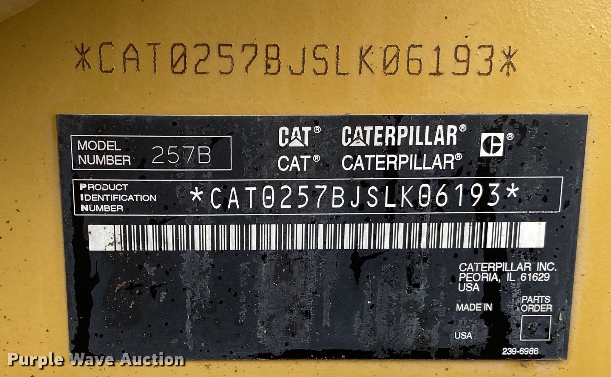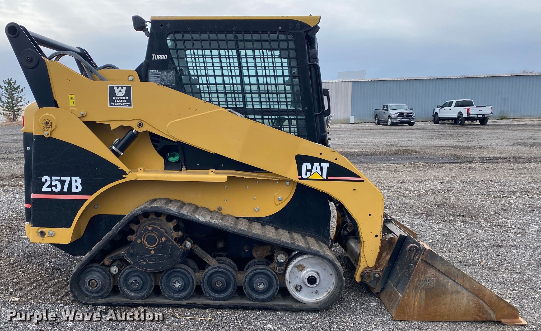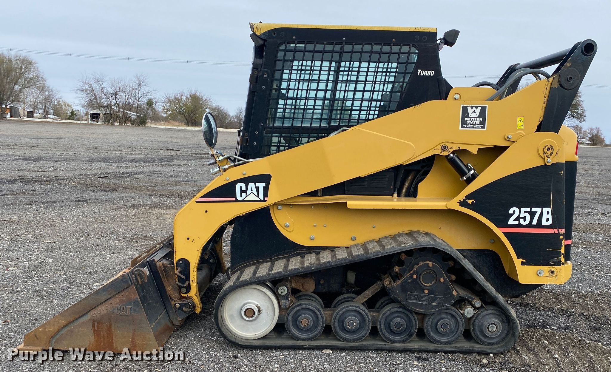 Purple Wave is selling a used Tracked Skid Steer Loader in Oklahoma. This item is a 2007 Caterpillar 257B tracked skid steer loader with the following: Hours: 2,132 on meter, Serial: CAT0257BJSLK06193
