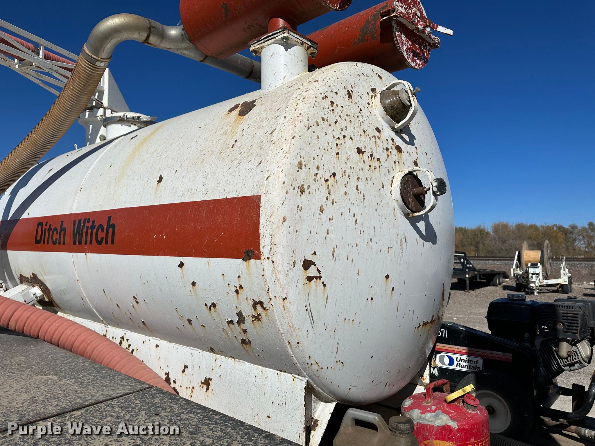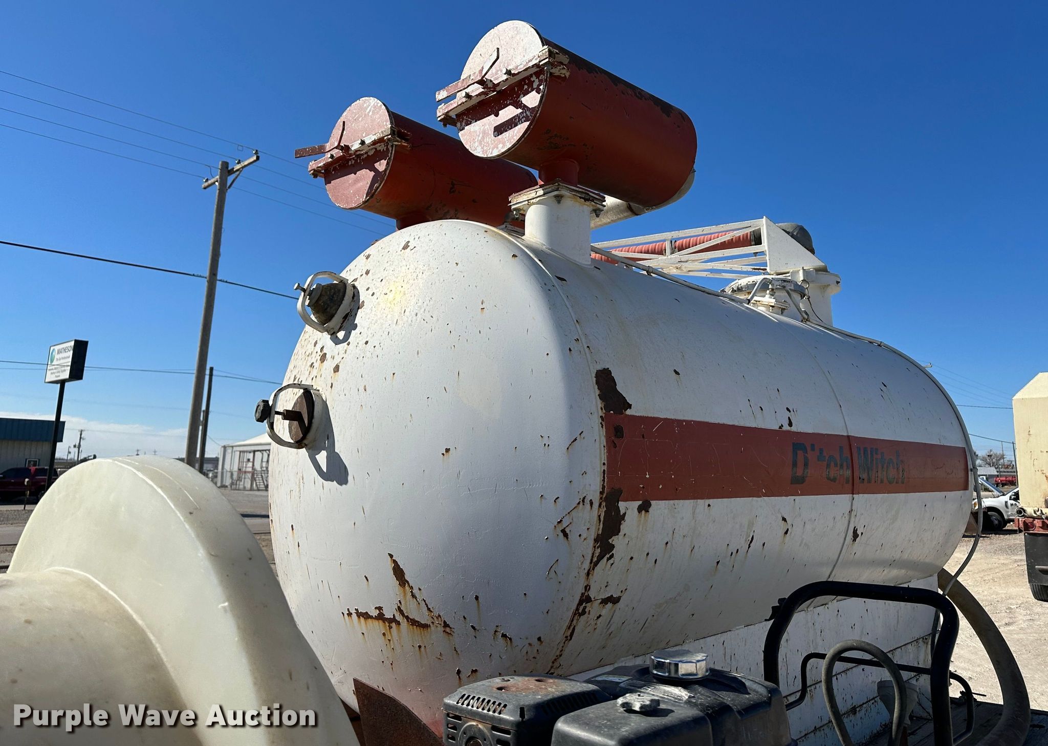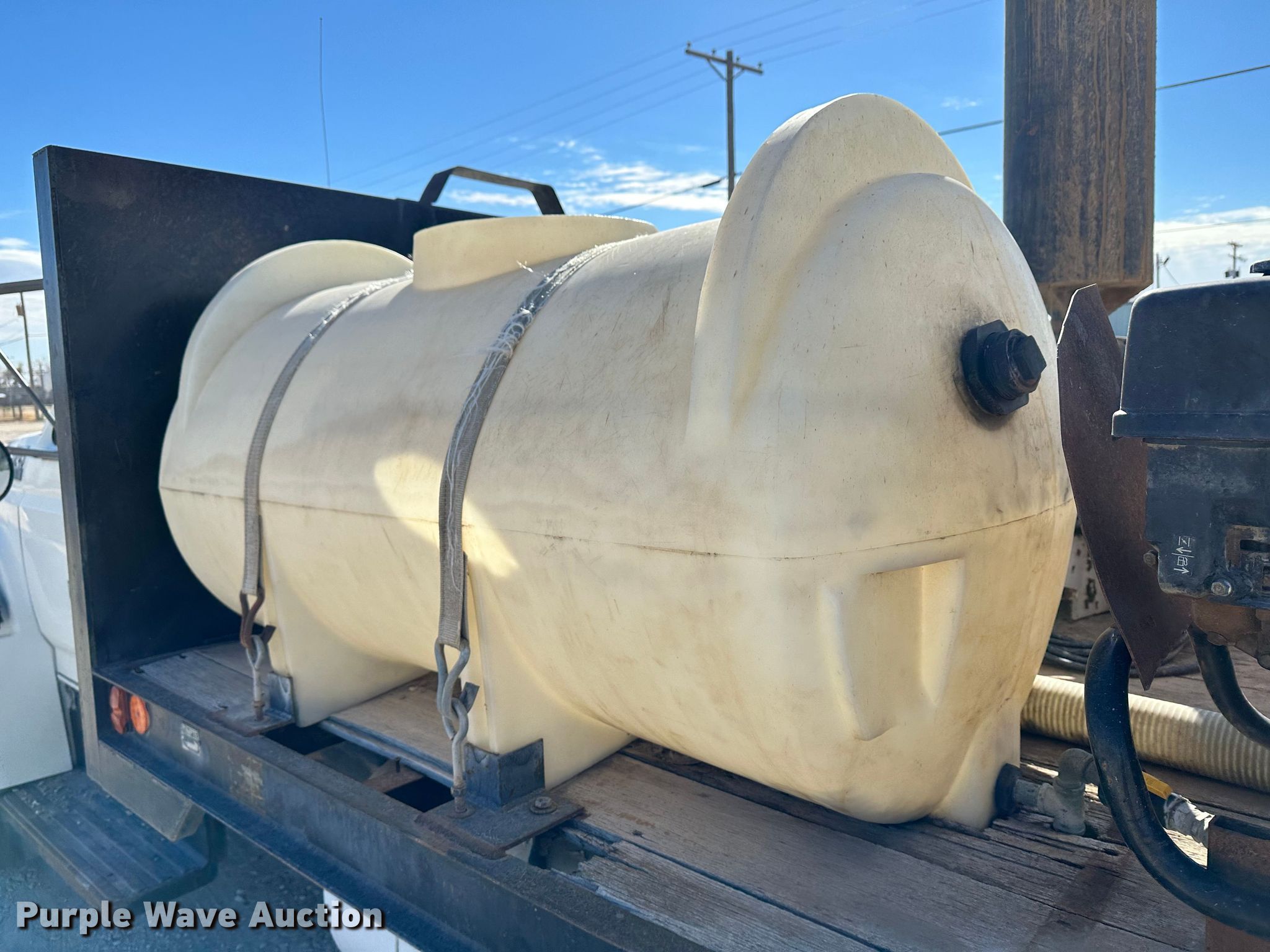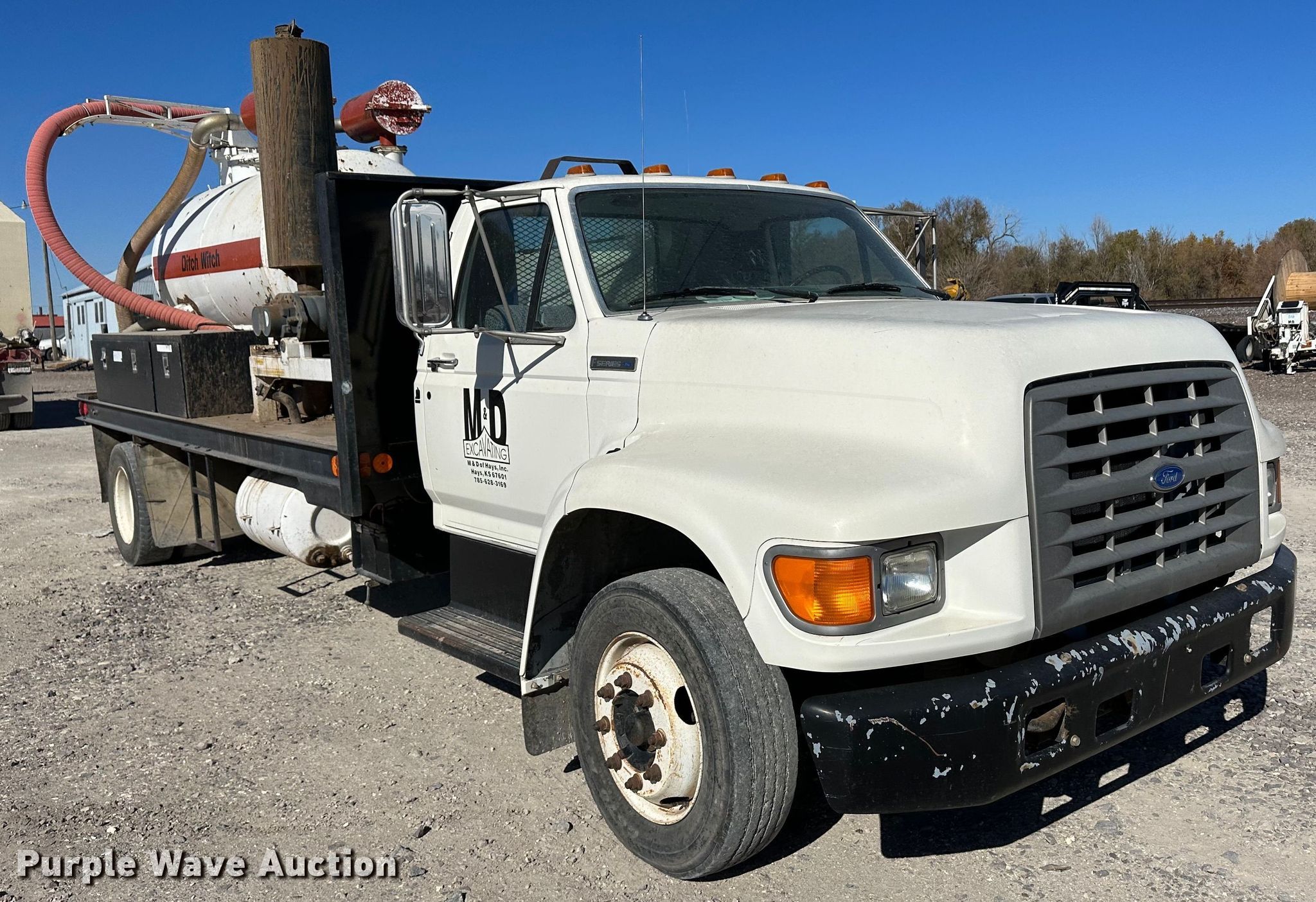 1996 Ford F700 vacuum truck. Miles: 29,416 on odometer, Hours: 3,235 on meter, VIN: 1FDNF728XTVA15026. Engine Displacement: 7.0L, Cylinders: 8, Fuel type: LPG. Transmission Automatic. Chassis Axles: Single, Suspension: Spring, Brakes: Hydraulic, PTO. Interior Heat, Brake controller. Features Tank bed Ditch Witch, Top hatches: 2, Rear manway, Rear outlet: 4", Engine Honda Predator, Displacement: 670cc, Cylinders: 2, Fuel type: Gas, Vacuum pump, Hose reel Diameter: 4". Tires Size: 245/70R19.5. Kansas title. Title distribution may be delayed up to 14 days from verification of funds. M & D of Hays Inc.. Hays, KS 67601