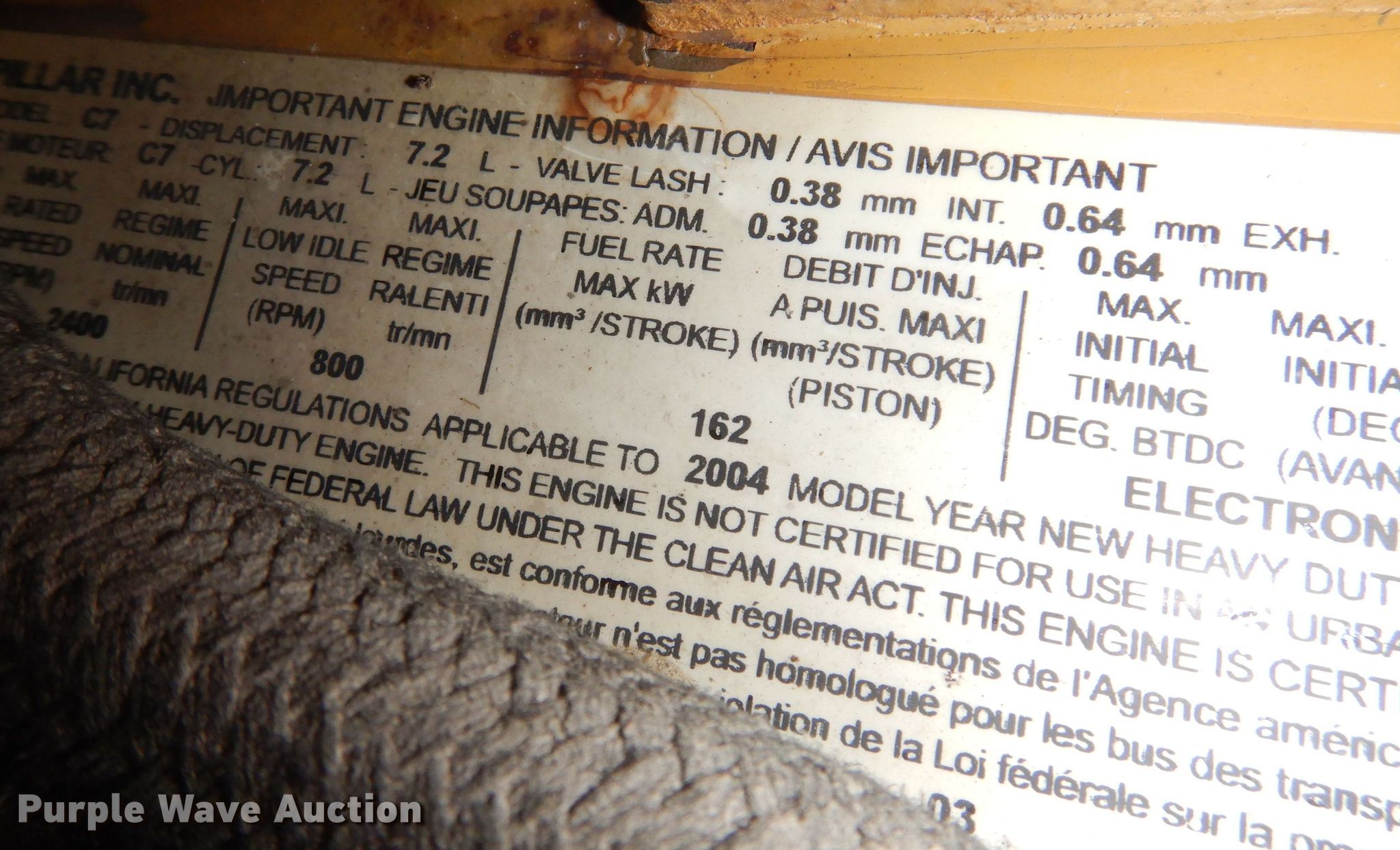2004 Freightliner Business Class M2 flatbed truck. Miles: 232,530 on odometer, VIN: 1FVACVDD04HN44533. Engine Caterpillar C7 Acert, Serial: KAL37129, Displacement: 7.2L, Cylinders: 6, Fuel type: Diesel, HP: 207. Transmission Automatic. Chassis Axles: Single, Suspension: Spring, Brakes: Hydraulic, GVWR: 18,000 lbs. Interior AC, Heat, Cruise control, Brake controller. Features Flatbed Bradford Built, 12' L x 96" W. Tires Size: 225/70R19.5. Notes Batteries not included, Engine issues, knocks Smokes, Oil leak. Iowa title. Title distribution may be delayed up to 14 days from verification of funds. Denco Highway Construction. 416 East Main Street. Mingo, IA 50168