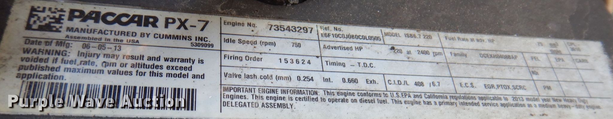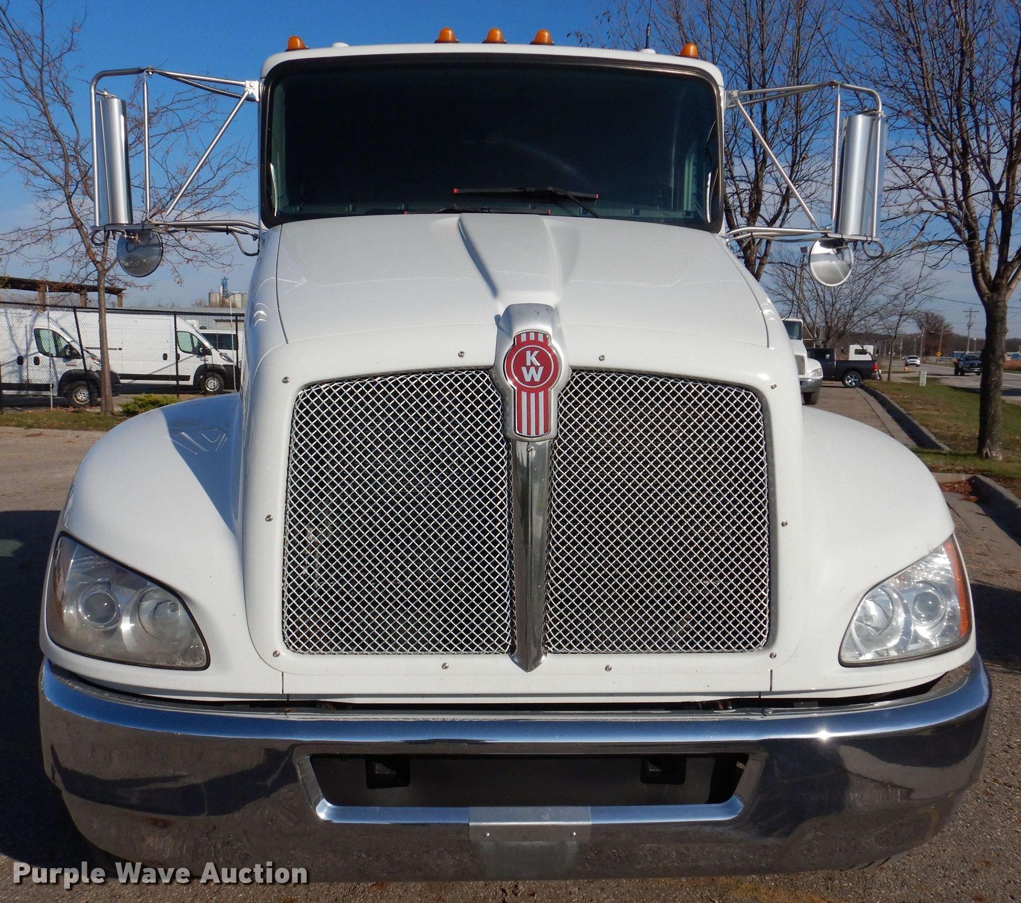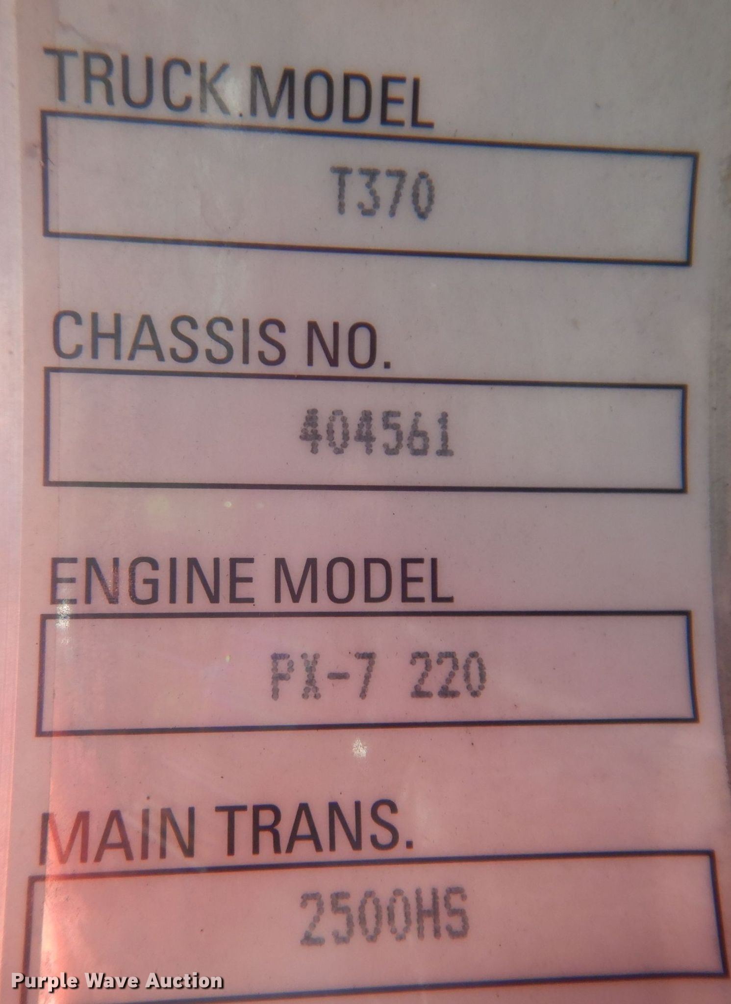 2014 Kenworth T370 truck cab and chassis. Miles: 352,572 on odometer, Hours: 11,527 on meter, VIN: 2NKHHM7X0EM404561. Engine Paccar PX-7, Serial: 73543297, Displacement: 6.7L, Cylinders: 6, Fuel type: Diesel, HP: 220, Engine brake. Transmission Allison, Automatic. Chassis Axles: Single, Gear ratio: 4.88, Suspension: Spring, Brakes: Air, Truck chassis: 25' 5", GVWR: 33,000 lbs FAWR: 12,000 lbs, RAWR: 21,000 lbs. Interior AC, Heat, Power windows, Power locks, Cruise control. Features Fuel tank: Single. Tires Size: 275/80R22.5. Notes DEF sensor will be replaced prior to auction, Dash warning indicator: Check engine, ABS. Iowa title. Seller is an Iowa licensed motor vehicle dealer. The buyer may be required to pay sales tax and/or registration fees to the dealer prior to taking possession. Buyers may be required to provide identification to the licensed dealer to comply with Iowa state laws. Title will be assigned and distributed by the dealer. Please contact the seller for distribution questions. 4100 Vandalia Road. Des Moines, IA 50302