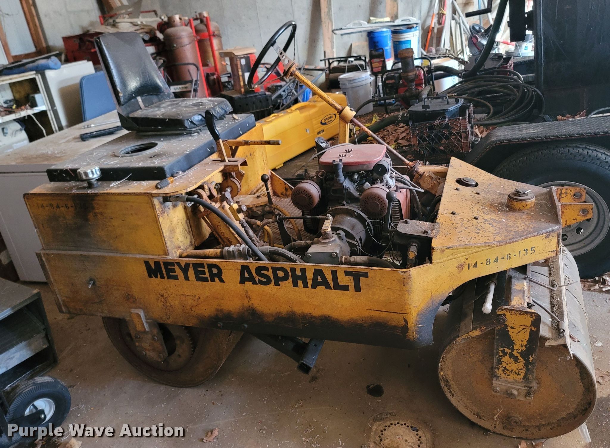 Mauldin double drum roller. Serial: 14-84-6-135. Engine Model: Series II, Serial: 14037884, Cylinders: 2, Fuel type: Gas. Transmission Hydrostatic. Features Drum: Smooth, Front drum Width: 28", Diameter: 20", Rear drum Width: 34", Diameter: 24", Drum scrapers: Front, Rear. Notes Dead battery. Meyer Enterprise. 12344 CR 8040. Rolla, MO 65401