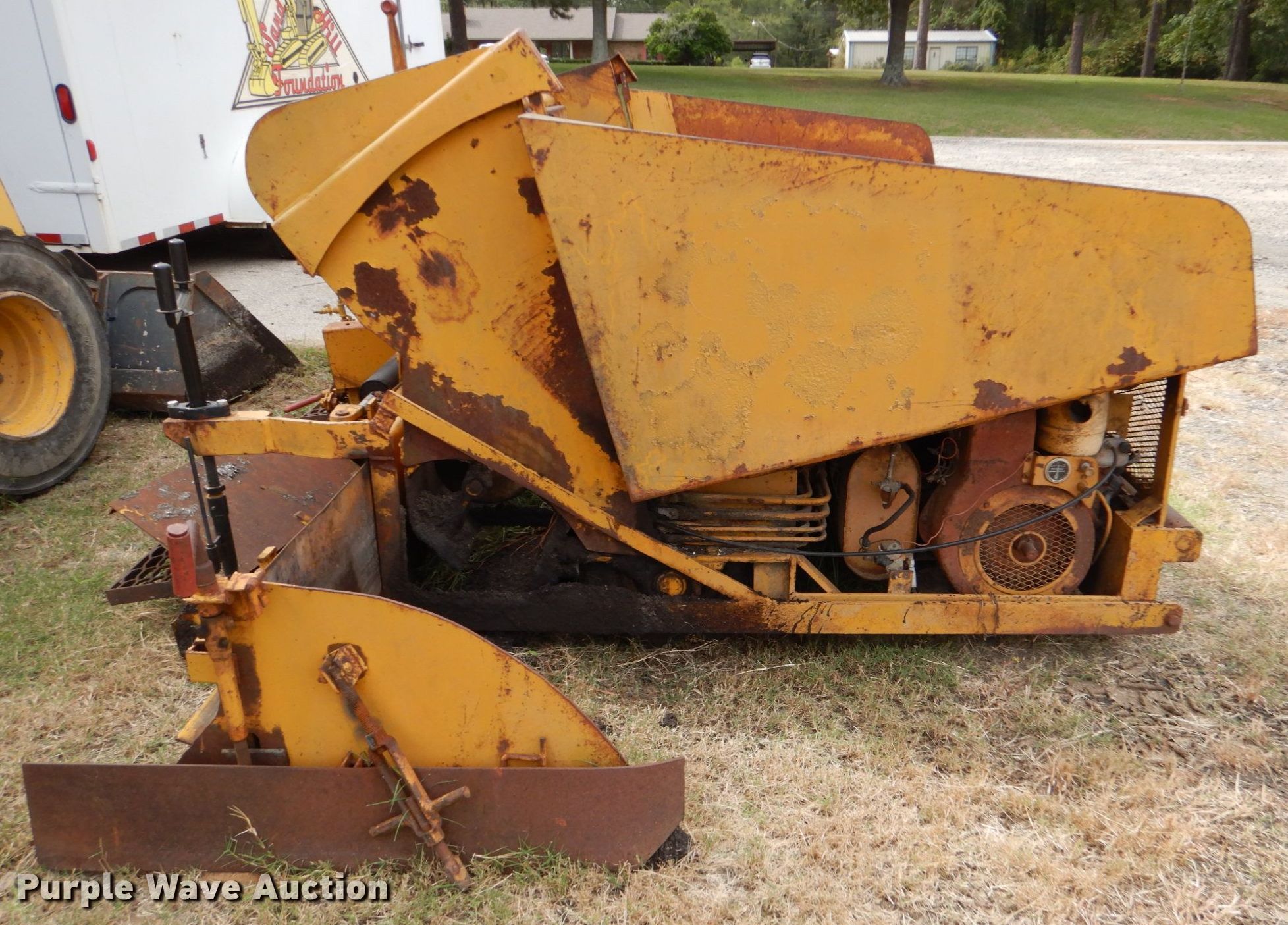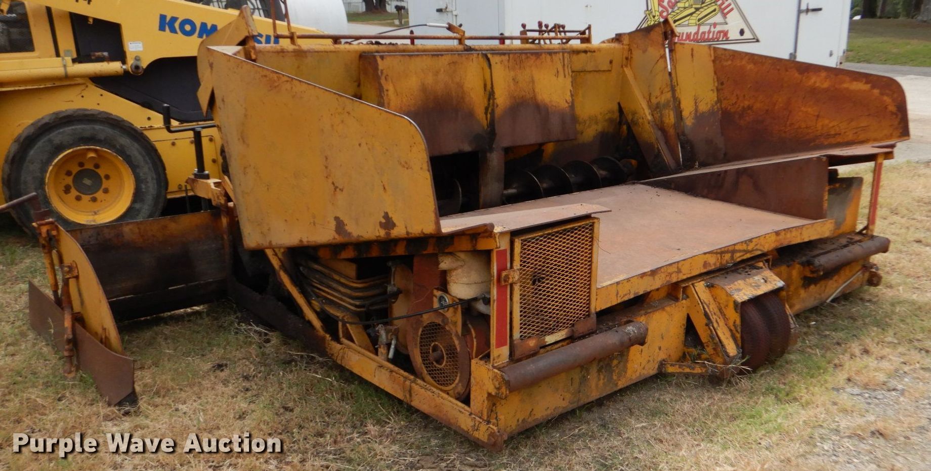 LeeBoy paver. Serial: 500304. Engine Cylinders: 2, Fuel type: Gas. Transmission Hydrostatic. Features Screed, Paving width: 8' to 12', Extensions Quantity: 2, Front spread hopper width: 9'. Tires Front: 16", Rear: 14". Notes Possible engine issues, turns over but will not start, Possible fuel issues, Non-operational unit. Sand Hill Foundation LLC. 2300 State Highway 87 North. Center, TX 75935