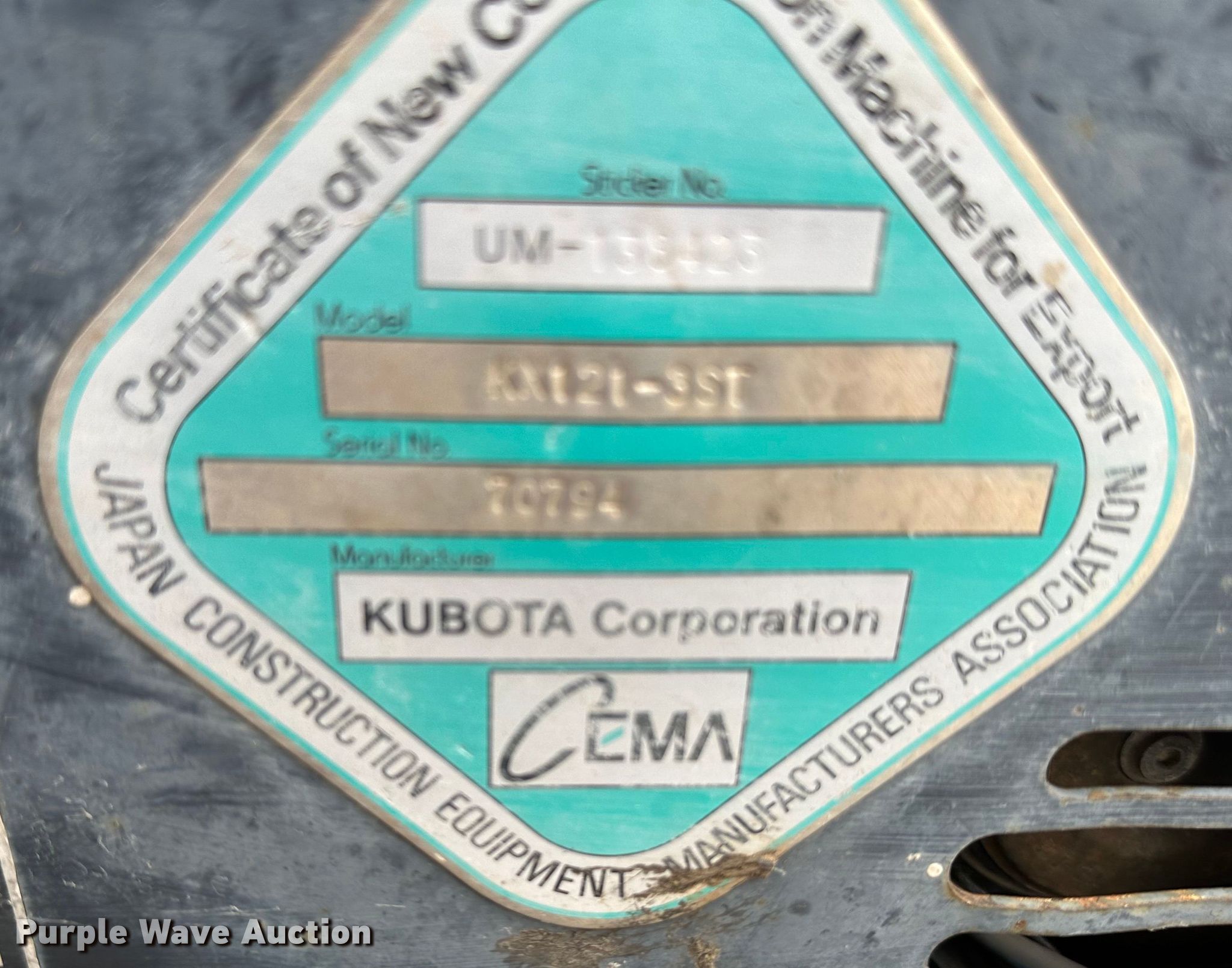 Purple Wave is selling a used Mini Excavator in Kansas. This item is a 2008 Kubota KX121-3 mini excavator with the following: Hours: 1,278 on meter, Serial: 70794, Unit #: 4032