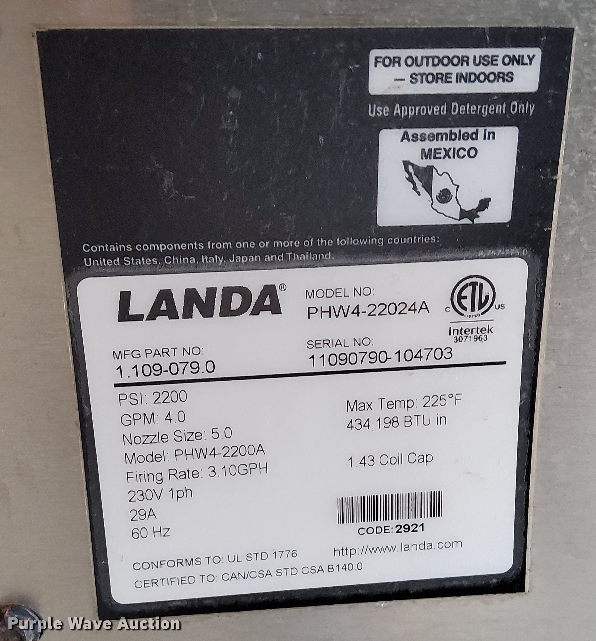 Purple Wave is selling a used Pressure Washer in Kansas. This item is a Landa PHW4-22024A pressure washer with the following: Hours: 37 on meter, Serial: 11090790-104703