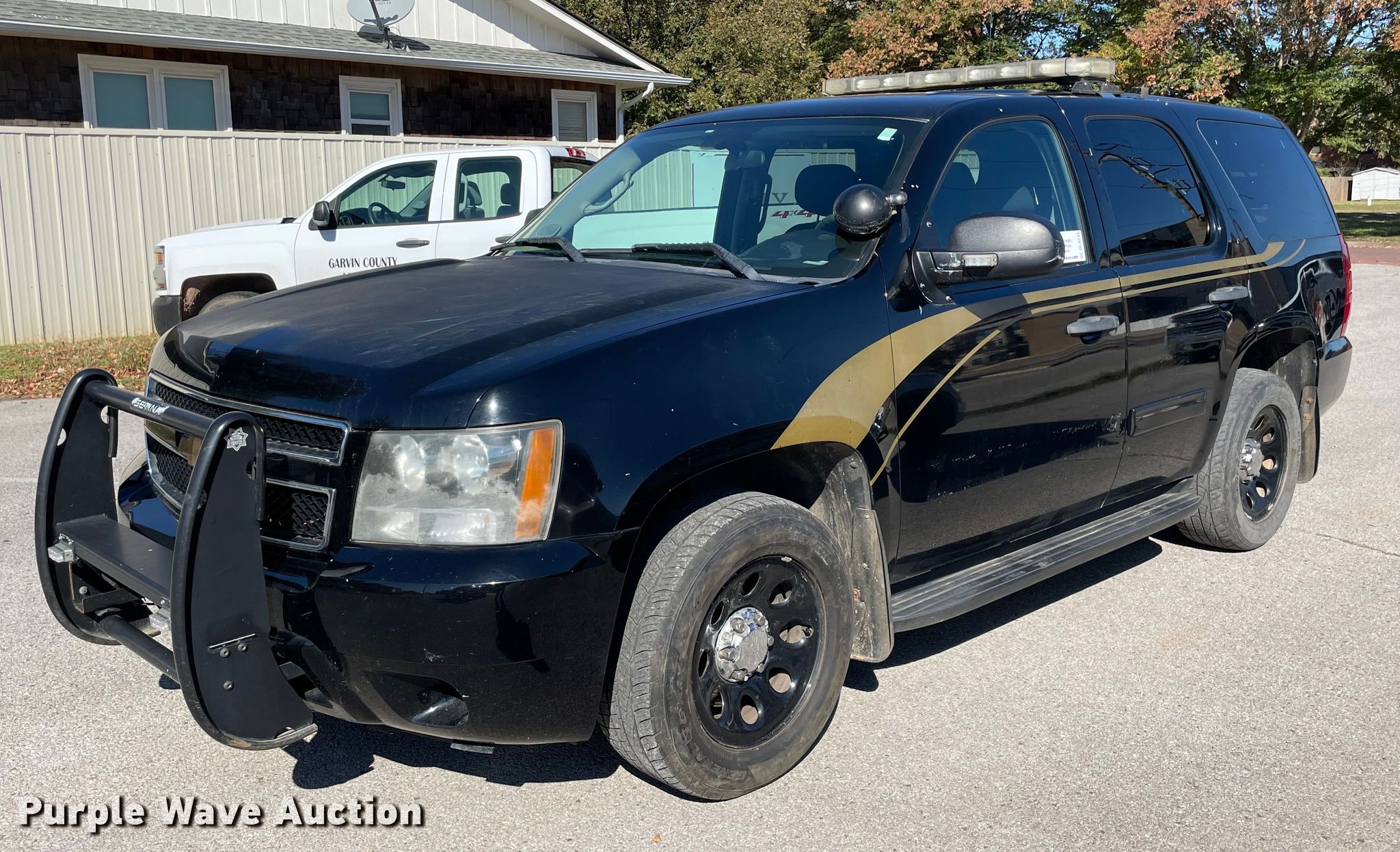 2011 Chevrolet Tahoe Police SUV. Miles: 225,134 on odometer, VIN: 1GNLC2E02BR283144. Engine Displacement: 5.3L V8 OHV, Cylinders: 8, Fuel type: Gas. Transmission Automatic. Interior Heat, Seat: Power driver, Power passenger, Power windows, Power locks, Cruise control. Tires Size: 265/60R17. Notes Dash warning indicator: Check engine, Traction control. Title distribution may be delayed up to 14 days from verification of funds. Garvin County Sheriff's Office. 201 W Grant Ave. Pauls Valley, OK 73075