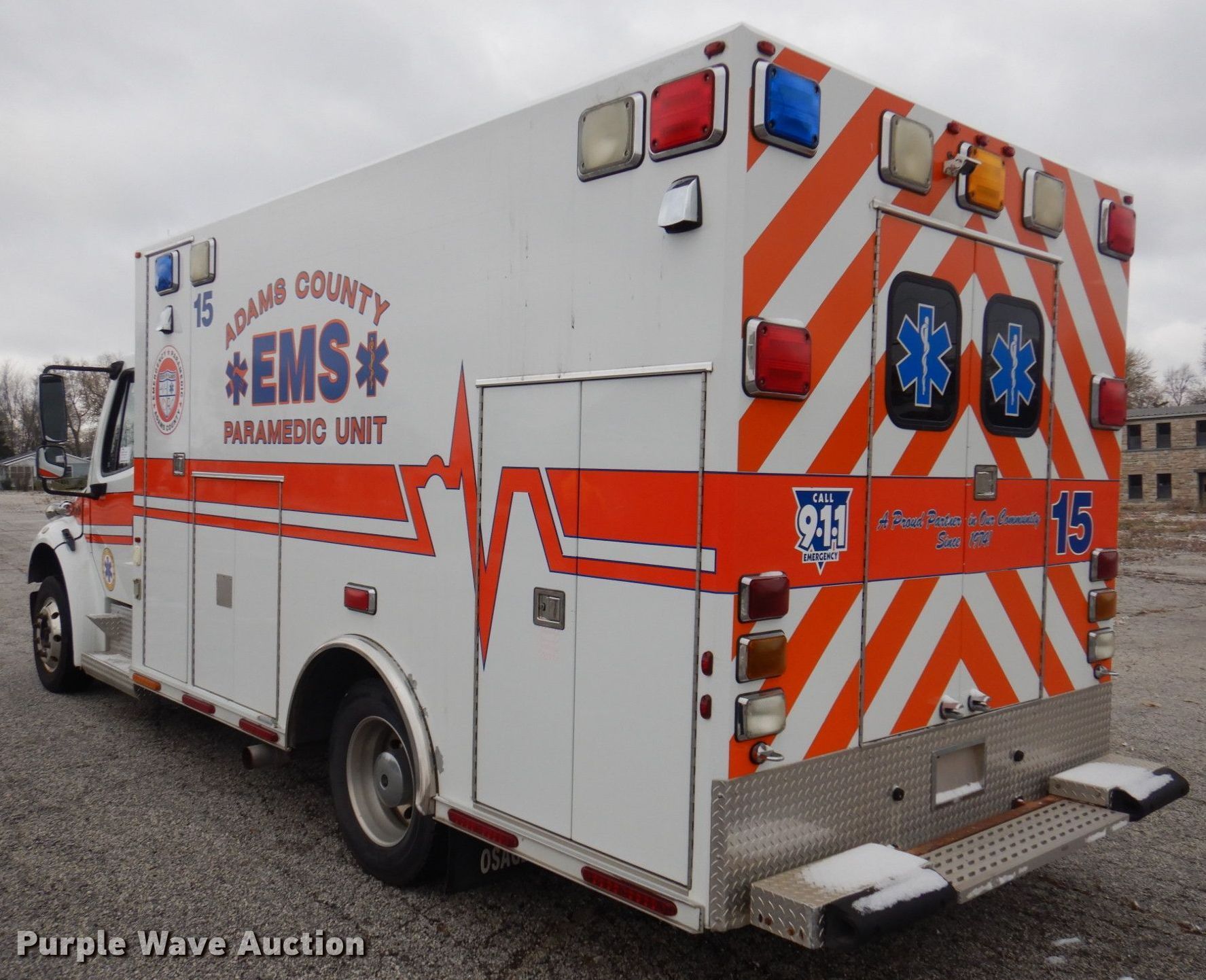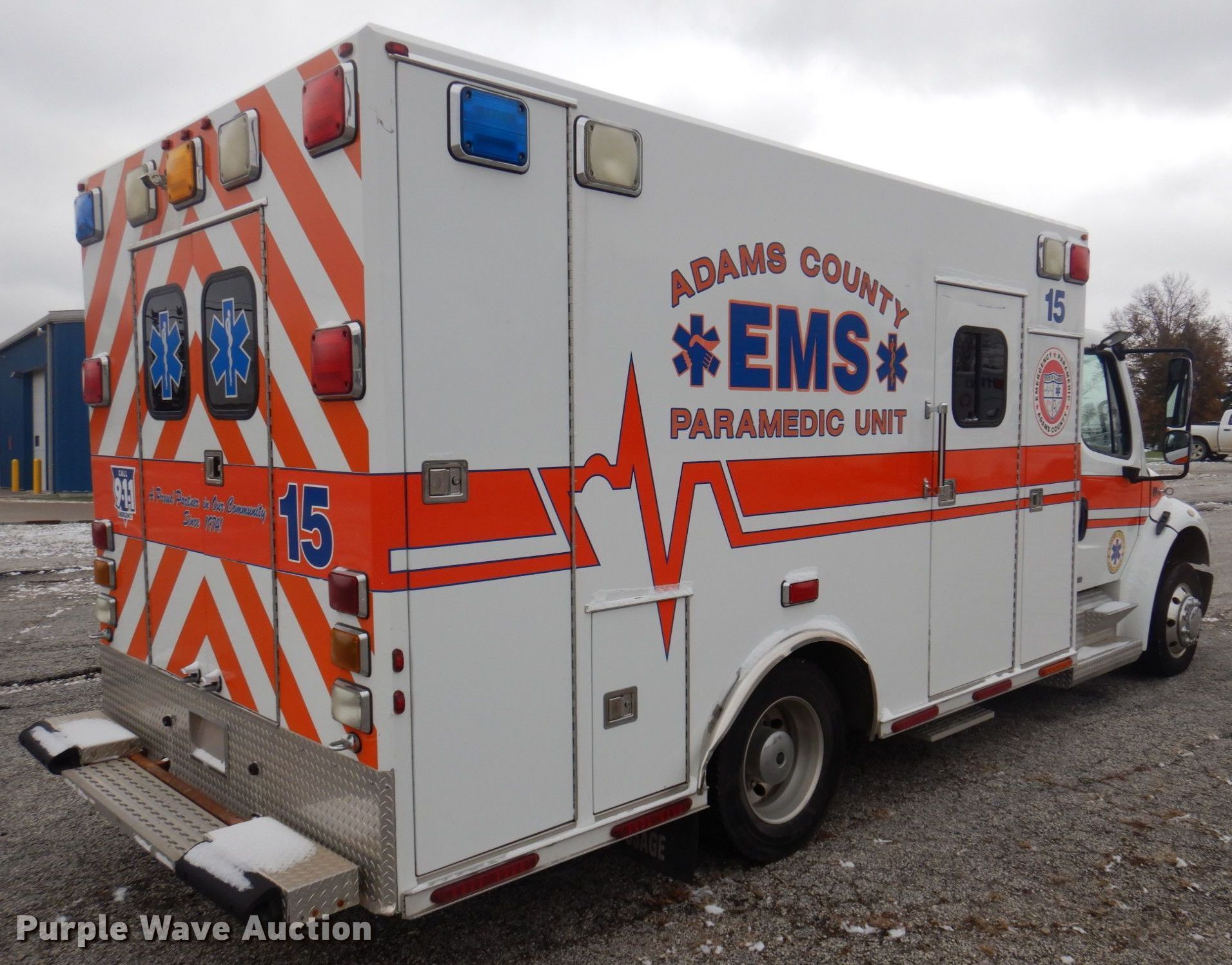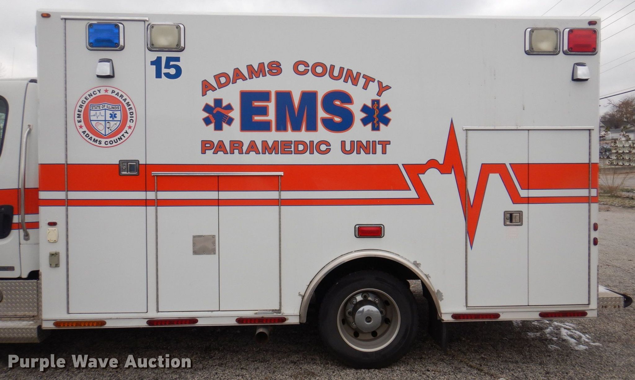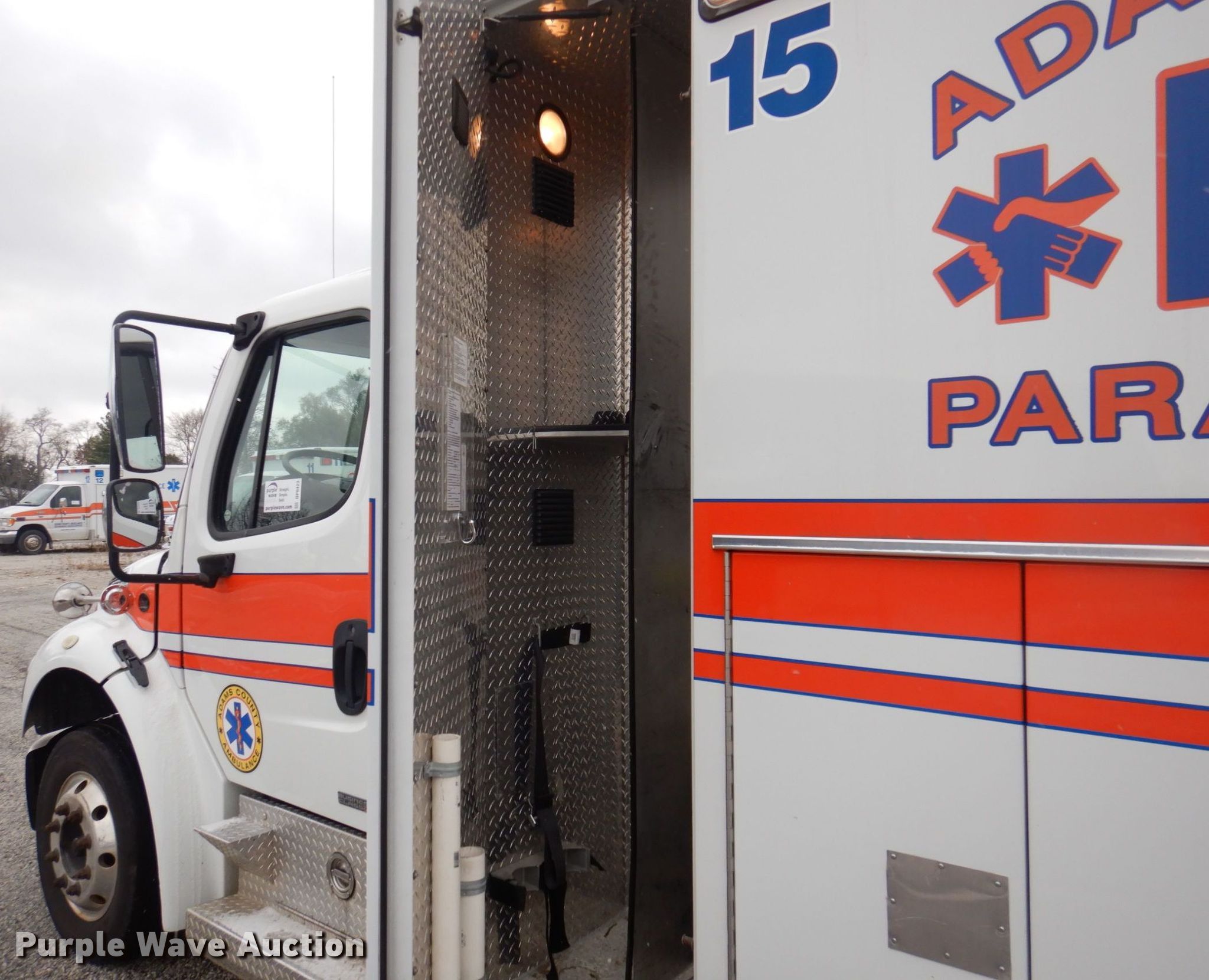 Purple Wave is selling a used Fire Truck or Emergency Vehicle in Illinois. This item is a 2010 Freightliner Business Class M2 ambulance with the following: Miles: 196,829 on odometer, Hours: 2,121 on meter, VIN: 1FVACWDU0ADAP4502, Unit #: 15