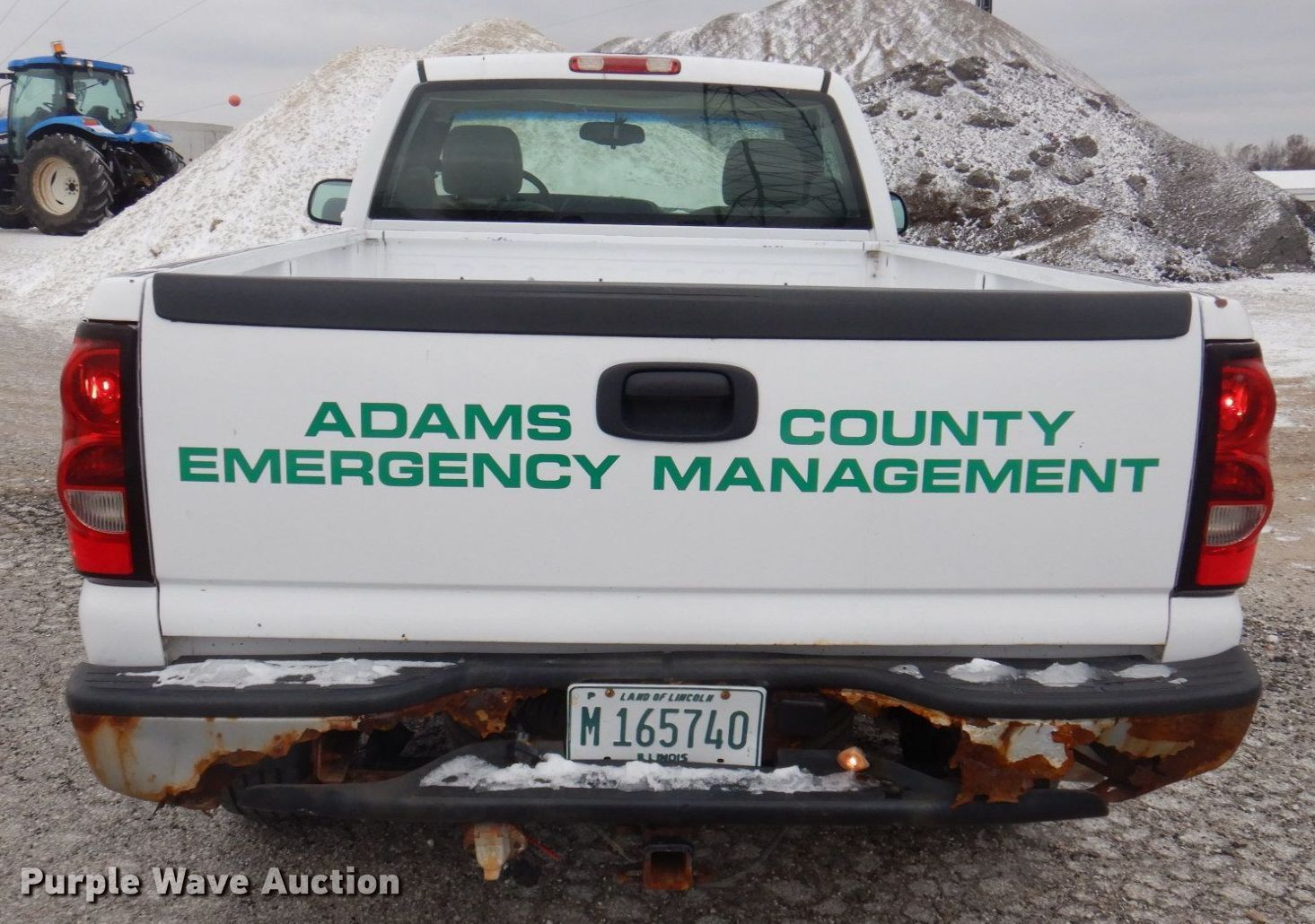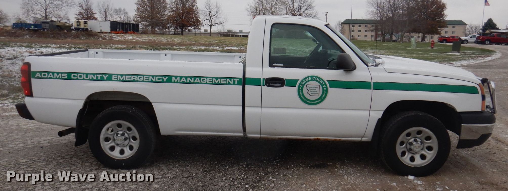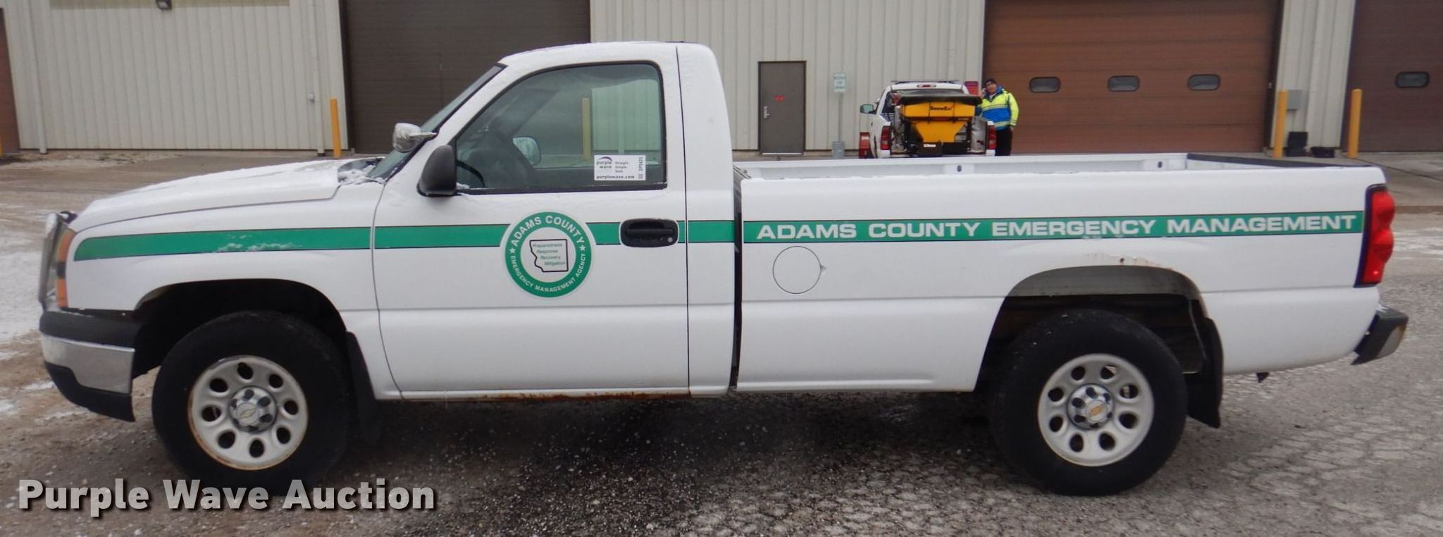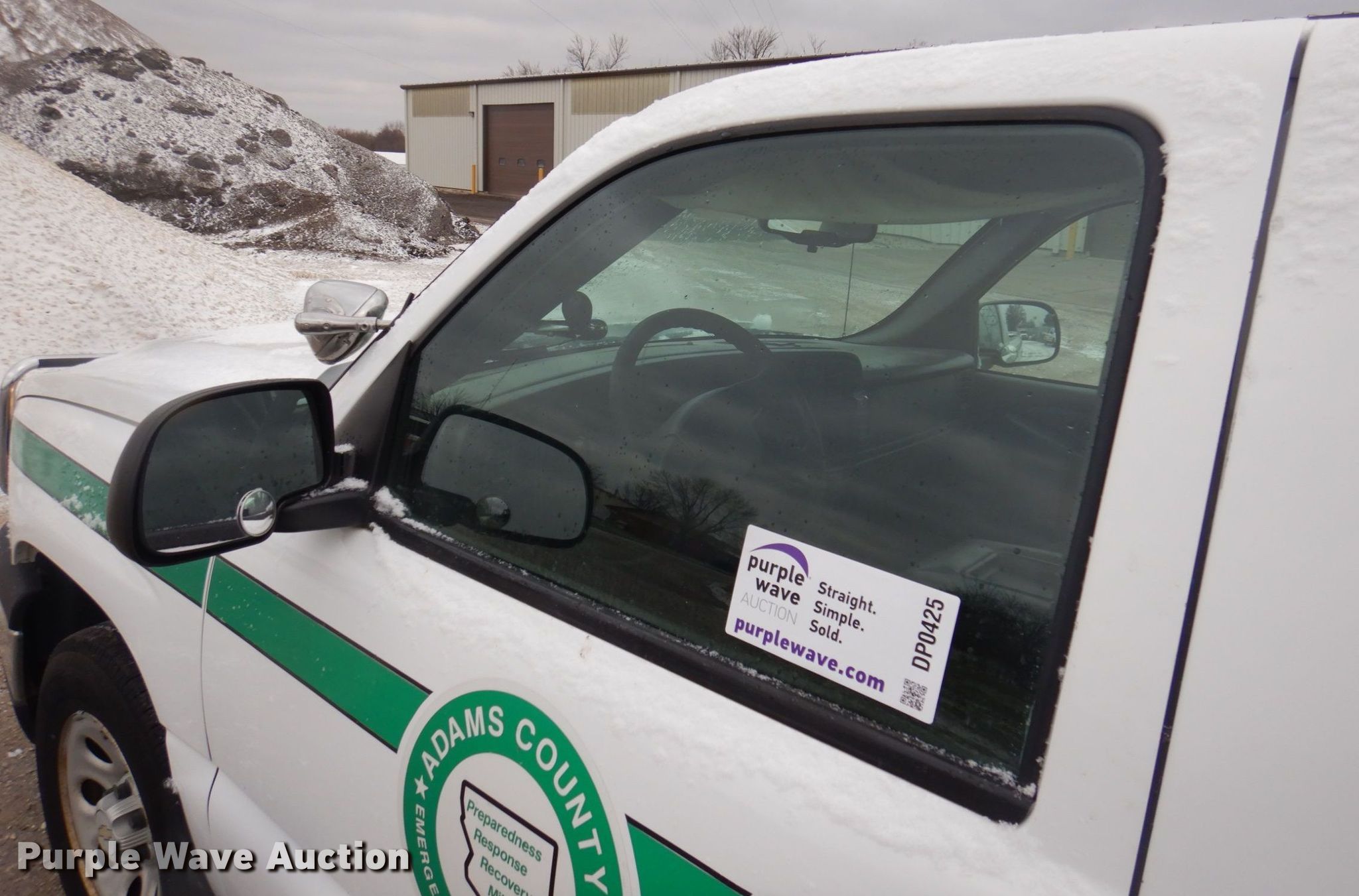2006 Chevrolet Silverado 1500 pickup truck. Miles: 163,417 on odometer, VIN: 3GCEK14X06G147050. Engine Displacement: 4.3L V6 OHV, Cylinders: 6, Fuel type: Gas. Transmission Automatic, Four wheel drive. Interior AC, Heat, Cruise control. Tires Size: 245/70R17. Notes Dash warning indicator: Check engine, Brake, Battery, Windshield chipped or cracked. Illinois title. Adams County Ambulance & EMS. 222 North 52nd Street. Quincy, IL 62305