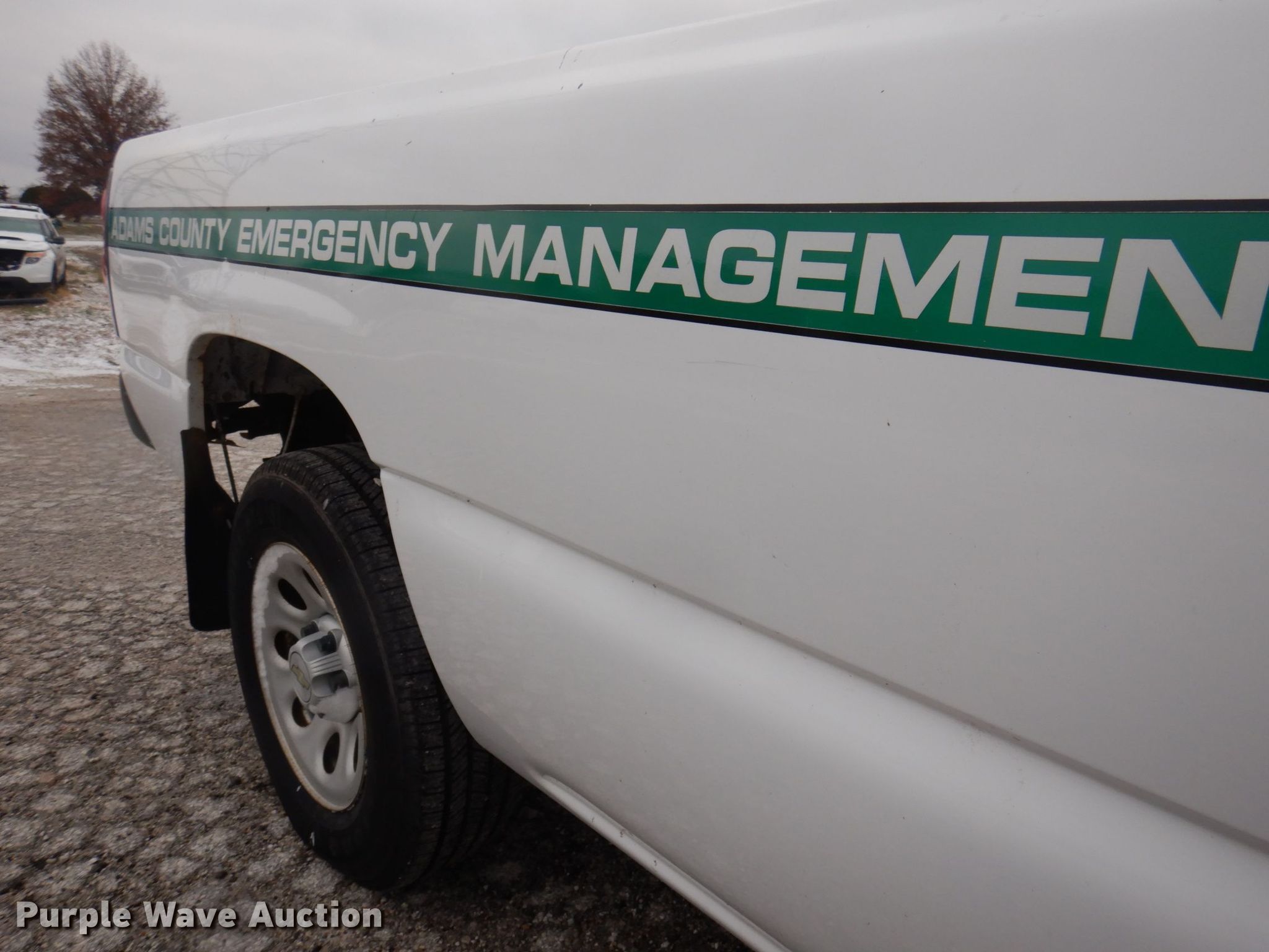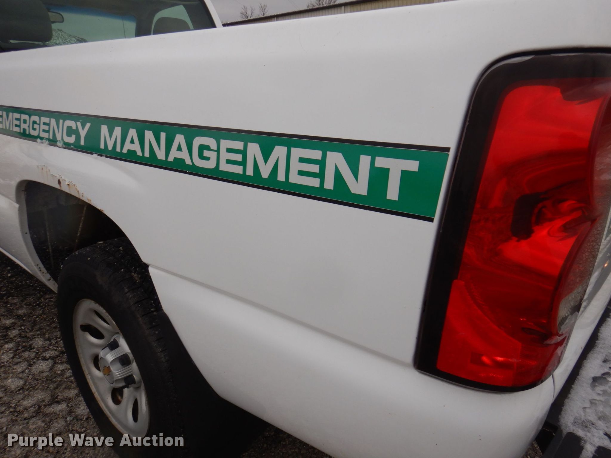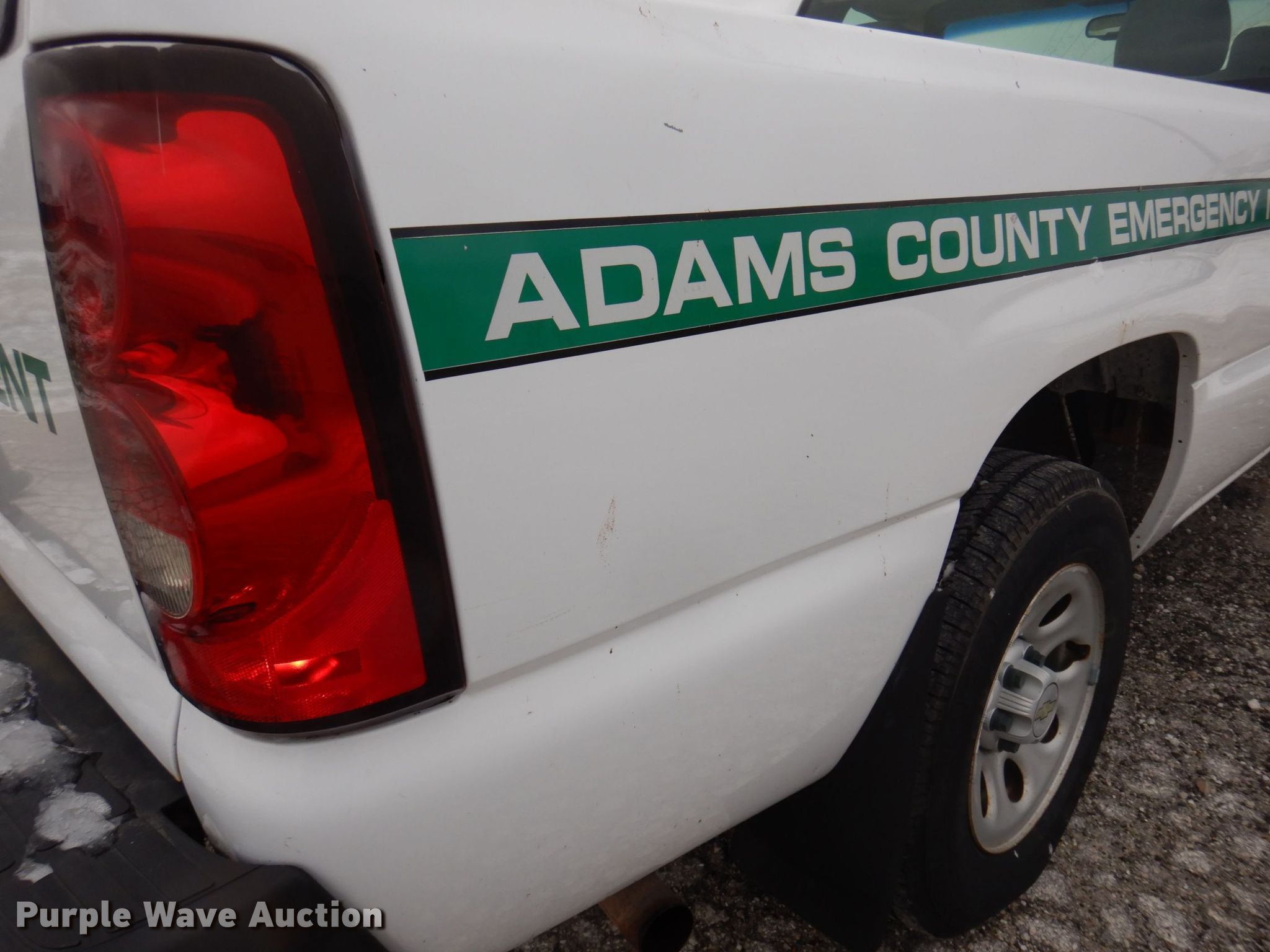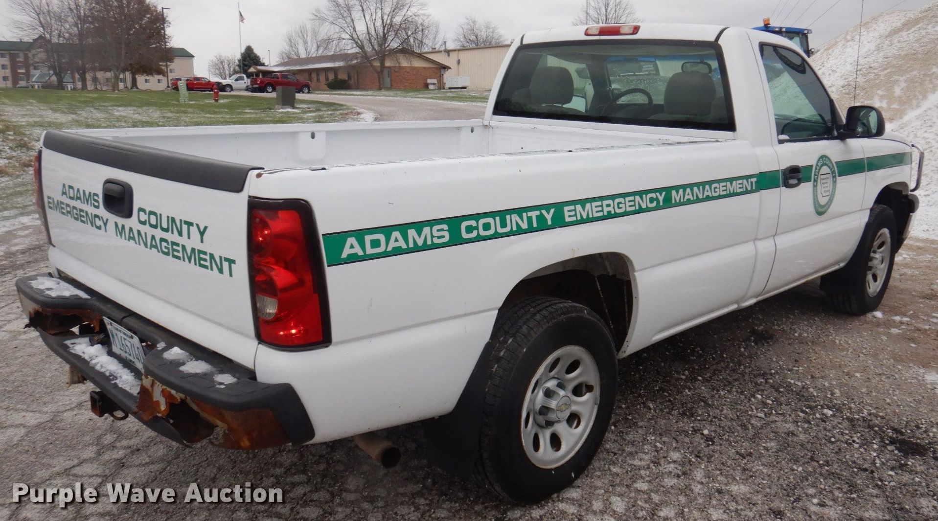 2006 Chevrolet Silverado 1500 pickup truck. Miles: 163,417 on odometer, VIN: 3GCEK14X06G147050. Engine Displacement: 4.3L V6 OHV, Cylinders: 6, Fuel type: Gas. Transmission Automatic, Four wheel drive. Interior AC, Heat, Cruise control. Tires Size: 245/70R17. Notes Dash warning indicator: Check engine, Brake, Battery, Windshield chipped or cracked. Illinois title. Adams County Ambulance & EMS. 222 North 52nd Street. Quincy, IL 62305