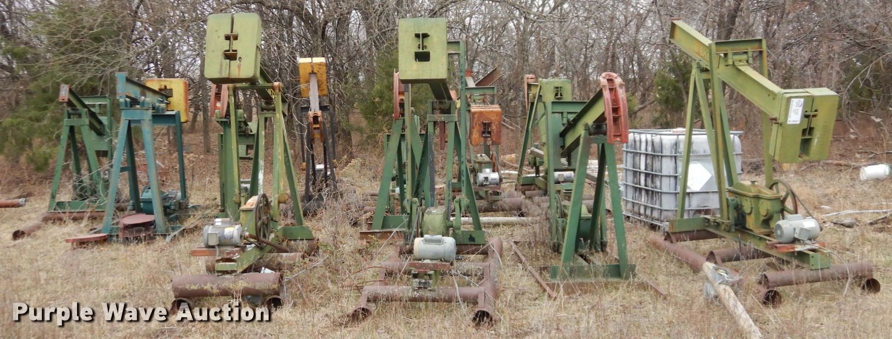 (13) pump jacks for sale in Moran, Kansas. Item DR8077 will sell on December 20th, 2022.