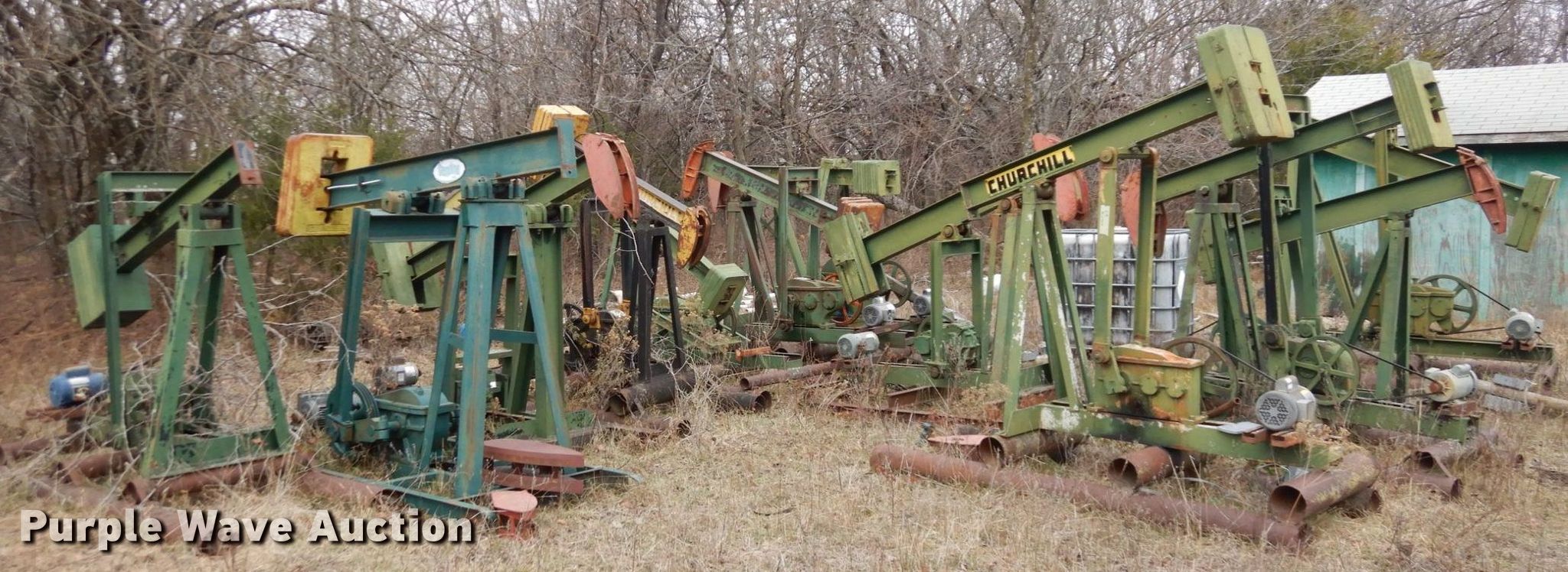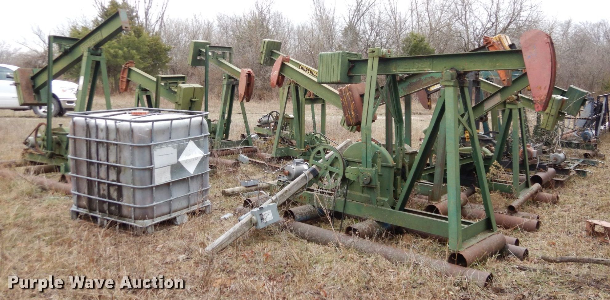 Purple Wave is selling a used Other Industrial or Business in Kansas. This item is a (13) pump jacks with the following: Genuine, (2) Churchill, (2) Cook, (5) Baker, Terrell, Jensen, Whitaker, No engine, IBC tote, Approx. 275 gallon capacity