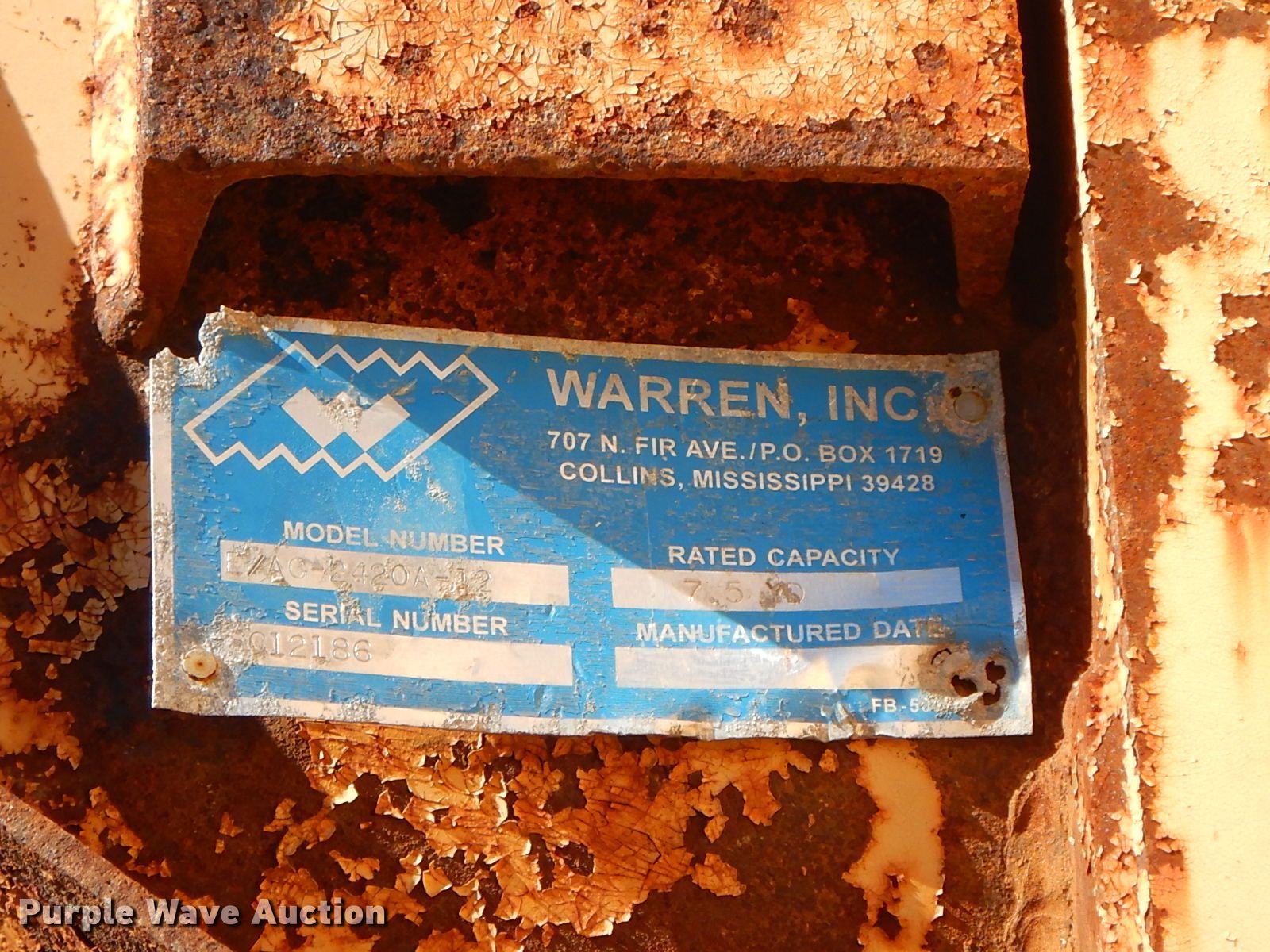 Purple Wave is selling a used Truck Part and Attach. in Oklahoma. This item is a Warren L2A spreader with the following: Dimensions: 13' L x 7' W, Capacity: 7.5 cu. yd., Conveyor: 24" W, Serial: C12186
