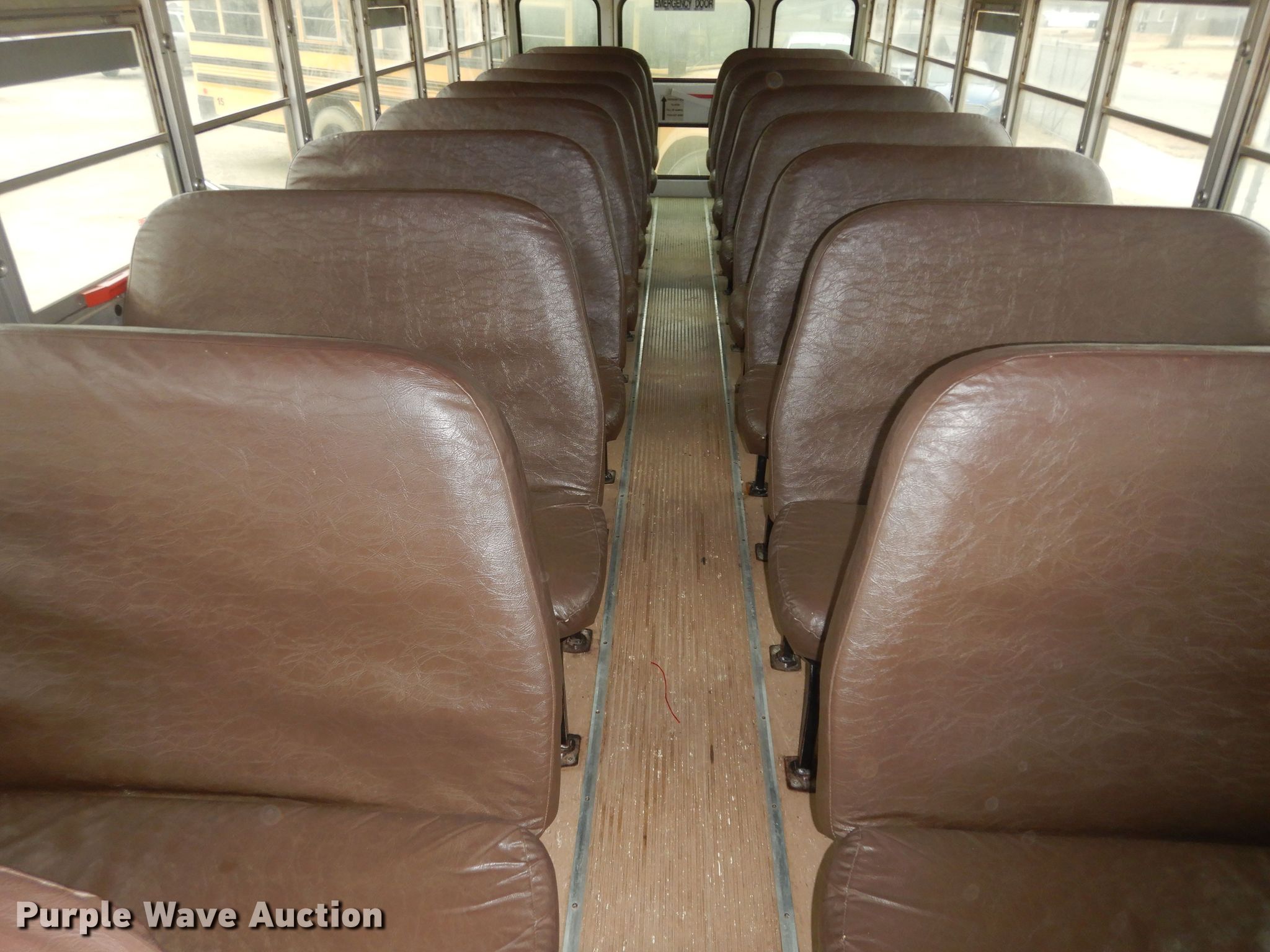 2001 International 3800 school bus. Miles: 265,655 on odometer, Hours: 11,455 on meter, VIN: 1HVBBABM81H340728, Unit #: 14. Engine International T444E, Displacement: 7.3L, Cylinders: 8, Fuel type: Diesel. Transmission Automatic. Chassis Axles: Single, Suspension: Spring, Brakes: Hydraulic, GVWR: 25,500 lbs, Wheelbase: 218". Interior Heat, Heated mirrors, Passengers: 48. Tires Size: 11R22.5, Brand: Roadmaster and Kelly. Notes Hole in fuel tank. Kansas title. North Ottawa County Schools. Minneapolis, KS 67467