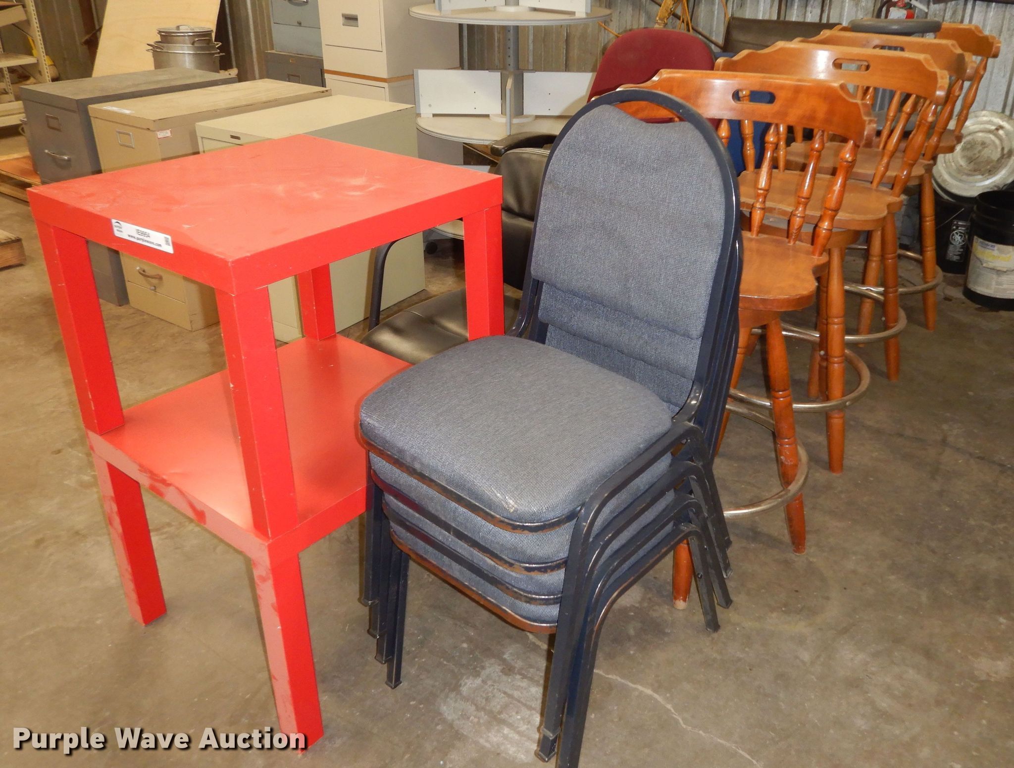 Purple Wave is selling a used Furniture in Kansas. This item is a Furniture with the following: (12) chairs, (2) side tables, Stool