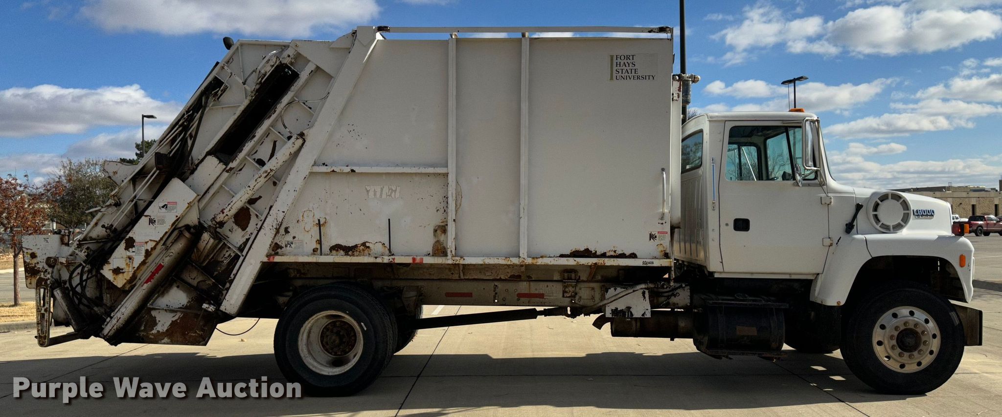 1993 Ford L8000 refuse truck. Miles: 223,379 on odometer, Hours: 1,054 on meter, VIN: 1FDXR82EXPVA31809. Engine Cummins, Displacement: 8.3L, Cylinders: 6, Fuel type: Diesel. Transmission Automatic. Chassis Axles: Single, Suspension: Spring, Brakes: Air, PTO. Interior AC, Heat, Backup camera. Features Refuse bed Pak-Mor, Load: Rear. Tires Size: 11R22.5. View repairs. Kansas title. Title distribution may be delayed up to 30 days from verification of funds. Fort Hays State University. 600 Park St. Hays, KS 67601