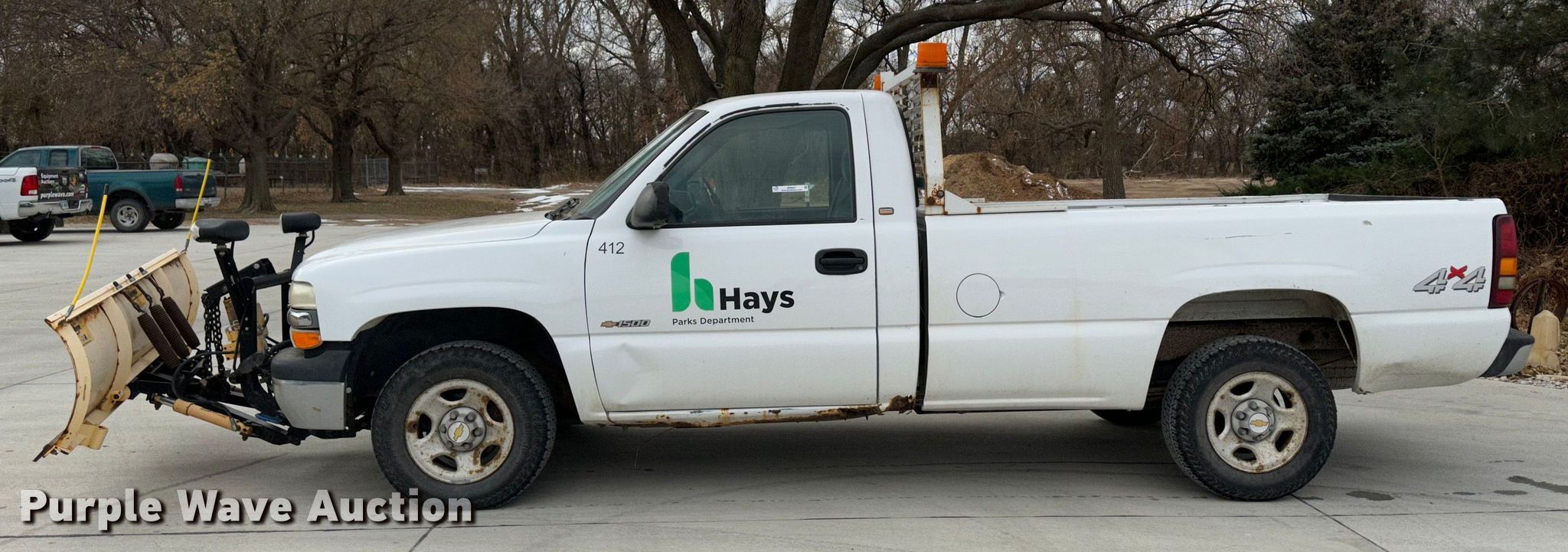 2001 Chevrolet Silverado 1500 pickup truck. Miles: Unknown, VIN: 1GCEK14T61Z257848. Engine Displacement: 5.3L V8 OHV, Cylinders: 8, Fuel type: Gas. Transmission Automatic, Four wheel drive. Interior AC, Heat, Cruise control. Features Snow plow Meyer, Width: 90". Tires Size: 225/75R16. Notes Non-operational odometer, Non-operational plow, Electrical issues. Kansas title. Title distribution may be delayed up to 14 days from verification of funds. City of Hays, KS. 1002 Vine St. Hays, KS 67601
