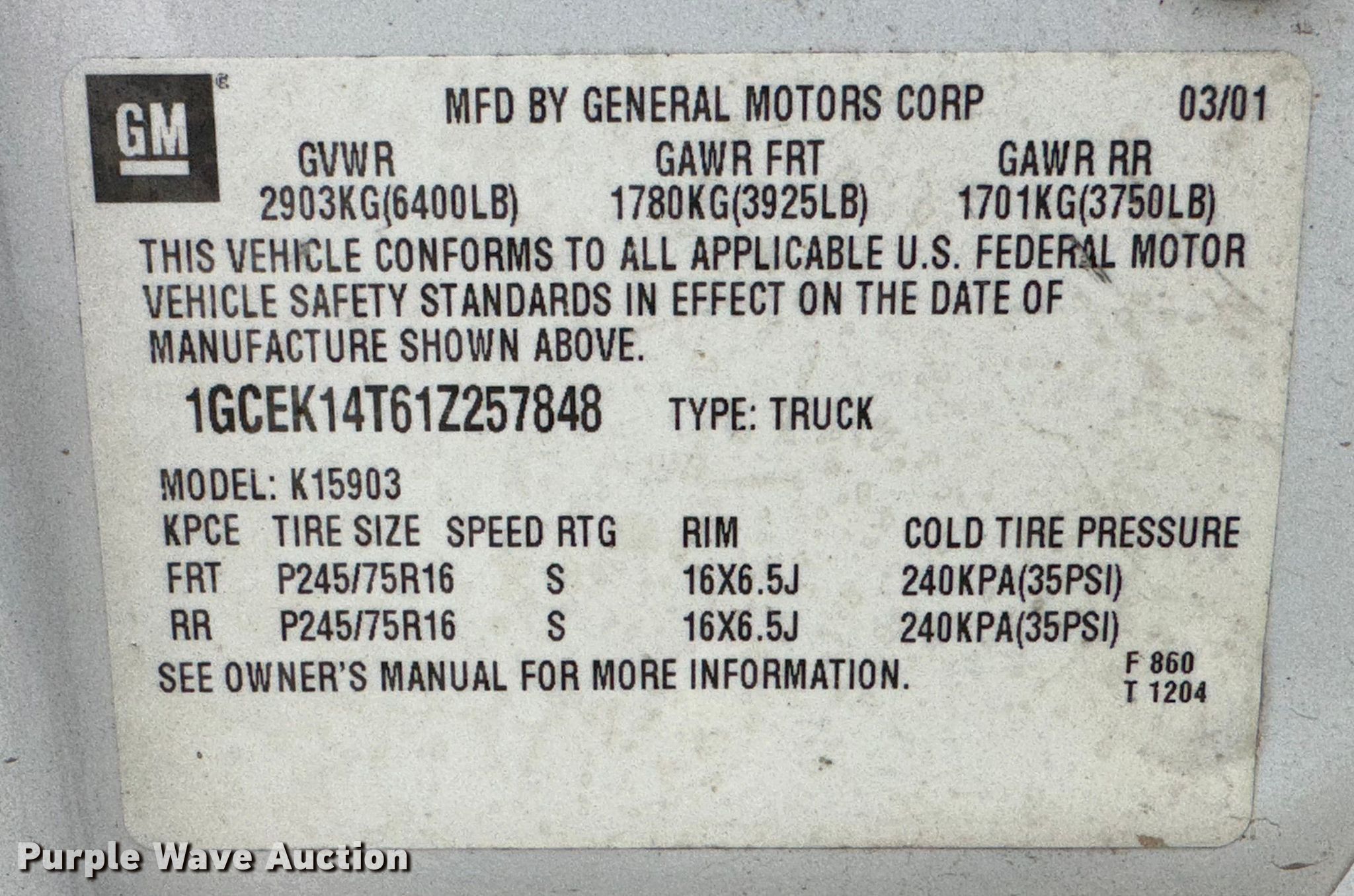 Purple Wave is selling a used 1/2 Ton Pickup or Van in Kansas. This item is a 2001 Chevrolet Silverado 1500 pickup truck with the following: Miles: Unknown, VIN: 1GCEK14T61Z257848
