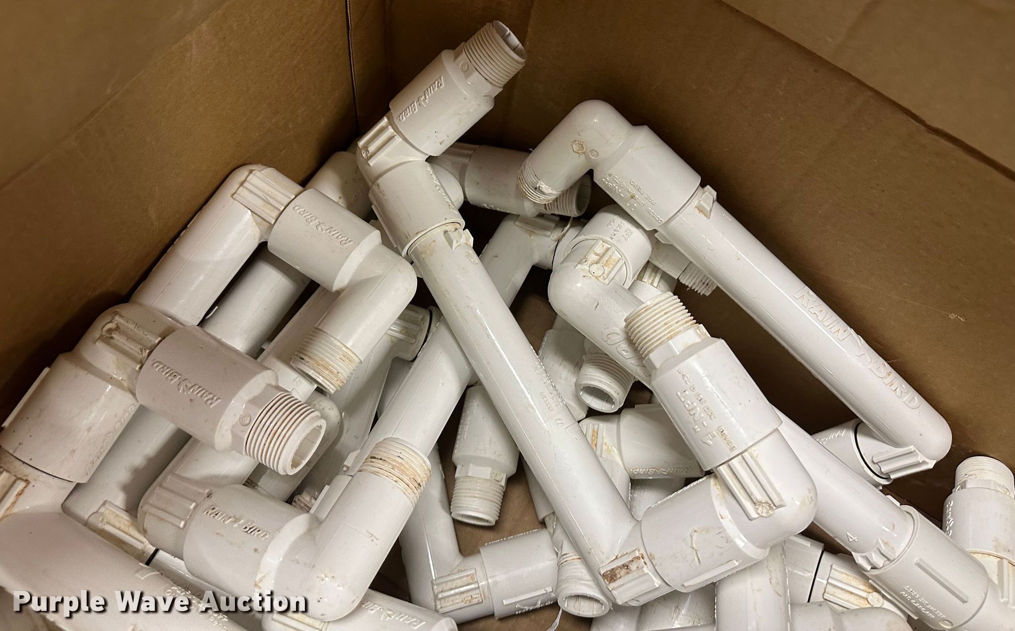 Purple Wave is selling a used Lawn and Garden in Kansas. This item is a Irrigation parts with the following: (25) Rainbird 1" swivel joints, (9) Rainbird 1" quick connect irrigation heads, (7) quick connect anchors