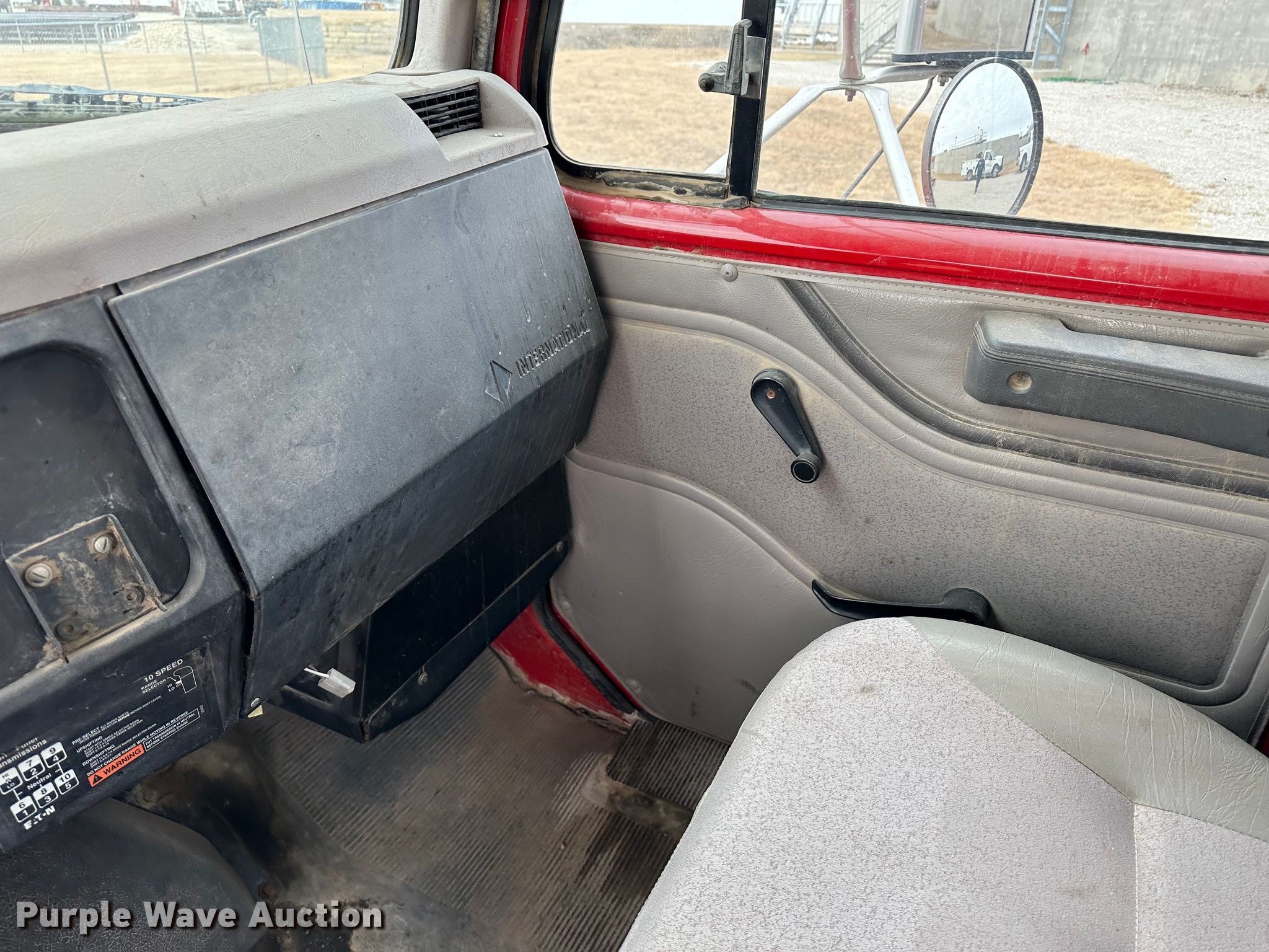 1998 International 2674 tank truck. Miles: 241,796 on odometer, Hours: 12,140 on meter, VIN: 1HTGLADT7WH503120. Engine International DT530, Displacement: 8.7L, Cylinders: 6, Fuel type: Diesel. Transmission Eaton Fuller, Manual, Speed: 10. Chassis Axles: Tandem, Differential lock: Inter-axle, Suspension: Spring over walking beam, Brakes: Air, PTO. Interior AC, Heat, Cruise control. Features Bed / tank Capacity: 2,750 gallons, 19' L x 90" W, Spray bar: Rear, Rear outlet: 6". Tires Size: 425/65R22.5. Notes Crankshaft sensor issues, may need replaced, Non-operational unit. Kansas title. Title distribution may be delayed up to 14 days from verification of funds. City of Hays, KS. 1002 Vine St. Hays, KS 67601